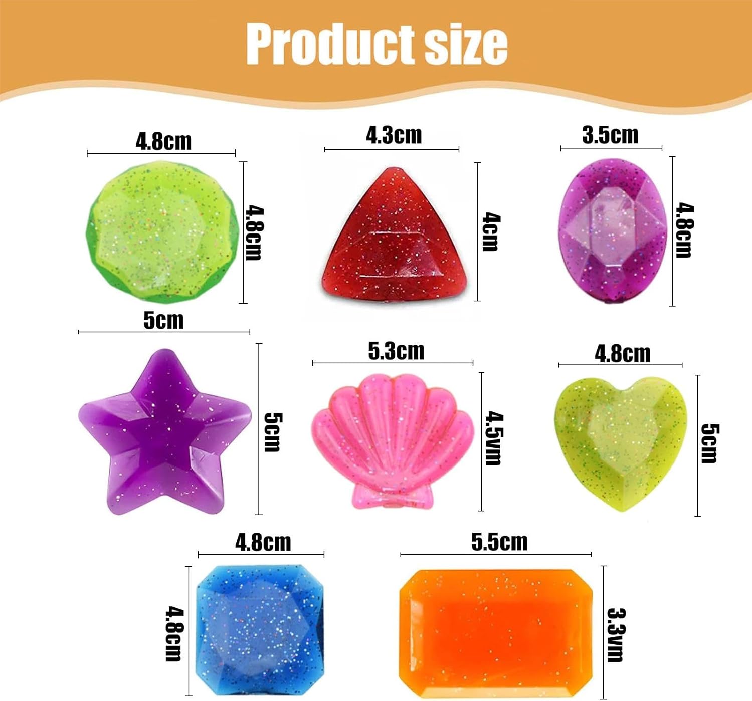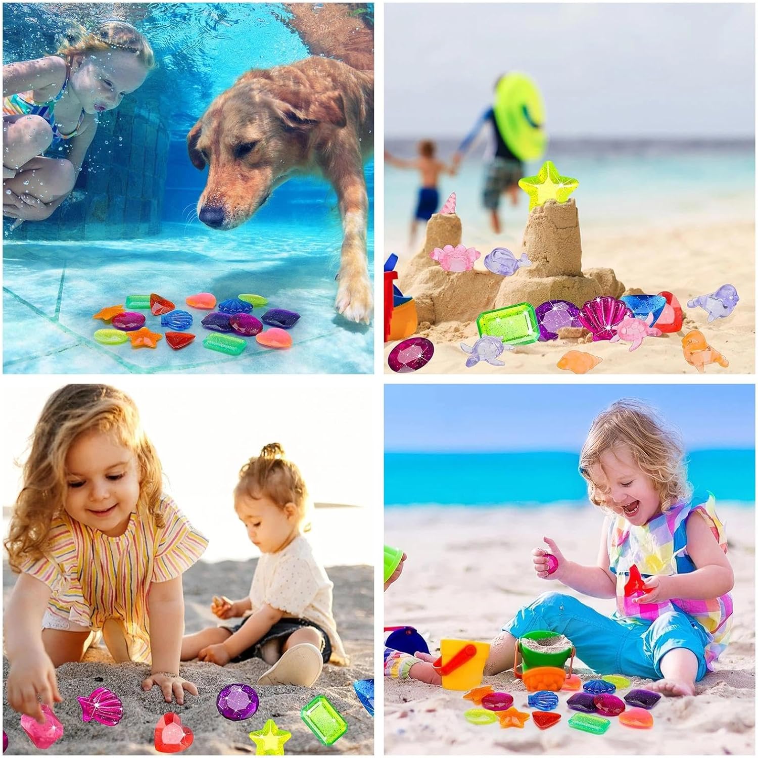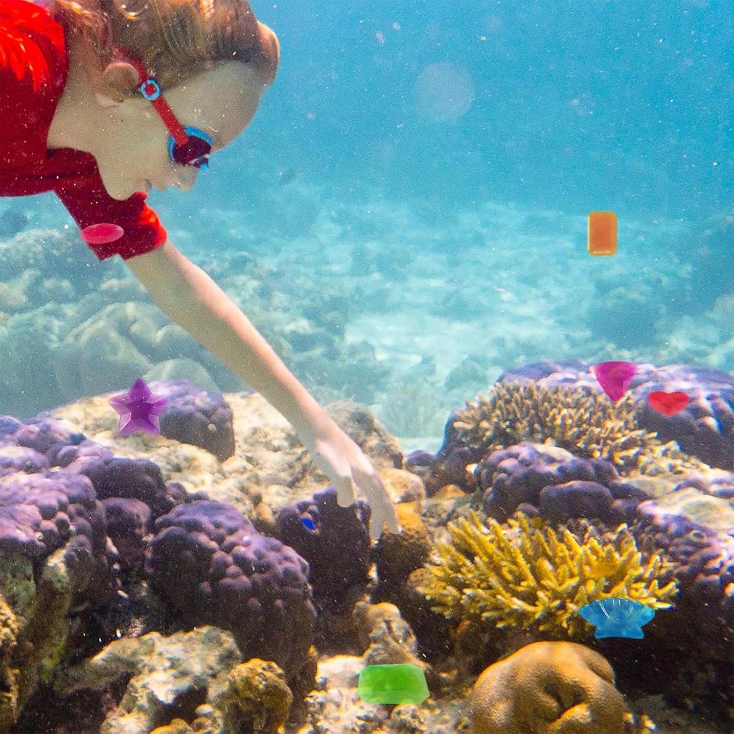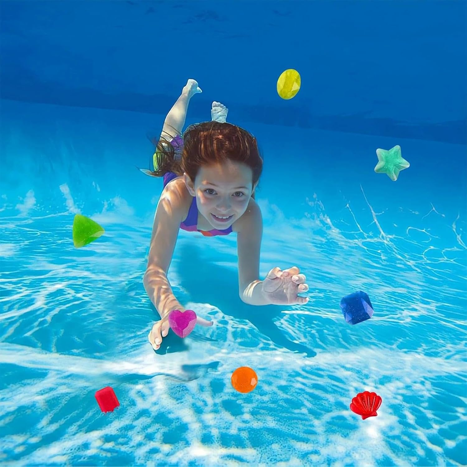 Divertente giocattolo per piscina per bambini: con un set che include 8 licenze subacquee. Sarete stupiti dai colori vivaci giocattoli piscina e accessori per la piscina. I colori delle pietre da immersione per piscina sono casuali. Materiale: la misura di immersione è realizzata in materiale plastico, robusto e durevole da usare, non si rompe o sarà facilmente distrutto; ogni gemma subacquea ha un colore brillante e bello con un aspetto glitterato. Diverse forme: queste pietre affondanti hanno 8 diverse forme: conchiglia, stella, cuore, rotondo, ellisse, triangolo, quadrato e rettangolo. Con una forma carina, colori brillanti e linee morbide, sembrano più belle e possono anche affondare facilmente nell'acqua. Possibile riutilizzo: i gioielli giocattolo piscina non galleggiano sull'acqua, ma con i colori vivaci si possono trovare facilmente in piscina; i colori non sbiadiscono, anche se sono sott'acqua per un lungo periodo di tempo, è possibile riutilizzarli finché ne avete bisogno. Ampia gamma di funzioni: piscina Immersione gioiello sono un bel regalo per le persone di portare un'estate colorata. Oltre all'uso in piscina, i gioielli della piscina possono essere utilizzati anche per feste a tema estive, feste in spiaggia, feste di compleanno, ecc.