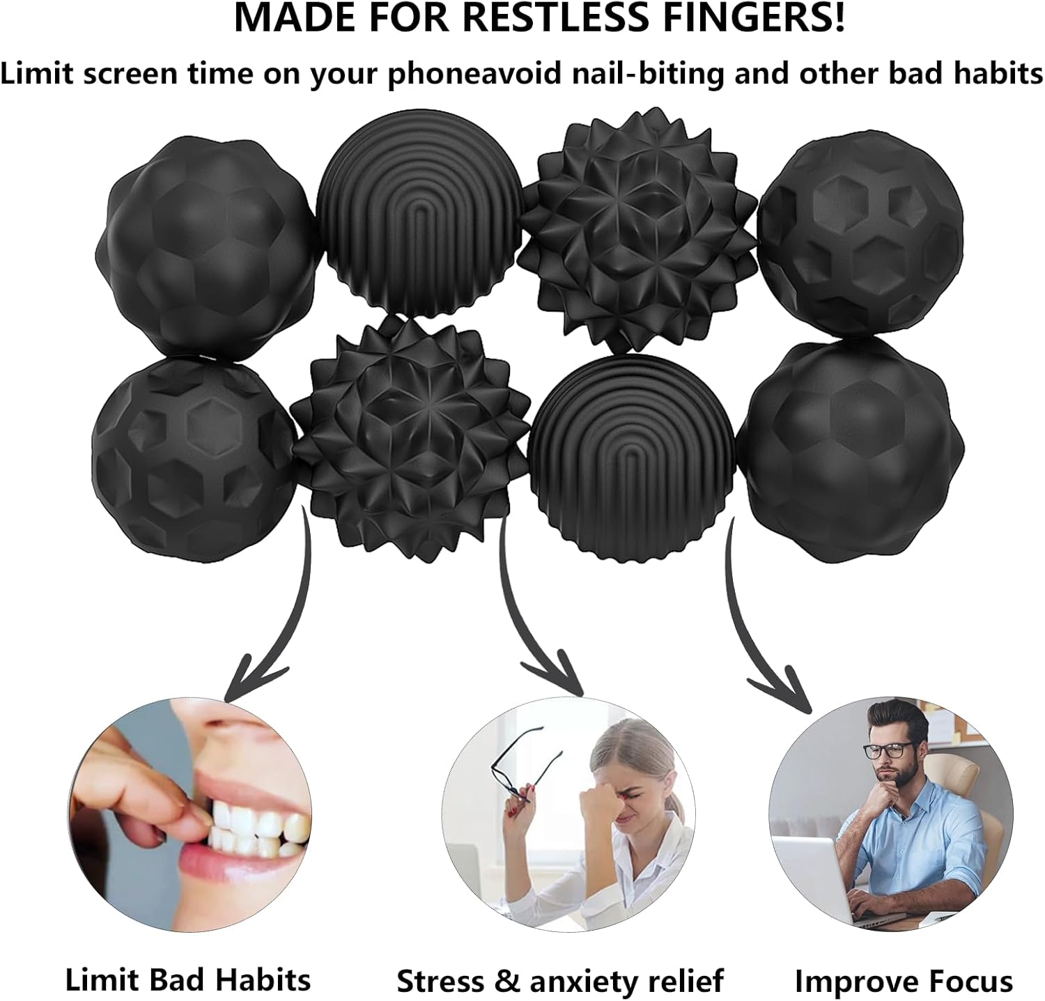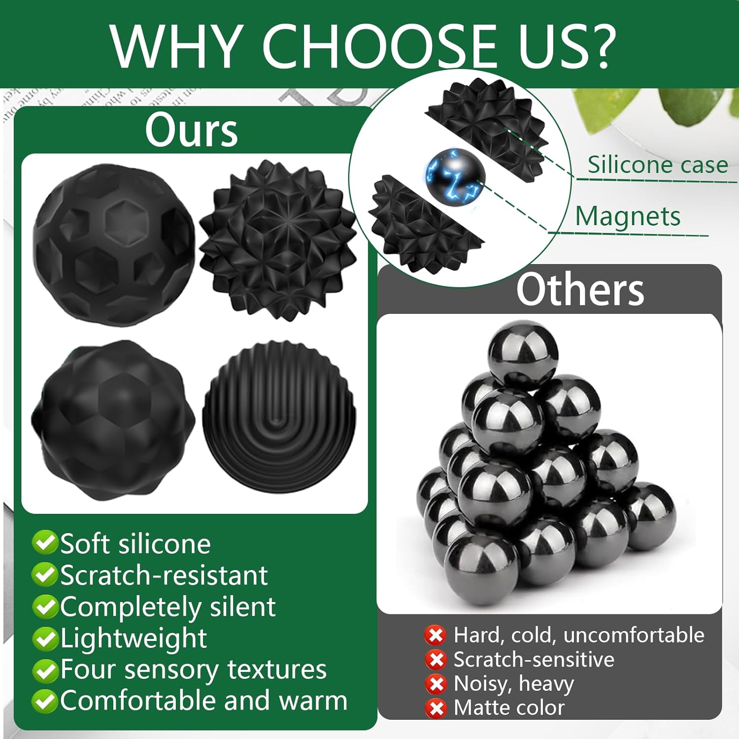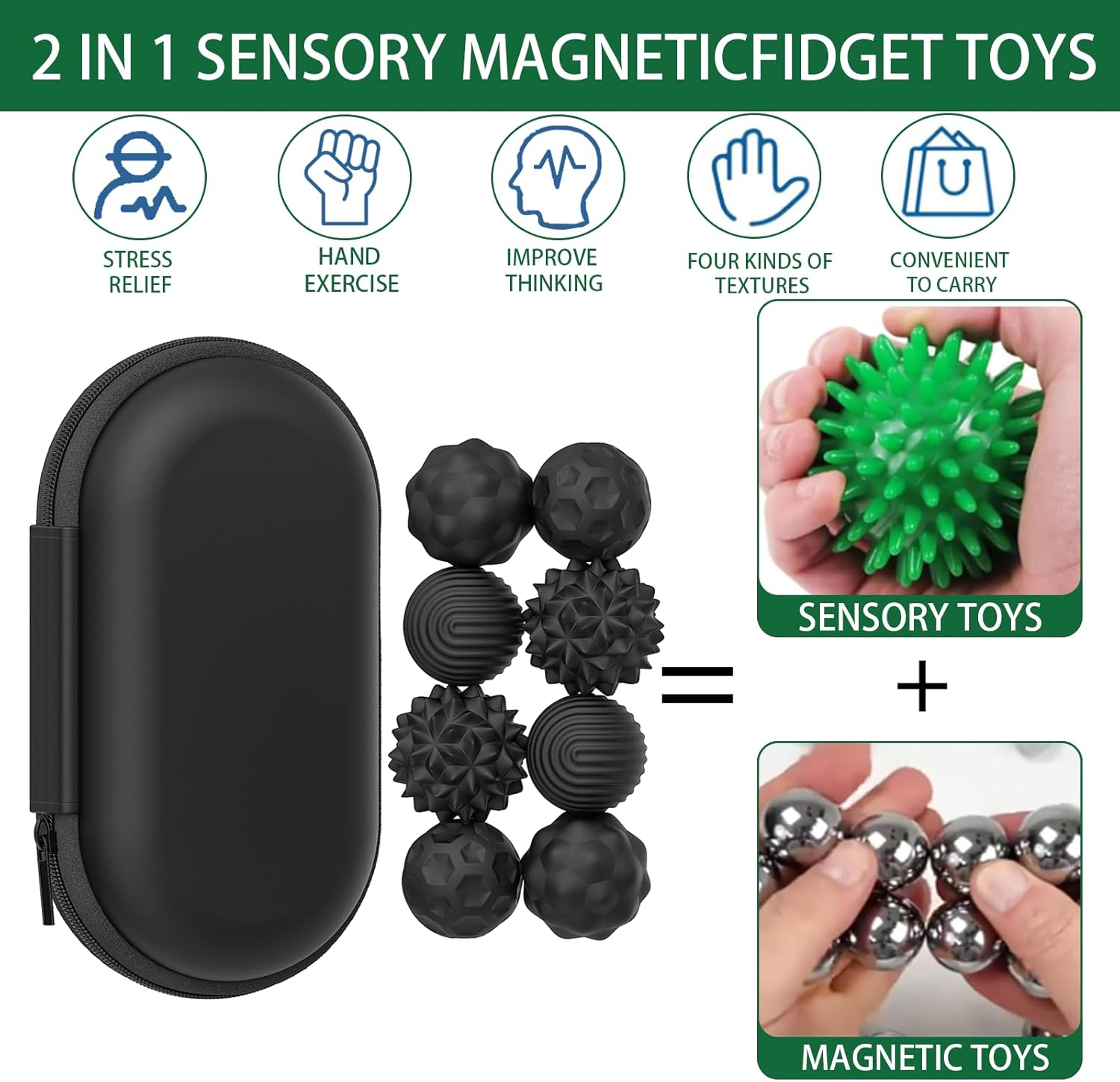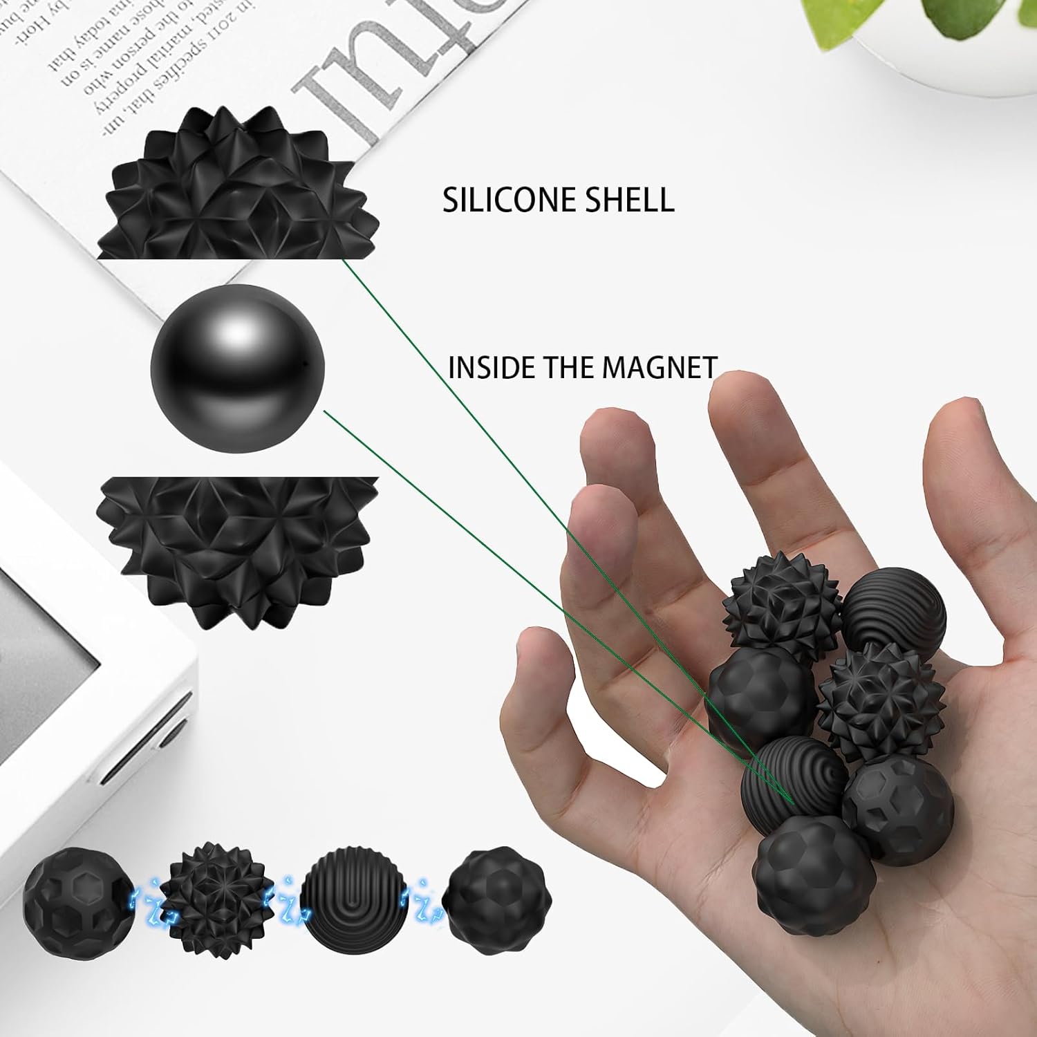 CONTENUTO DELLA CONFEZIONE: Riceverete 8 sfere magnetiche sensoriali in silicone e una scatola per la conservazione. Le sfere magnetiche sono facili da pulire, robuste e compatte. Questo pratico e premuroso set di sfere magnetiche in silicone può esprimere la vostra attenzione e portare gioia in ogni occasione, sorprendendo i vostri cari. Lasciate che allevino lo stress e il disagio ogni giorno. ALLEVIARE LA PRESSIONE: quando vi sentite ansiosi e irritabili, controllate la maggior parte delle vostre abitudini nervose e calmatevi strofinando ripetutamente le dita su e giù con queste palline in silicone magnetico. Utilizzate questo gadget per sopprimere il mangiarsi le unghie, il mordersi le nocche, il tremore delle gambe e altre fastidiose cattive abitudini. TATTO RILASSANTE: le nostre palline magnetiche sono realizzate in materiale siliconico con una sensazione piacevole al tatto, configurate con 4 diverse texture in rilievo per soddisfare una varietà di esigenze diverse per la stimolazione leggera, media e, fornendo un'esperienza tattile infinita per un massaggio rilassante che elimina il disagio e lo stress. SICURAMENTE MAGNETICO: il morbido giocattolo sensoriale è realizzato in silicone antistatico avvolto da perline magnetiche. Favorevole a sperimentare le gioie del magnetismo. Sono sicuri per i bambini, migliorano le capacità cognitive, permettono di pensare meglio in termini spaziali, mantengono la concentrazione, incoraggiano la creatività e stimolano l'immaginazione. INTERESSANTI MAGNETICI: questi giocattoli magnetici permettono di girare in qualsiasi direzione e angolazione, di distrarre le energie irrequiete e di entrare in uno stato di concentrazione e di calma attraverso movimenti di rotolamento discreti e soddisfacenti.