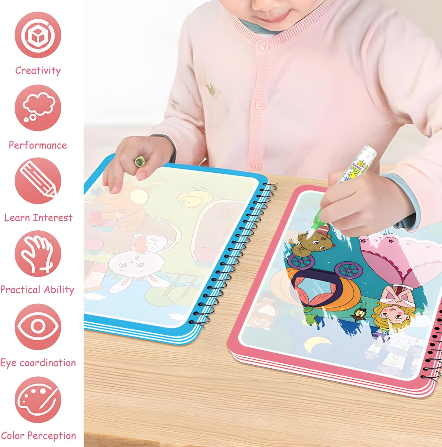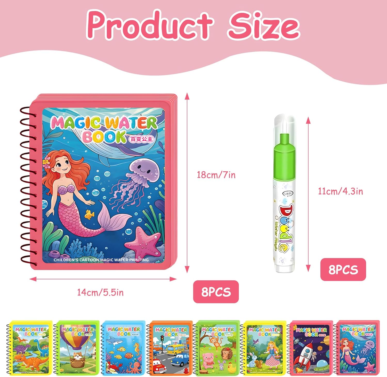 Riceverai 8 libri da colorare ad acqua su diversi temi: paradiso degli animali, mondo sottomarino, trasporto, principessa, regno delle fiabe, mondo dei gatti, universo e mondo dei dinosauri e 8 penne riutilizzabili. La varietà di libri da colorare con penna ad acqua e stili non lascia nulla a desiderare. I libri da colorare ad acqua hanno anche la dimensione perfetta per il bagaglio a mano del vostro bambino, pronti per un meraviglioso viaggio. Questo magico libro da colorare ad acqua è realizzato in materiale sicuro, ecologico e riutilizzabile con cartone rinforzato, infrangibile e durevole. Il libro da colorare dell'acqua evita gli svantaggi delle vernici convenzionali come la pulizia difficile e danni alla pelle. I libri da colorare ad acqua dispongono di una rilegatura a spirale per una facile rotazione delle pagine e facilitano così la scrittura e il disegno. I libri da colorare ad acqua sono caratterizzati da colori chiari, vari e vivaci, in modo che i bambini possano conoscere lettere e mezzi di trasporto durante la pittura. Imparare a giocare è divertente, risveglia l'interesse dei bambini per l'apprendimento e costruisce un ponte per esplorare il mondo. I libri ad acqua sono assolutamente adatti ai bambini e quindi la scelta ideale per giocare spensieratamente. Per utilizzare il libro da colorare ad acqua, basta immergere la penna in dotazione in acqua e dipingere sulla carta. I libri da colorare con penna ad acqua sono luminosi e colorati quando bagnati e si asciugano da soli dopo 5-10 minuti, in modo che siano facili da dipingere e giocare. Il libro da colorare ad acqua è riutilizzabile, in modo che il bambino possa giocare e sperimentare più volte. Questo set di libri da colorare ad acqua è il regalo perfetto per i bambini, ideale per compleanni, festa dei bambini, Natale o qualsiasi altra occasione speciale. La penna ad acqua da colorare può stimolare la creatività e l'immaginazione dei bambini, migliorare la coordinazione occhio-mano, ridurre il tempo sullo schermo e aiutare i bambini a imparare di più.