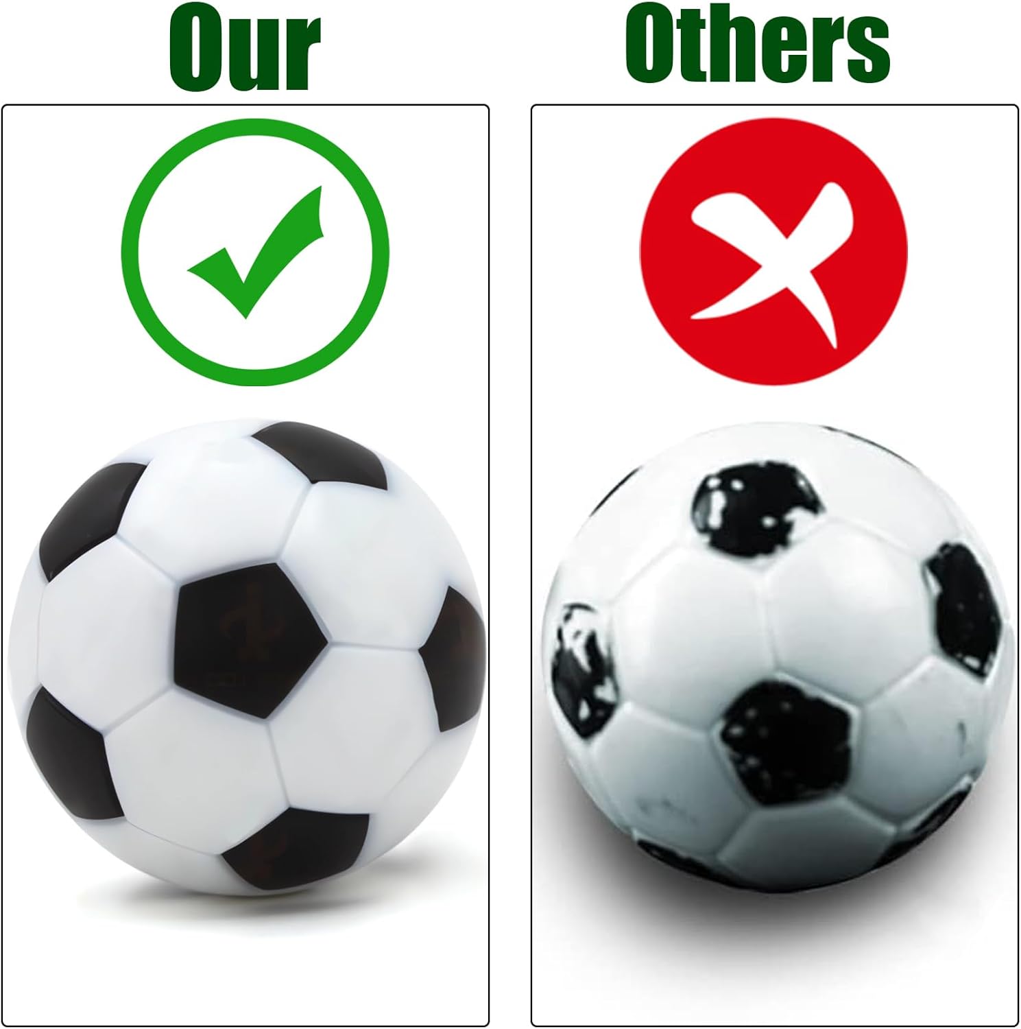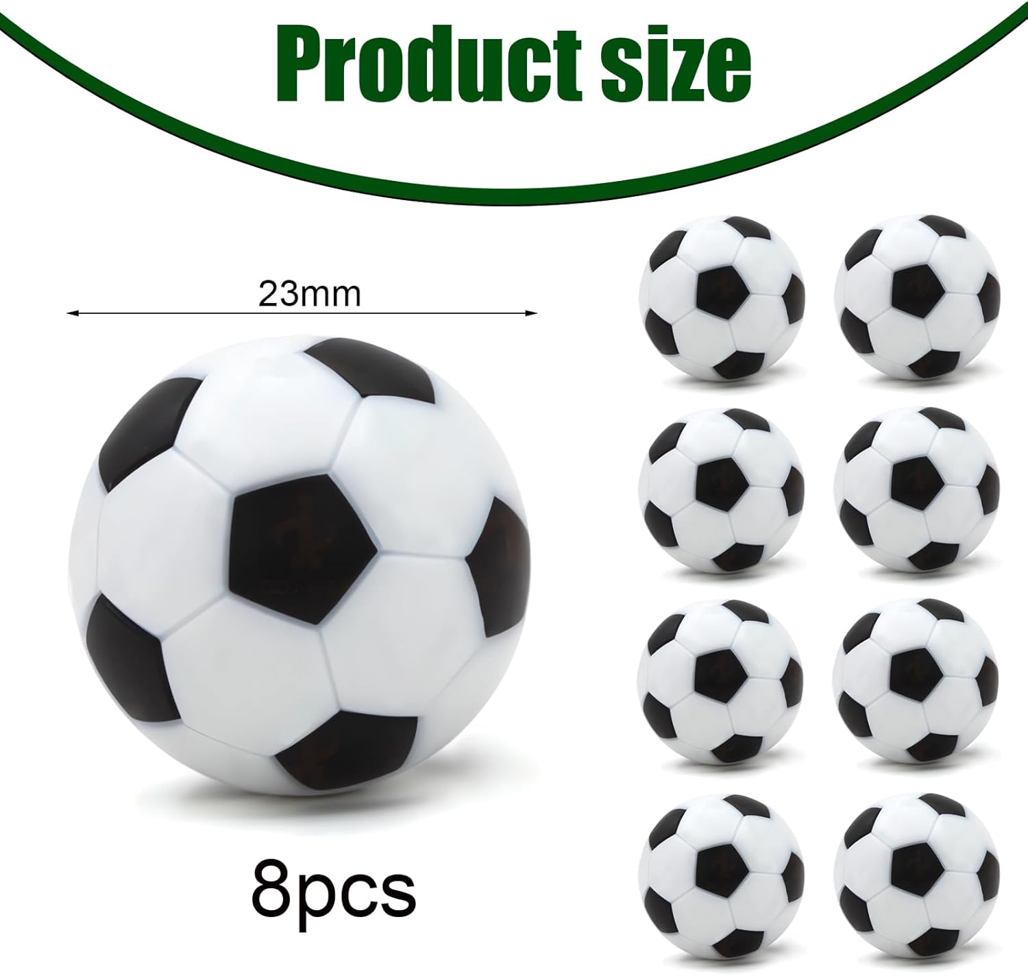 Materiale Premium: Realizzati in materiale resinoso ecologico di alta qualità, i nostri biliardini hanno una superficie liscia e resistente che non sbiadisce, non si crepa e non si graffia facilmente. Durevole per un uso duraturo. Bellissimo design: il motivo pentagonale in bianco e nero conferisce al biliardino un aspetto realistico come un pallone da calcio. Divertitevi con i giochi da tavolo con questa lampada da tavolo di ricambio resistente. Regali perfetti : Un accessorio indispensabile per gli amanti del biliardino e per i giocatori professionisti. Il calcio balilla è la scelta ideale per gli sport occasionali a scuola o in ufficio. Ampie applicazioni: un articolo essenziale per le attività sportive in qualsiasi sala giochi. Perfetto come premio di carnevale o come regalo divertente. Questo giocattolo per bambini è la combinazione perfetta per premi e riconoscimenti. Pacchetto incluso: Riceverete 8 pezzi di mini biliardino, con un diametro di 23 mm/0,9 pollici, dimensione eccellente per la maggior parte dei giochi di biliardino standard. Leggero e portatile: puoi portarlo sempre con te per divertirti ovunque.