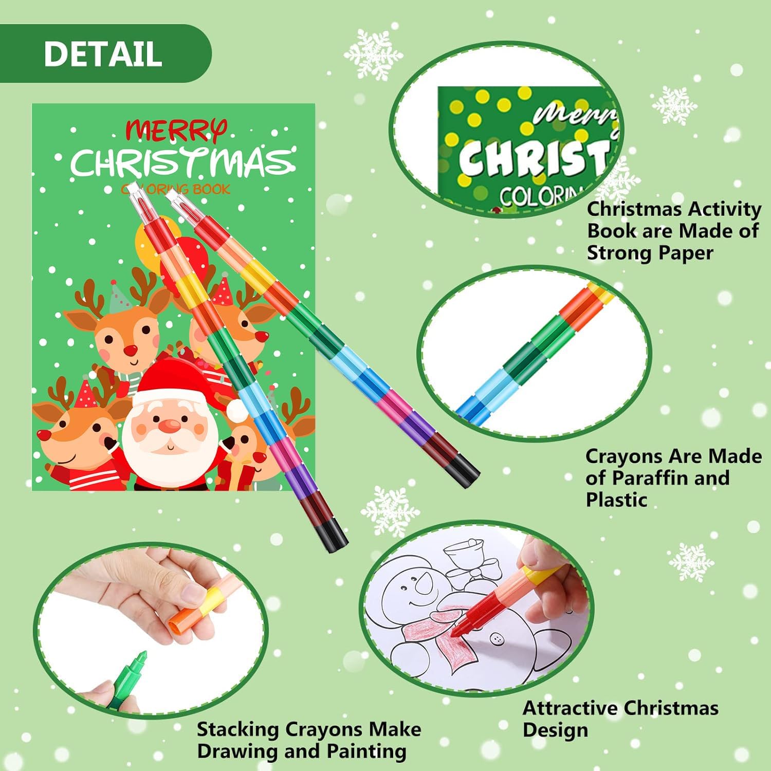 🎨 Il pacchetto include: il set di libri da colorare natalizi comprende 8 pezzi libri da colorare natalizi e 12 pezzi penne impilabili in 12 colori; Ogni libro ha 12 pagine, ricche di quantità e stili per soddisfare le vostre esigenze di utilizzo e condivisione 🎨 Libro da colorare di qualità: i nostri libri di attività natalizie sono fatti di carta forte, non facile da strappare, puoi facilmente colorare le pagine a tema di Natale carine con i pastelli arcobaleno corrispondenti; Ogni libro è di circa 5,1 x 7,1 pollici, comodo per i bambini piccole mani 🎨 Matite impilabili: i nostri pastelli impilabili 12 colori sono realizzati in paraffina e plastica, la lunghezza totale dei pastelli con cappuccio trasparente è di 25cm / 9,84 pollici, è possibile modificare la posizione del colore e la lunghezza dei pastelli da soli 🎨 Disegno divertente: il libro da colorare invernale per bambini è stampato con adorabili personaggi, figure allegre e simboli festosi, tra cui albero di Natale, pupazzo di neve, elfo, pan di zenzero, renne, Babbo Natale e così via, per sfidare le tue piccole abilità artistiche, pieno di una calda atmosfera natalizia 🎨 Bomboniere per feste di Natale per bambini: questi libri da colorare di vacanze con pastelli colorati possono essere come regalo per il tuo bambino per la festa di Natale, un compleanno, o come ricompensa; Inoltre può essere utilizzato come premi competitivi, Calze natalizie Goodie Bags Filler Party Supplies per l'attività della classe scolastica, Color Book Set fa un bel trattamento