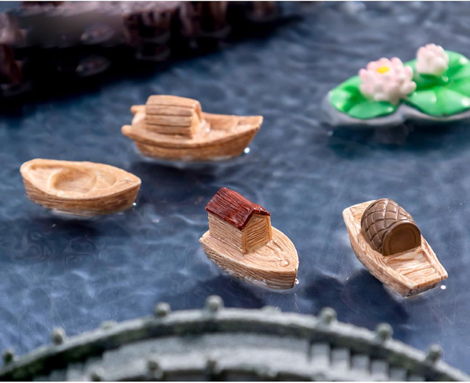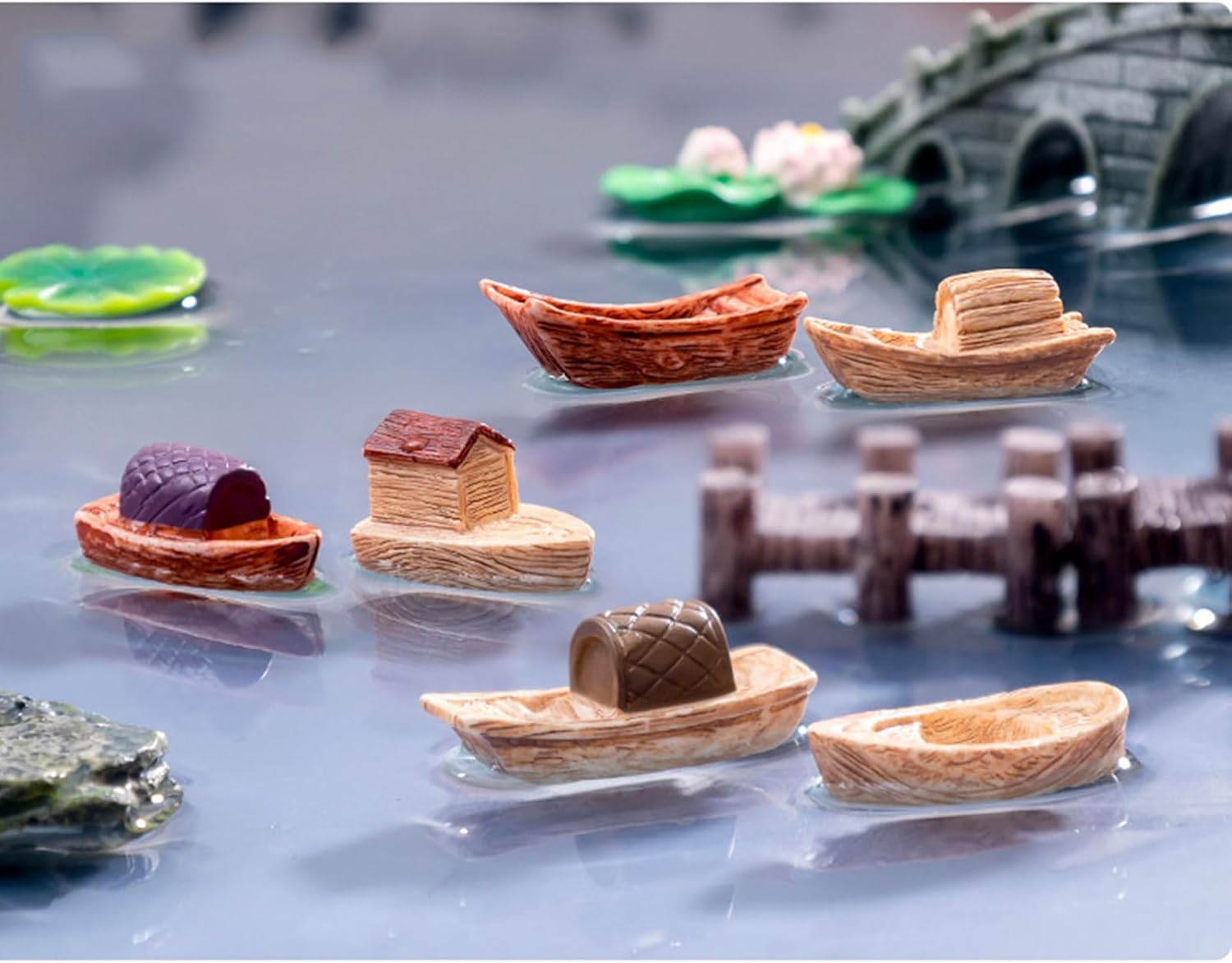 Queste statuette sono realizzate con resine di alta qualità e meticolosamente progettate per ricreare la pittoresca bellezza delle barche fluviali cinesi. Sono dettagliati e un piacere visivo per tutti gli amanti degli accessori per la casa. Trasforma il tuo giardino di casa o i tuoi terrari a tema in una magica scena d'acqua con queste incantevoli barche in miniatura e rendi ogni sguardo un'escursione in un mondo in miniatura di pace e di Queste barche in miniatura sono ottime per tutti coloro che apprezzano le decorazioni culturali e vogliono dare alle loro case un tocco personale di estetica cinese. Si rivolgono a entrambi i collezionisti e gli amanti dello stile. Immergiti nel fascino dell'Oriente con il nostro set di ornamenti paesaggistici a barca in miniatura da 8 pezzi, un ottimo mix di tradizione e artigianato che aggiunge un tocco di eleganza Jiangnan alla tua stanza. stesso, è possibile decorare una scrivania, una libreria o un soggiorno, queste decorazioni in barca in miniatura creano uno spazio tranquillo e culturalmente ricco che ricorda l'acqua calma e il paesaggio della Cina meridionale.