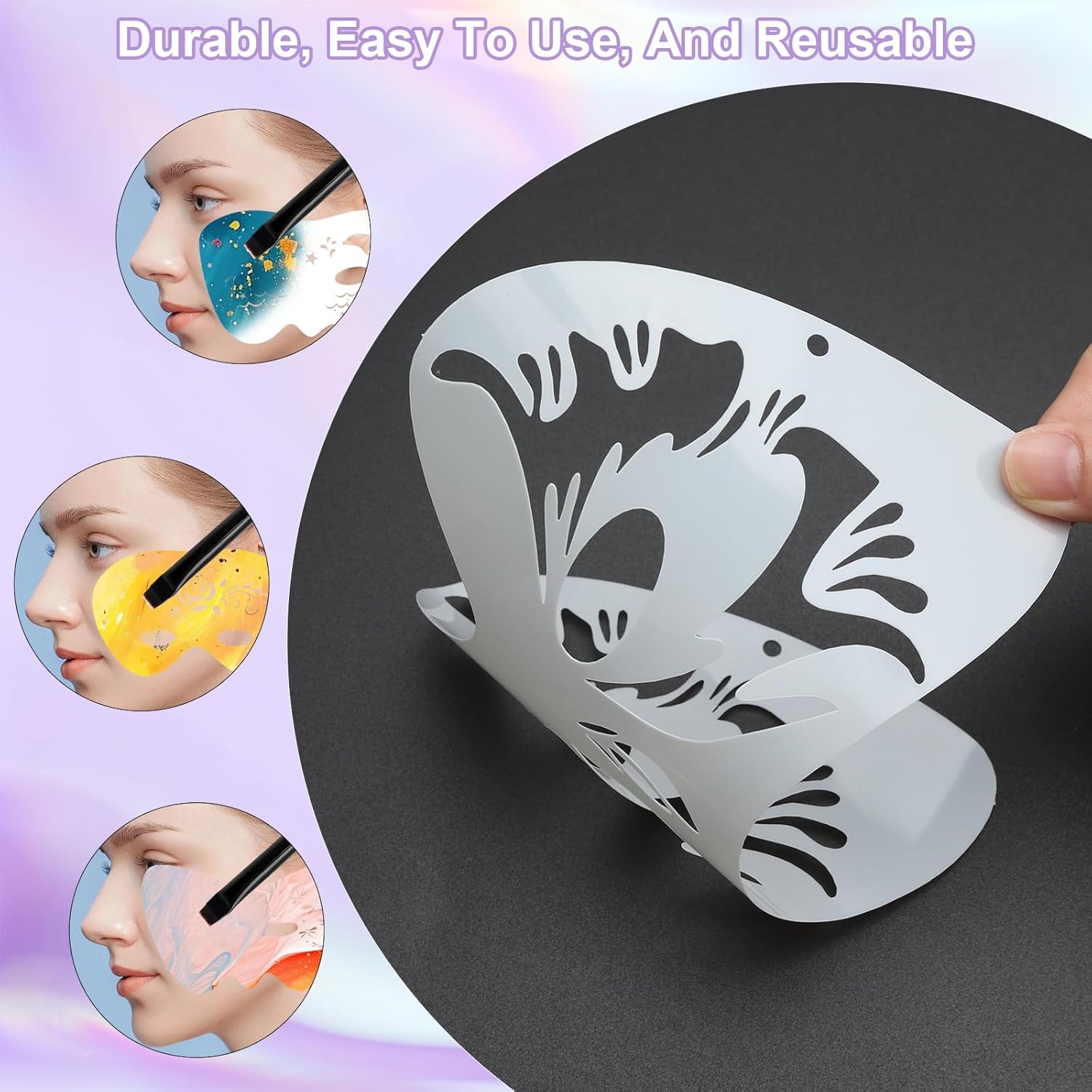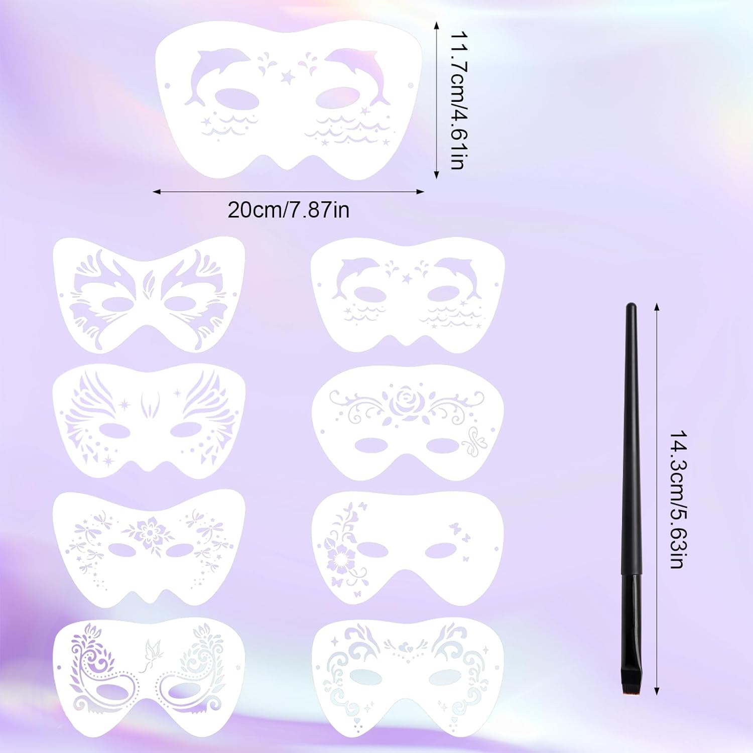 【Set di trucchi per bambini】 Questo set contiene 8 trucchi per bambini e 1 pennello eyeliner nero, ognuno con uno stile unico per soddisfare le vostre esigenze quotidiane di trucco fai da te. 【Materiali di alta qualità】 Gli stampini per trucco per bambini sono realizzati in plastica PET di alta qualità, morbida e flessibile. La superficie degli stampini per trucco per bambini e i bordi sono lisci e arrotondati, in modo da non causare graffi o fastidi sulla pelle sensibile. 【Motivi vari】I nostri stencil per tatuaggi per bambini presentano motivi floreali, animali e astratti, tutti vivaci e belli. Questi stencil per tatuaggi per bambini non sono adatti solo per il trucco del viso, ma possono essere utilizzati anche per enfatizzare il trucco degli occhi. 【Comodi e facili da usare】Gli stencil per il trucco del viso sono estremamente facili da usare. Basta posizionare con cura gli stencil per il trucco del viso sulla pelle, applicare i pigmenti per il trucco lungo i bordi dello stencil con un pennello da trucco, quindi rimuovere delicatamente lo stencil per ottenere un bellissimo disegno di trucco. 【Ampia gamma di applicazioni】I nostri modelli di trucco per bambini sono adatti per creazioni di trucco sul viso, sugli occhi e su altre superfici lisce. Che si tratti di trucco quotidiano o di occasioni speciali come feste di compleanno, balli, eventi scolastici, Halloween, balli in maschera, Natale, sfilate e carnevali, con i modelli di trucco per bambini è possibile ottenere facilmente effetti di trucco personalizzati che rendono il vostro look più divertente e affascinante.