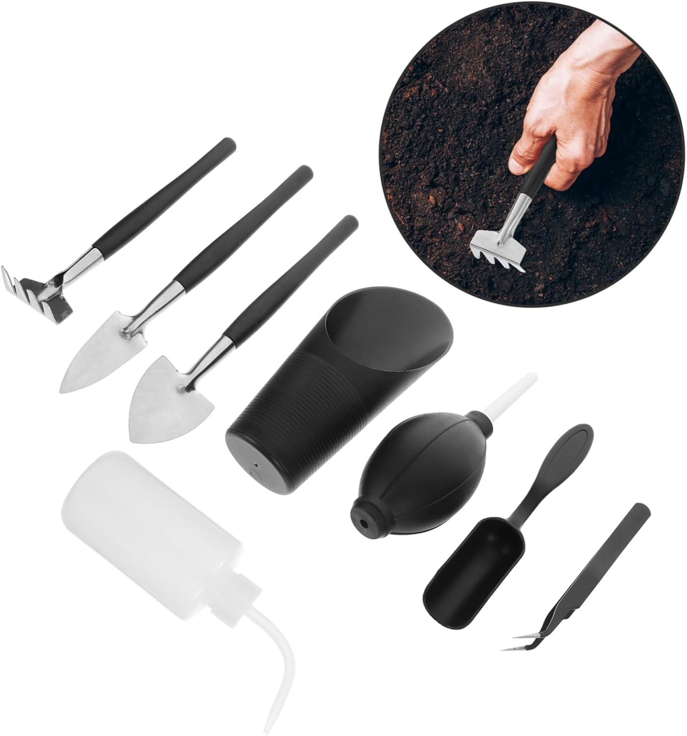 Kit per la coltivazione di piante succulente: ogni strumento è dotato di impugnature ergonomiche che offrono una presa comoda, consentendo un migliore controllo e precisione durante l'uso, strumenti per bonsai Attrezzi da giardinaggio per interni: migliora la qualità delle tue piante da giardino con questo set completo di strumenti, assicurandoti che ricevano la migliore cura possibile, cazzuola da giardinaggio Attrezzi da giardino: questo completo set di 8 attrezzi da giardino è progettato specificamente per piante succulente e da terrario, rendendolo ideale per i principianti che per i giardinieri esperti, cazzuola da giardino Kit per la coltivazione di fiori: ogni strumento in questo kit per il trapianto di bonsai è meticolosamente progettato per semplificare le attività di giardinaggio, migliorando l'efficienza e rendendo piacevole la piantagione, strumento da giardino a cazzuola Attrezzi per piantagione: progettati tenendo presente l'ergonomia, questi attrezzi offrono il massimo comfort e facilità d'uso, riducendo lo sforzo durante le attività di giardinaggio, mini kit di attrezzi