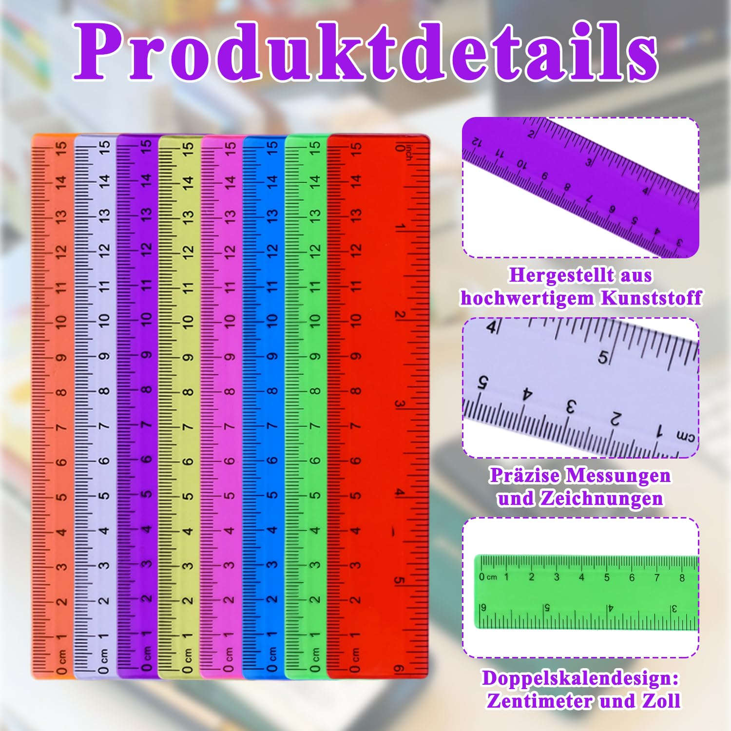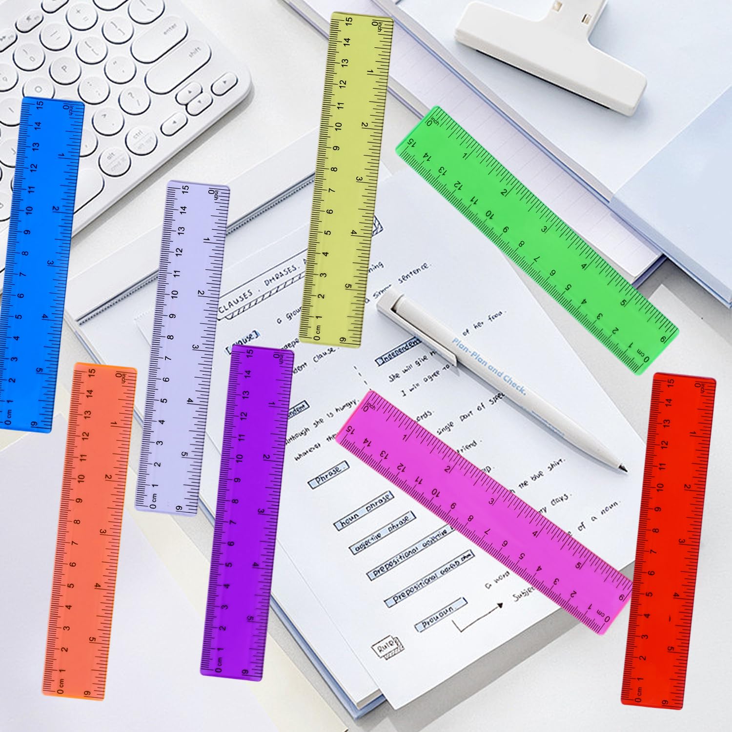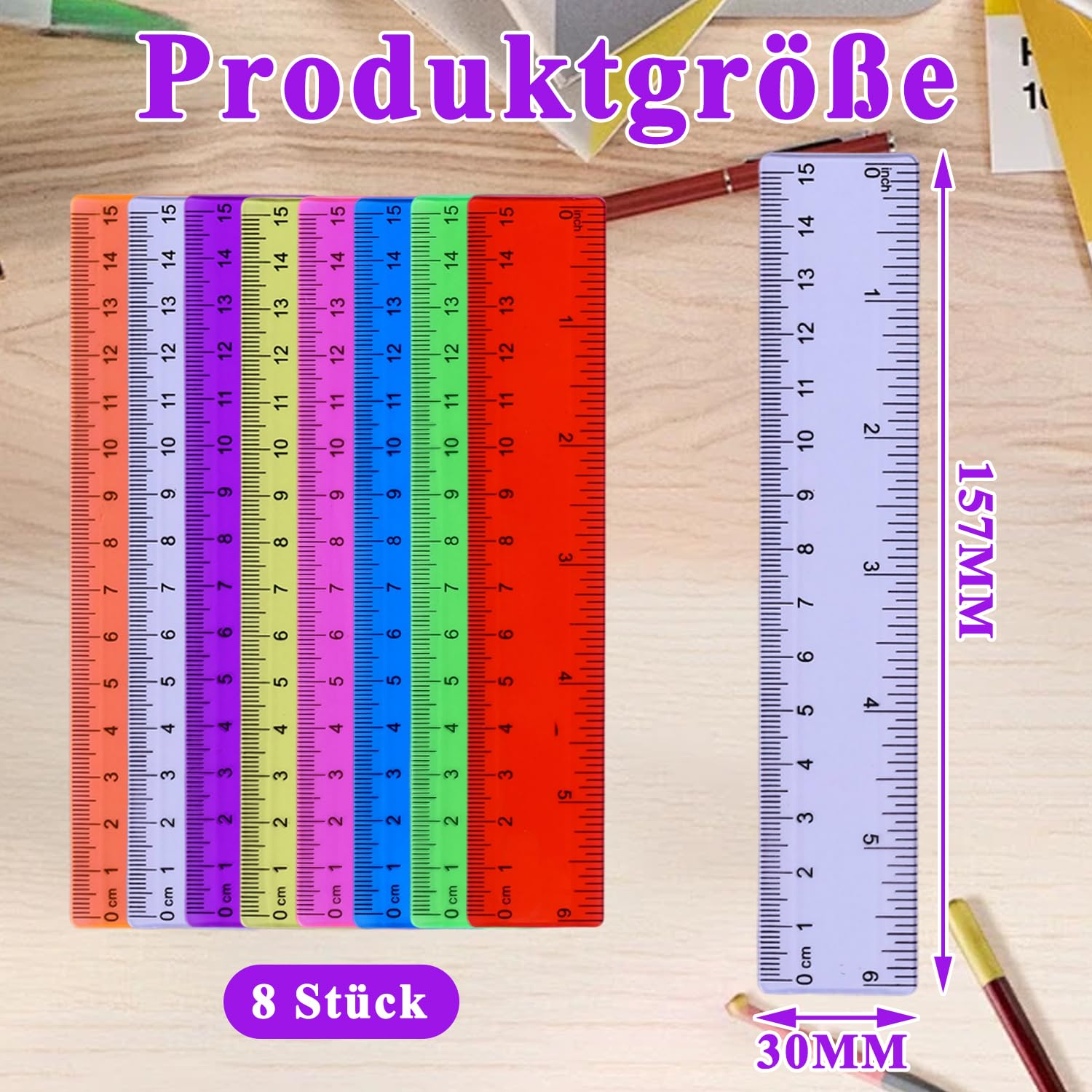 Contenuto della confezione: riceverete 8 righelli colorati lunghi 15 cm in rosa, blu, trasparente, rosso, verde, viola, arancione e giallo, perfetti per l'uso a scuola, in ufficio e a casa Materiale di alta qualità: il righello da 15 cm realizzato in plastica estremamente resistente con scale chiare, resistente all'usura e durevole. La superficie della scala è inclinata per migliorare la precisione di misurazione Misura sicura: il bordo del righello è liscio e i quattro angoli sono arrotondati, quindi non devi preoccuparti di ferirti le mani. Il righello ha marcature chiare su un lato e forme ondulate sull'altro lato in modo da poter disegnare curve Pratico e pratico: il righello semitrasparente ti consente di misurare facilmente gli oggetti e vedere chiaramente cosa c'è sotto. Un righello è un ottimo compagno per ogni bambino, studente o professionista Ampia gamma di applicazioni: il righello da disegno in plastica è adatto per la maggior parte delle persone come artisti, designer, architetti, ingegneri, studenti, ecc. Per misurare oggetti. È uno strumento di misurazione molto pratico