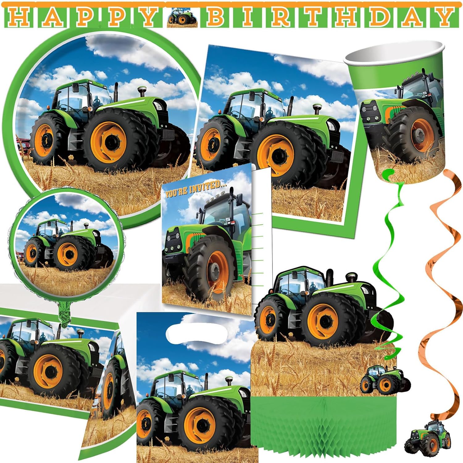 La confezione include: 8 sacchetti per trattore con maniglia in plastica I tuoi piccoli ospiti si entusiasmeranno tantissimo quando riceveranno i nostri fantastici sacchetti regalo di compleanno. Questi sacchetti presentano un trattore agricolo verde brillante in un campo di grano sotto un cielo azzurro con soffici nuvole gonfie. Usa questi sacchetti regalo come omaggio per una festa o come premio di un gioco, riempi questi sacchetti con bomboniere o dolcetti per il trattore. Combina con altre forniture per feste e decorazioni per feste Tractor Time, ogni sacchetto misura 6,5" x 9".