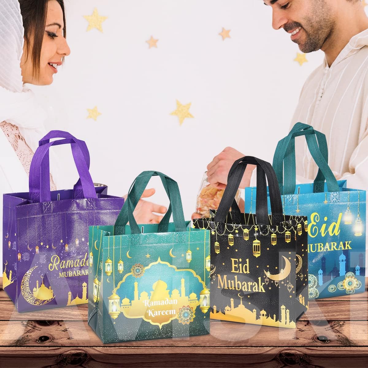 8 sacchetti regalo riutilizzabili Eid Mubarak, sacchetti per feste Ramadan Mubarak, sacchetti Eid multifunzionali in tessuto non tessuto per confezioni regalo, forniture per feste Ramadan Kareem, 23×22×11 cm