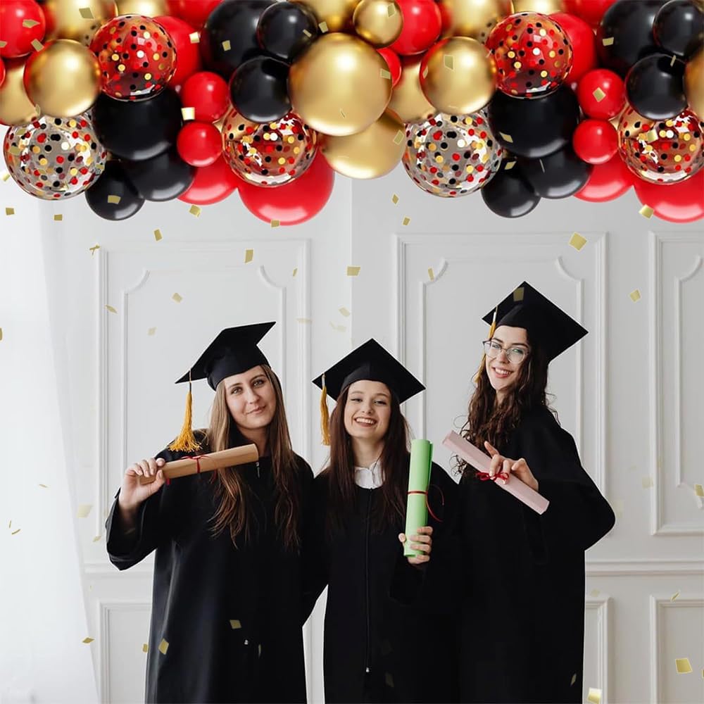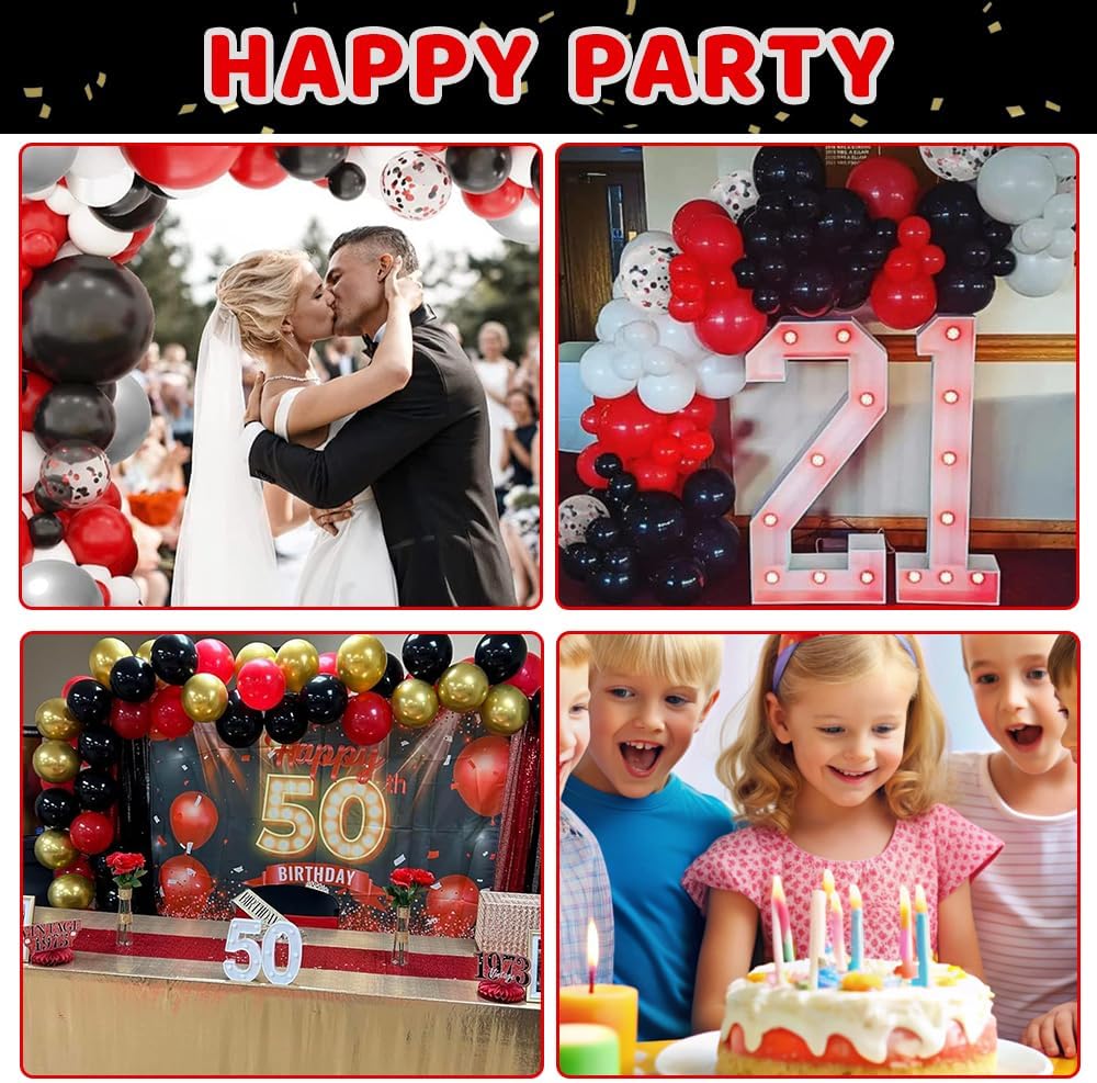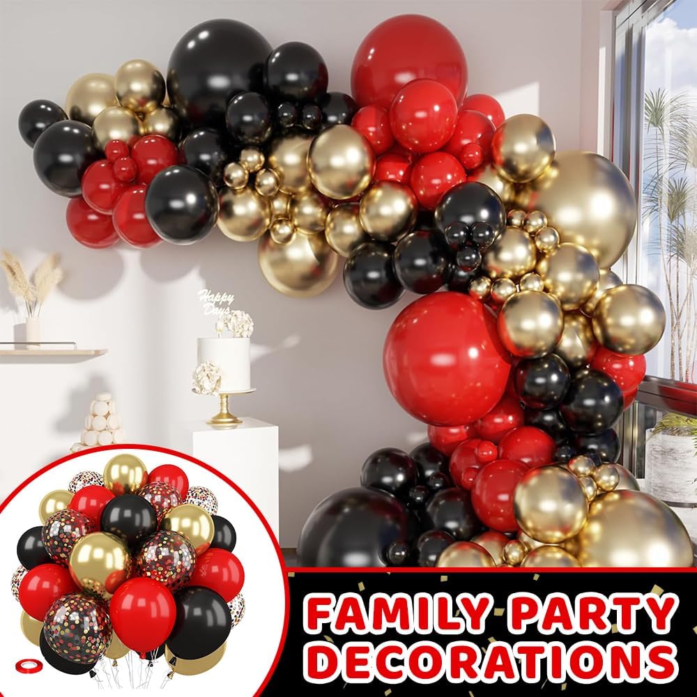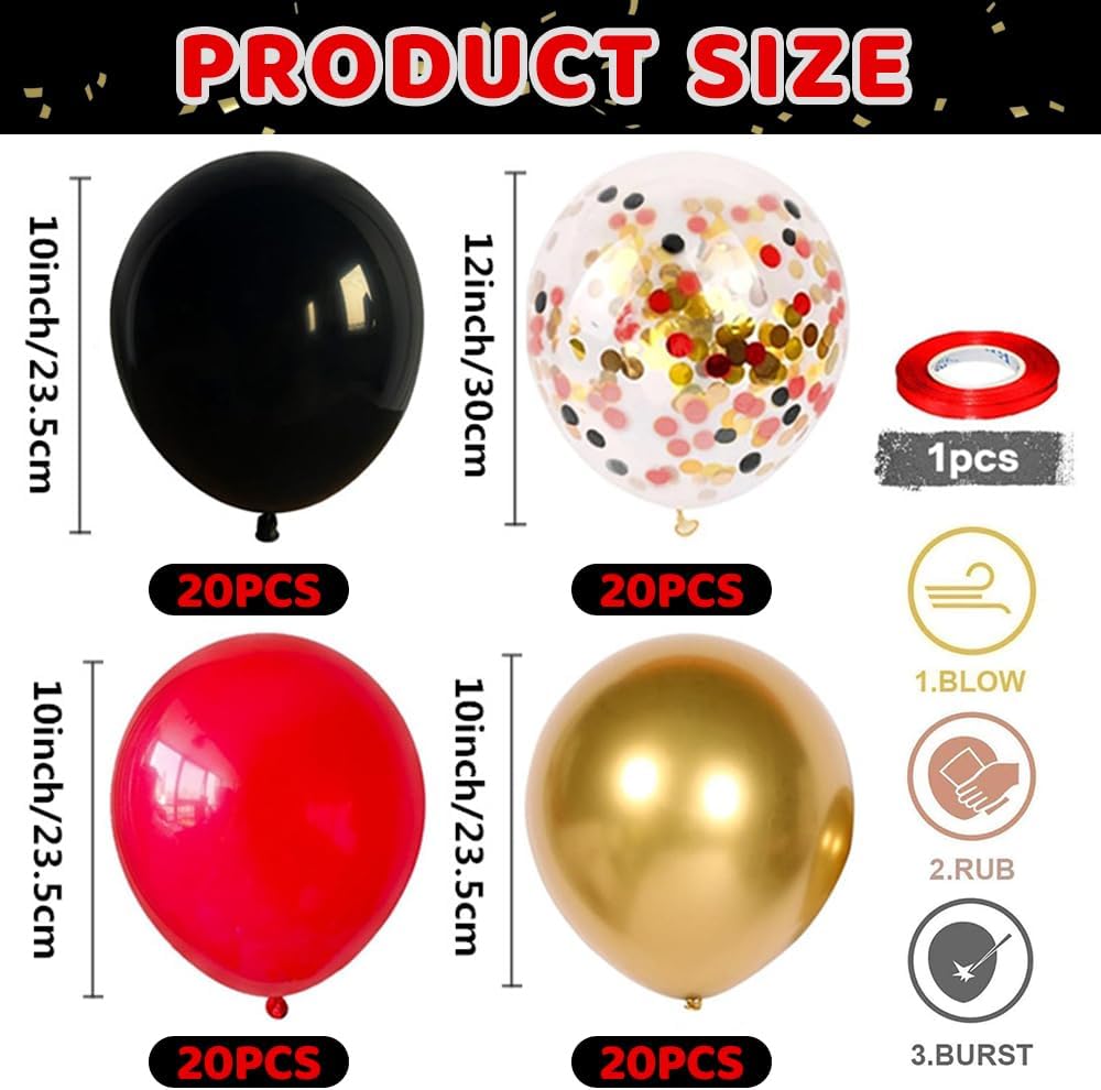 Elegante combinazione di colori: Questo set contiene un totale di 80 pezzi in varie misure. La combinazione di nero, rosso e oro aggiunge un tocco di eleganza e stile a qualsiasi evento. Materiali di alta qualità per un divertimento duraturo: i palloncini neri, rossi e oro sono realizzati in lattice resistente e di alta qualità, atossico ed ecologico. Sono facili da gonfiare e offrono un'eccellente tenuta. Decorazione versatile e facile da usare: la striscia di fiocchi e i nastri inclusi facilitano la disposizione dei palloncini. Crea archi di palloncini di grande effetto o decora tavoli, pareti e ingressi con facilità. Scelta ideale per le occasioni festive: nero, rosso e oro sono i colori della bandiera nazionale tedesca e offrono un ottimo modo per celebrare le festività patriottiche come il Giorno dell'Unità Tedesca o la Coppa del Mondo FIFA. Palloncini di coriandoli unici per una maggiore brillantezza: i palloncini di coriandoli sono pieni di coriandoli colorati che si muovono vivacemente quando vengono gonfiati e agitati. Offrono un elemento visivo emozionante.