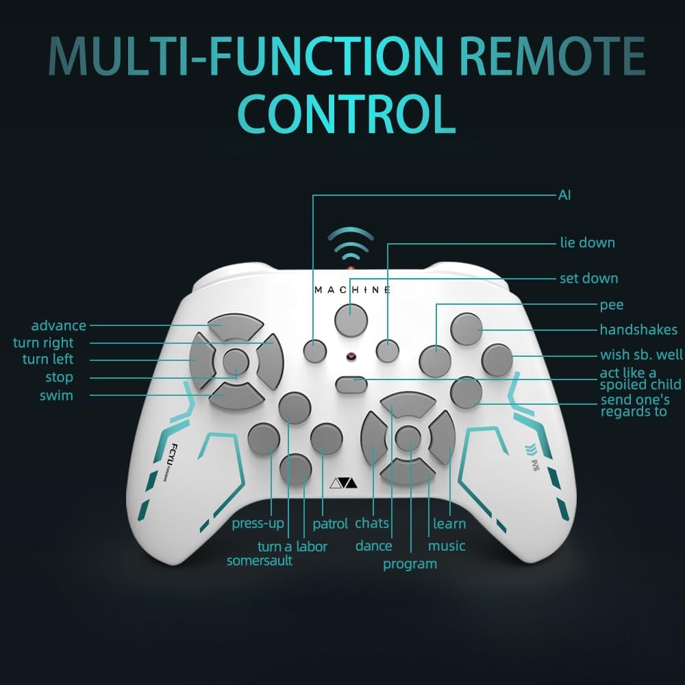 [Esperienza interattiva intelligente] Questo cane robot intelligente supporta la connettività Bluetooth e interagisce tramite comandi vocali. Gli utenti possono fornire 12 diversi comandi tramite l'app, che consente al cane robot di eseguire azioni appropriate e offrire così un'esperienza interattiva completa. [Impara a programmare] Il sistema di programmazione integrato consente al cane robot di eseguire una serie di azioni tramite segnali di programmazione dall'app, ad esempio: salutare, nuotare, sedersi, fare flessioni e dormire. Dopo la programmazione, la sequenza può essere mostrata premendo un pulsante. Questo è l'ideale per promuovere l'interesse e le capacità dei bambini nel campo della programmazione. [Multifunzionale] Il cane robot ha numerose funzioni, tra cui una stretta di mano bionica, saluti, giochi di programmazione, canto, danza e narrazione che danno ai bambini un divertimento senza fine. [Musica e danza] Dotato di un altoparlante integrato di alta qualità, riproduce musica dinamica e balla in modo flessibile al ritmo. I suoi movimenti sono fluidi e divertenti, completati da occhi lampeggianti. Che si tratti di feste di famiglia o feste per bambini, il cane robot ravviva l'atmosfera con le sue proiezioni di musica e danza. [Interazione di stretta di mano bionica] Il cane robot imita le strette di mano umane allungando la zampa anteriore sinistra per offrire un'esperienza interattiva autentica. Le sue forti caratteristiche interattive e divertenti lo rendono un compagno ideale per lo sviluppo dei bambini e animano le feste di famiglia!