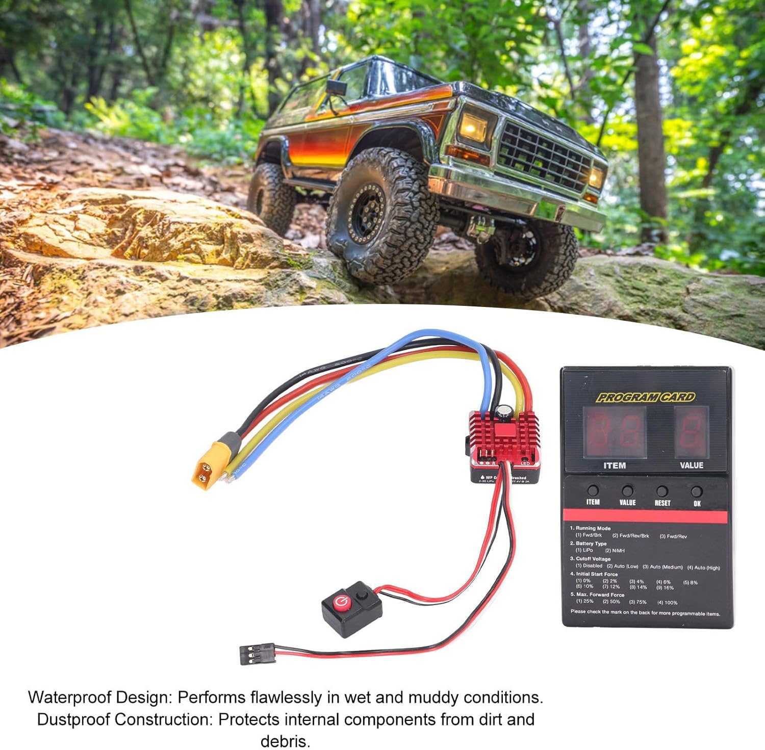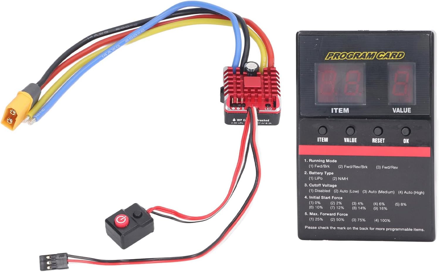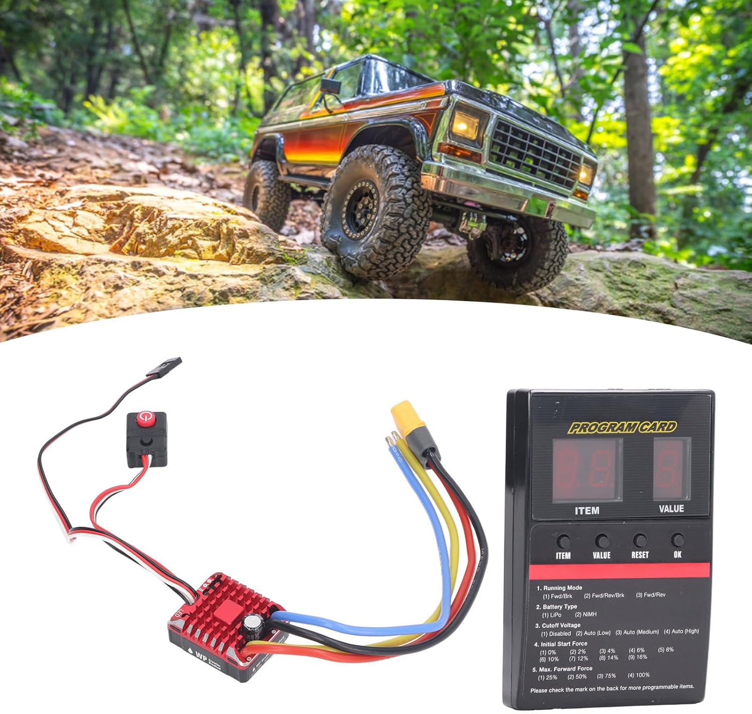 【Uso versatile】 Realizzato su misura per le corse con tutte le condizioni atmosferiche, il nostro ESC è progettato per resistere alle condizioni più difficili. Il suo design completamente impermeabile e antipolvere garantisce prestazioni in qualsiasi condizione atmosferica, mantenendo il tuo veicolo RC in funzione indipendentemente dall'ambiente 【Modalità operative versatili】Personalizza la tua esperienza di guida con il nostro ESC, che offre 4 modalità operative. Scegli tra la modalità auto reale, FWD con modalità freno, FWD e REV con modalità freno e modalità FVD e REV per adattarsi alla tua guida 【Controllo del motore in tempo reale】Sperimenta precisione e controllo migliorati con la nostra modalità auto reale. Cambia la direzione del motore in tempo reale utilizzando un canale inattivo sul telecomando, permettendoti di rispondere rapidamente alle mutevoli condizioni e conquistare anche i terreni più impegnativi. 【Resistenza di frenata regolabile】 Migliora la tua esperienza di guida con la nostra funzione di regolazione della resistenza di frenata in tempo reale. Con 15 opzioni di parametri programmabili, puoi ottimizzare le prestazioni di frenata per adattarle alla tua guida 【La sicurezza prima di tutto】 Dai priorità alla sicurezza con il nostro regolatore di velocità, dotato di varie funzioni di protezione. Goditi la massima tranquillità con la protezione da sovratensione, protezione da interruzione di bassa tensione, protezione da sovratemperatura e protezione dalla perdita del segnale dell'acceleratore