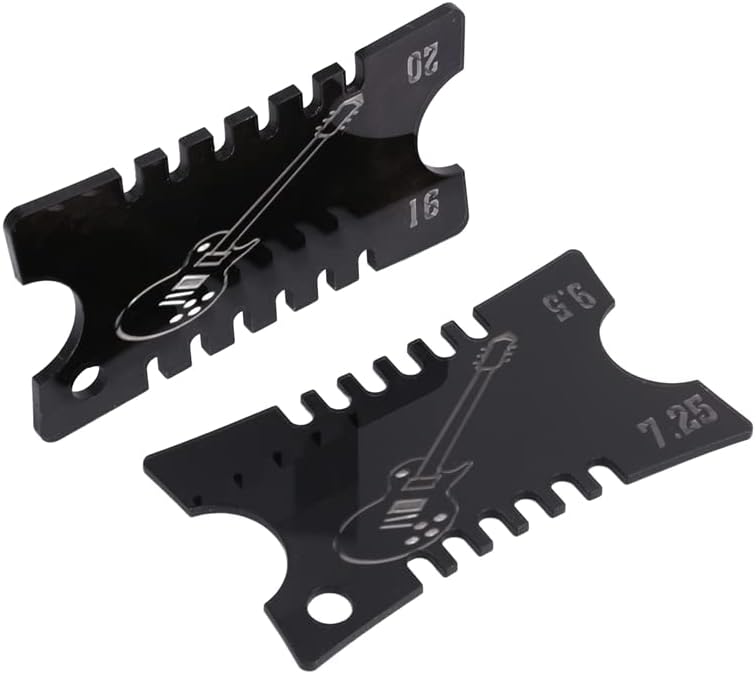 Caratteristica: Dimensioni: il set da 8 pezzi include 4 calibri a raggio e 4 calibri a raggio ampio in raggi da 7,25 pollici, 9,5 pollici, 10 pollici, 12 pollici, 14 pollici, 15 pollici, 16 pollici, 20 pollici. Materiale: realizzato in acrilico in modo che , durevole e ampiamente utilizzato. Strumento di misurazione preciso, conveniente e tascabile. Portatile: utile si desidera controllare una tastiera togliere le corde. È più veloce da usare di qualsiasi righello e rimane parallelo alla tastiera, molto più facile che cercare di un righello perpendicolare a un tasto arrotondato. Si applica a: 7,25 pollici per chitarre elettriche con un relativamente grande o ukulele 9,5 pollici per chitarre elettriche ; 10 pollici per chitarra elettrica ; 12/14/16 pollici per chitarra acustica; 18/20 pollici per chitarre classiche, Adatto per strumenti a corda come chitarra elettronica, basso, chitarra acustica, mandolino, banjo ecc.