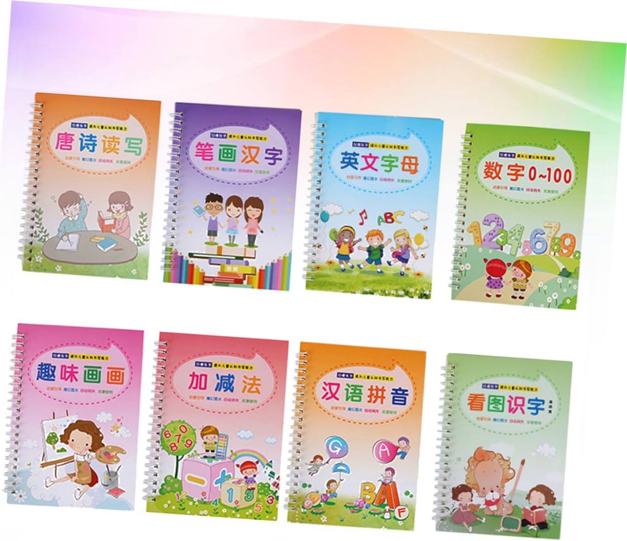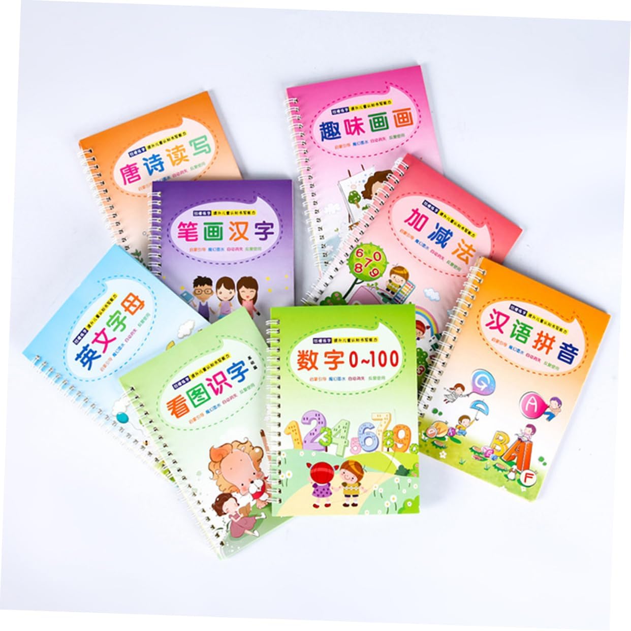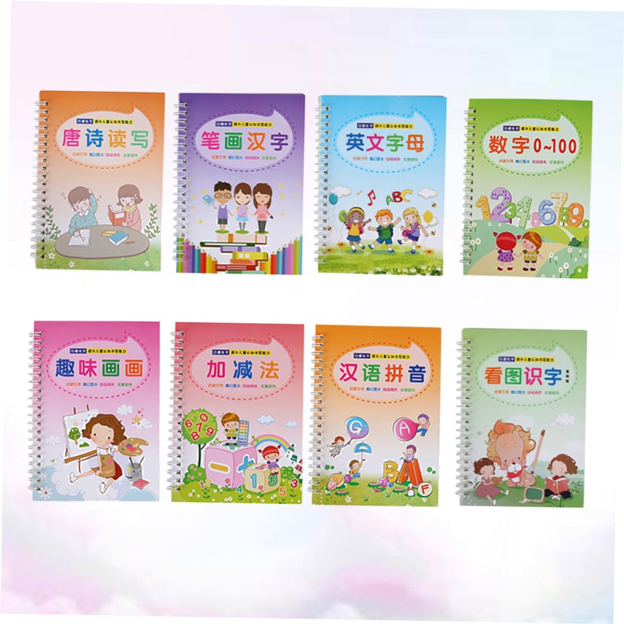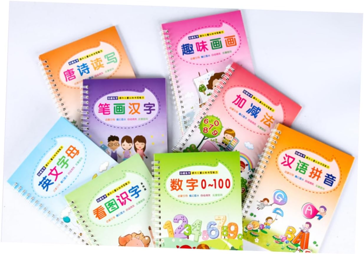 Libro di pratica di scrittura: attività divertenti che danno ai bambini l'apprendimento delle competenze di base necessarie per il successo a scuola. Calligrafia inglese: realizzata in materiale per una scrittura . Quaderno con scanalatura: il set include 8 diversi libri di calligrafia. Strumento per esercitarsi nella scrittura cinese inglese: adatto a principianti e bambini in età prescolare. Scrittura del quaderno: il quaderno creativo in stile cinese e inglese con calligrafia inglese progredisce nella scrittura e nel ricordare la parola.