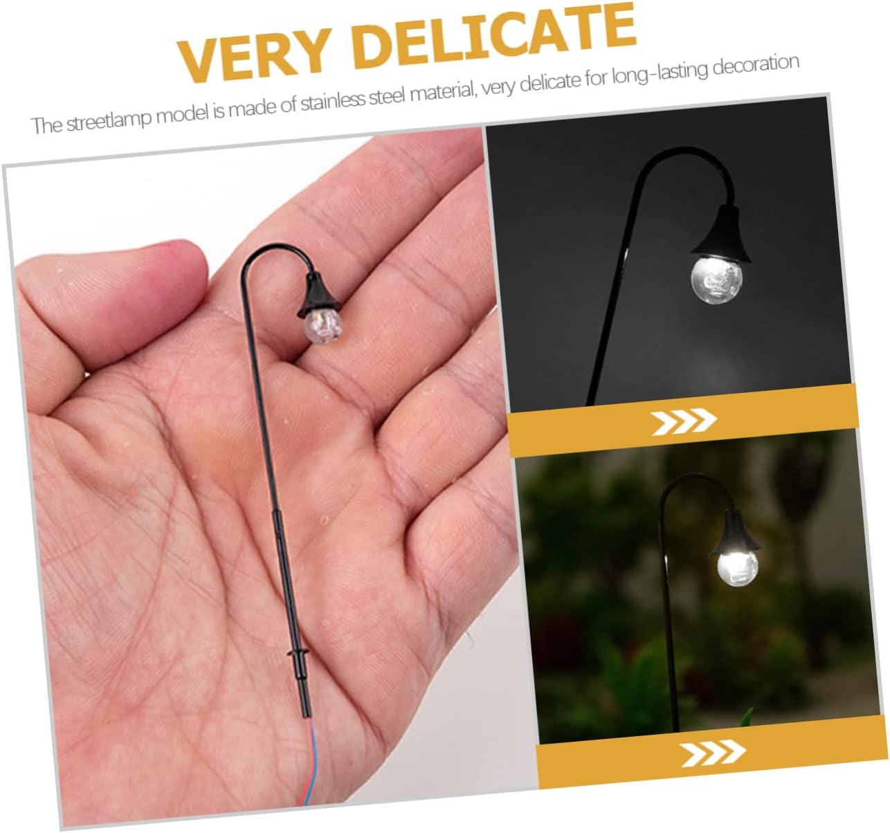 Miniature di lampioni-- ✨✨perfetti per layout di modelli ferroviari e architettonici. può rendere il tuo paesaggio di micromodelli più ricco e ., il modello leggero è molto utile per il layout e la costruzione di modellini di treni, il layout delle stazioni ferroviarie. Mini lampione stradale fai da te: questa lampada in miniatura è ben progettata per il miglior arredamento per il mini da giardino domestico. Lampada da parco in miniatura: generalmente utilizzata per la decorazione della scena del tavolo di sabbia, per aumentare l'effetto del livello della scena del tavolo di sabbia. Mini lampada decorativa-- ✨✨mini lampione in miniatura modello ferroviario treno lampione lanterna per percorso per tavolo di sabbia micro paesaggio casa delle bambole illuminazione del giardino delle fate, posizionalo nella tua mini casa o stanza per dettagli più realistici, rendi la mini casa più affascinante. Piccolo arredamento da giardino: questo modello di lampione in miniatura può essere un ornamento decorativo per la tua mini casa o giardino.