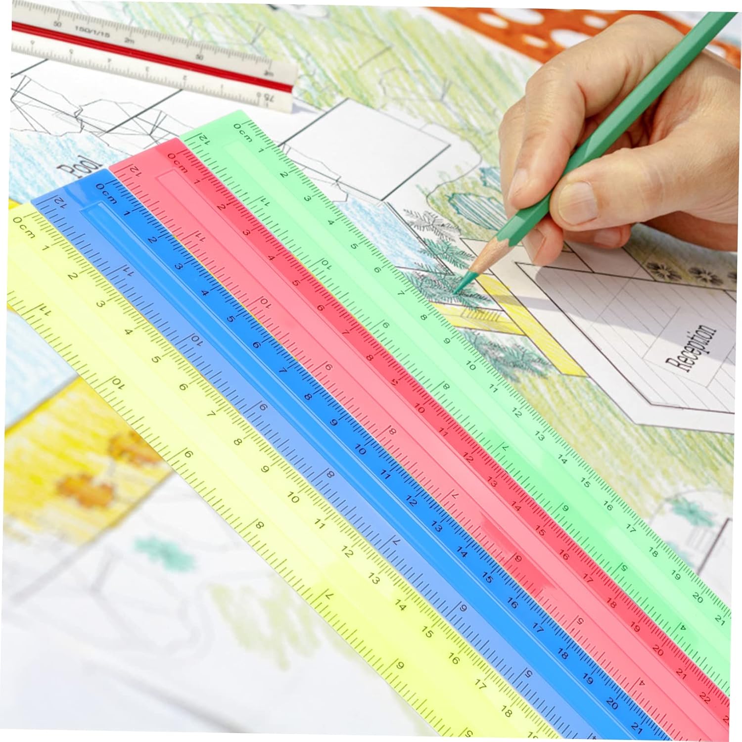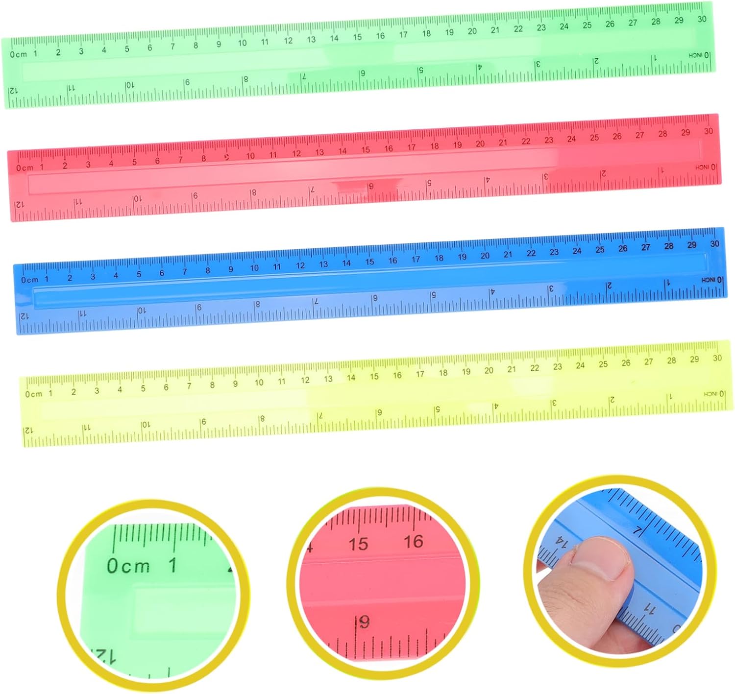 Strumento di misurazione: adatto per la maggior delle attività di misurazione di base in scala, uno strumento pratico di misurazione e disegno per bambini, studenti, insegnanti, artisti, ingegneri, ecc., righelli per la scuola Asta di misurazione: la scala sul righello è stampata in modo chiaro, ad alta resistenza, non facile da rompere, righello dritto Righello dritto in plastica: il nostro righello è un eccellente strumento di supporto per artisti, designer, architetti, ingegneri, studenti e così via, righello da disegno Righelli colorati: leggeri ma robusti, lisci, non rompono né graffiano facilmente le dita, puoi usarli a lungo con sicurezza, righello di misurazione in plastica Righelli scolastici: realizzati in materiali plastici, possono essere utilizzati a lungo termine e offrono praticità, righello standard