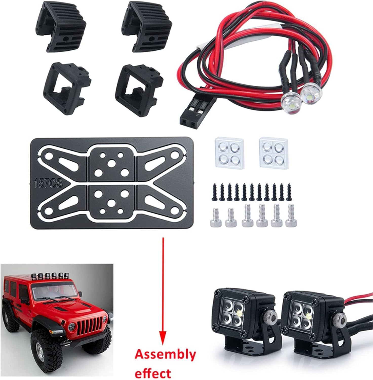 Simulazione dettagliata derivata dal design di un'auto reale. La consegna è incompiuta e richiede ai giocatori di assemblarla da soli. Staffa in materiale metallico, non arrugginisce. La tazza della lampada è realizzata in plastica ABS. Adatto per auto telecomandate 1/10 1/14 1/24 1/8, auto RC fuoristrada TRX4 TRX6 SCX10 D90 e così via.