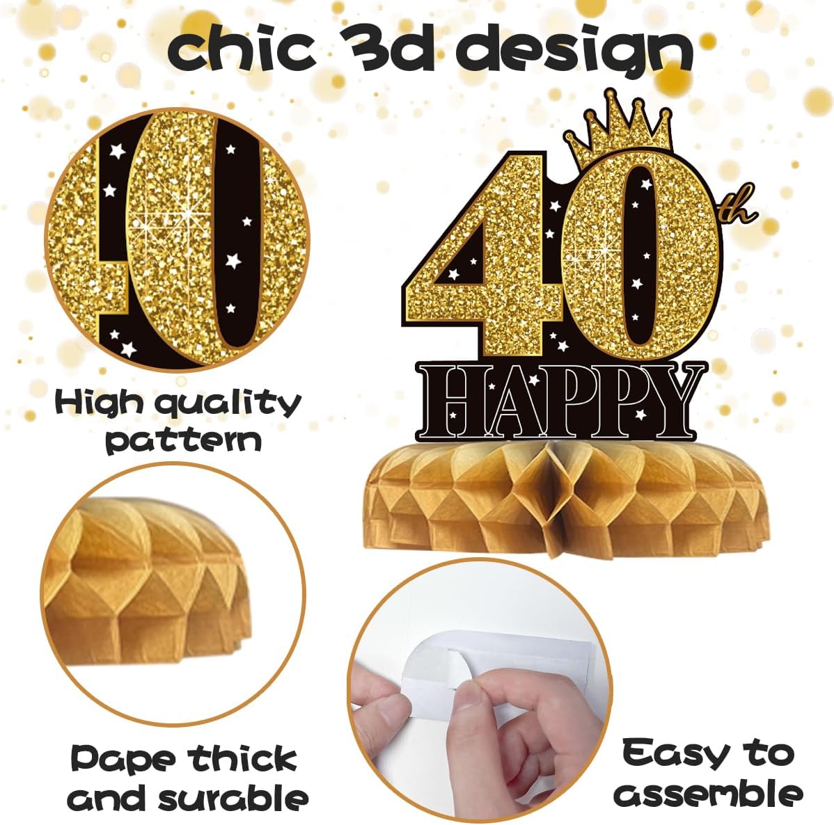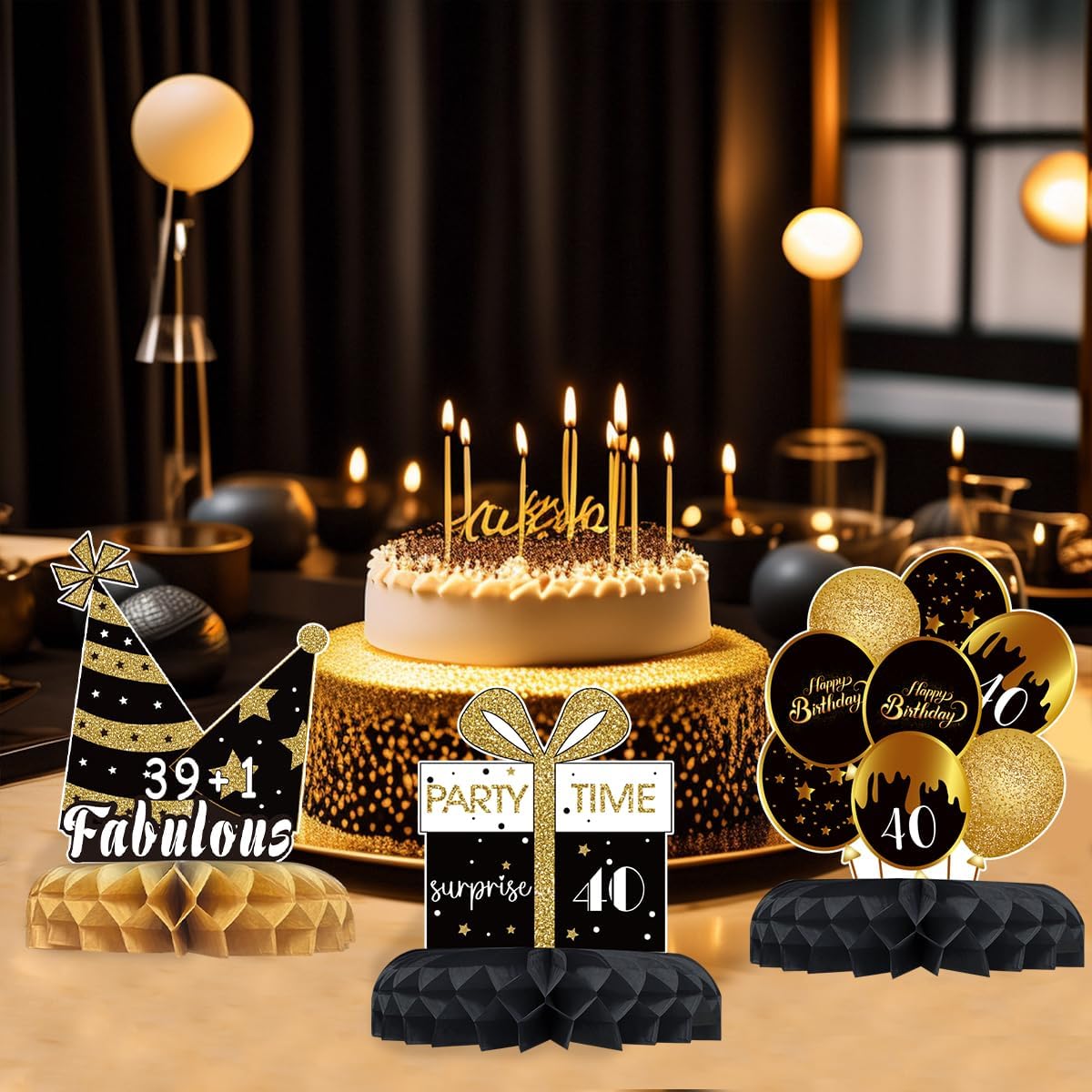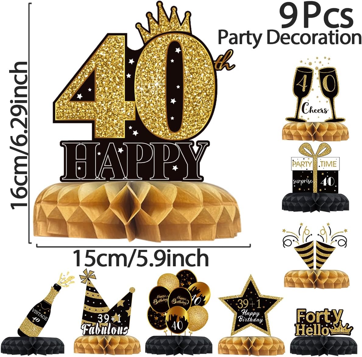 9 Decorazioni per il 40° Compleanno - Centrotavola a Nido d'Ape Neri e Dorati per la Tavola da Festa