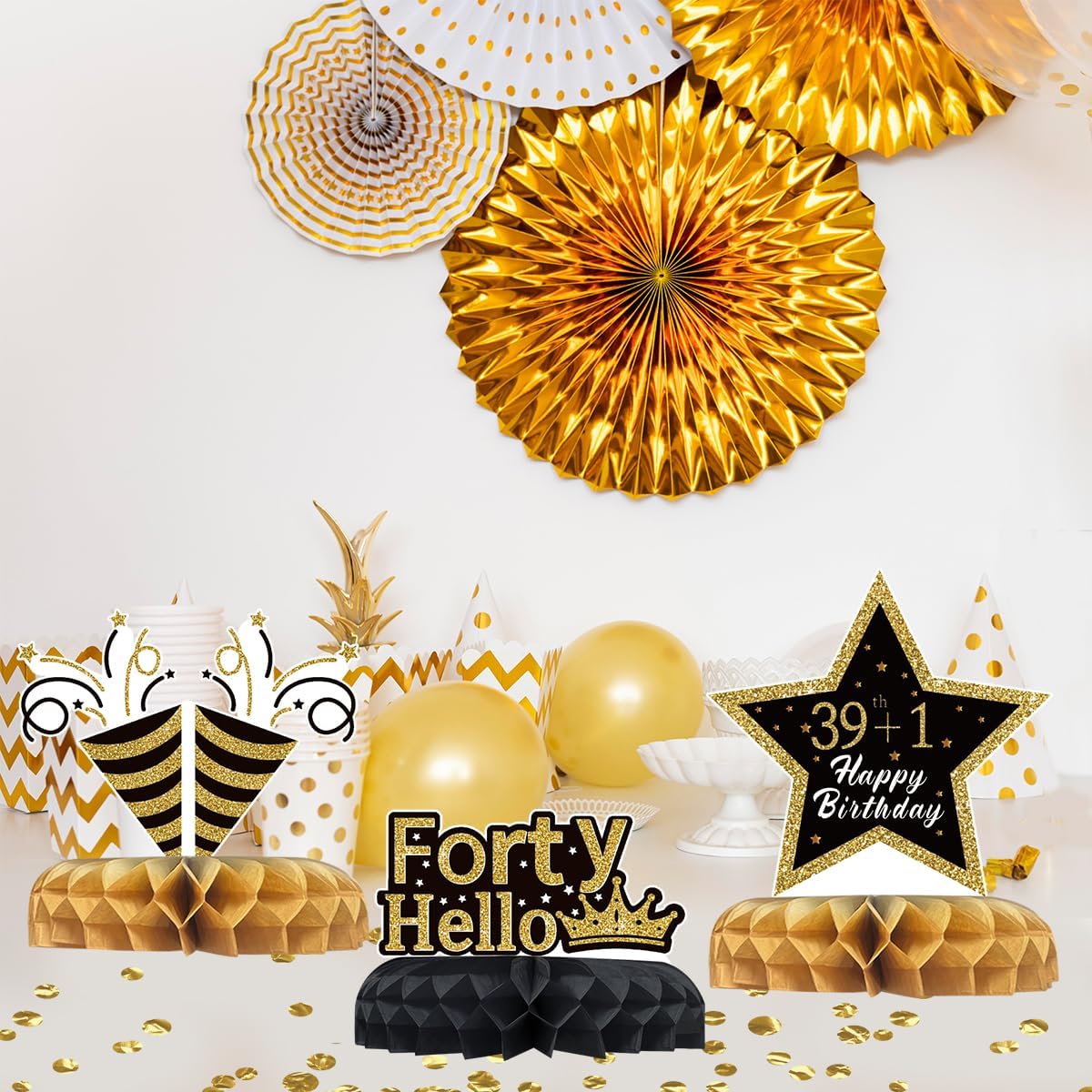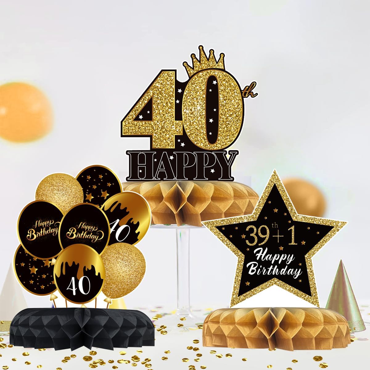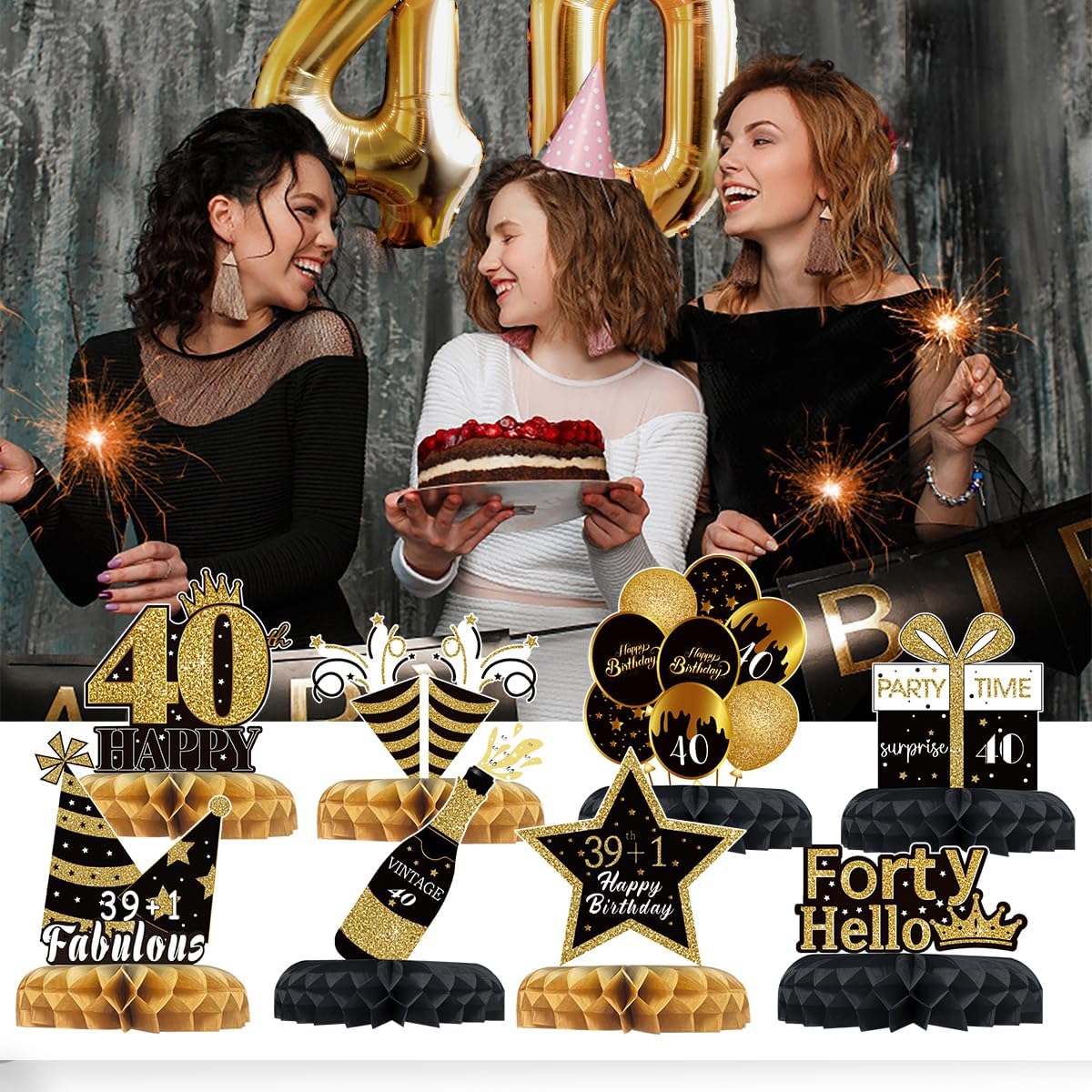 9 Decorazioni per il 40° Compleanno - Centrotavola a Nido d'Ape Neri e Dorati per la Tavola da Festa
