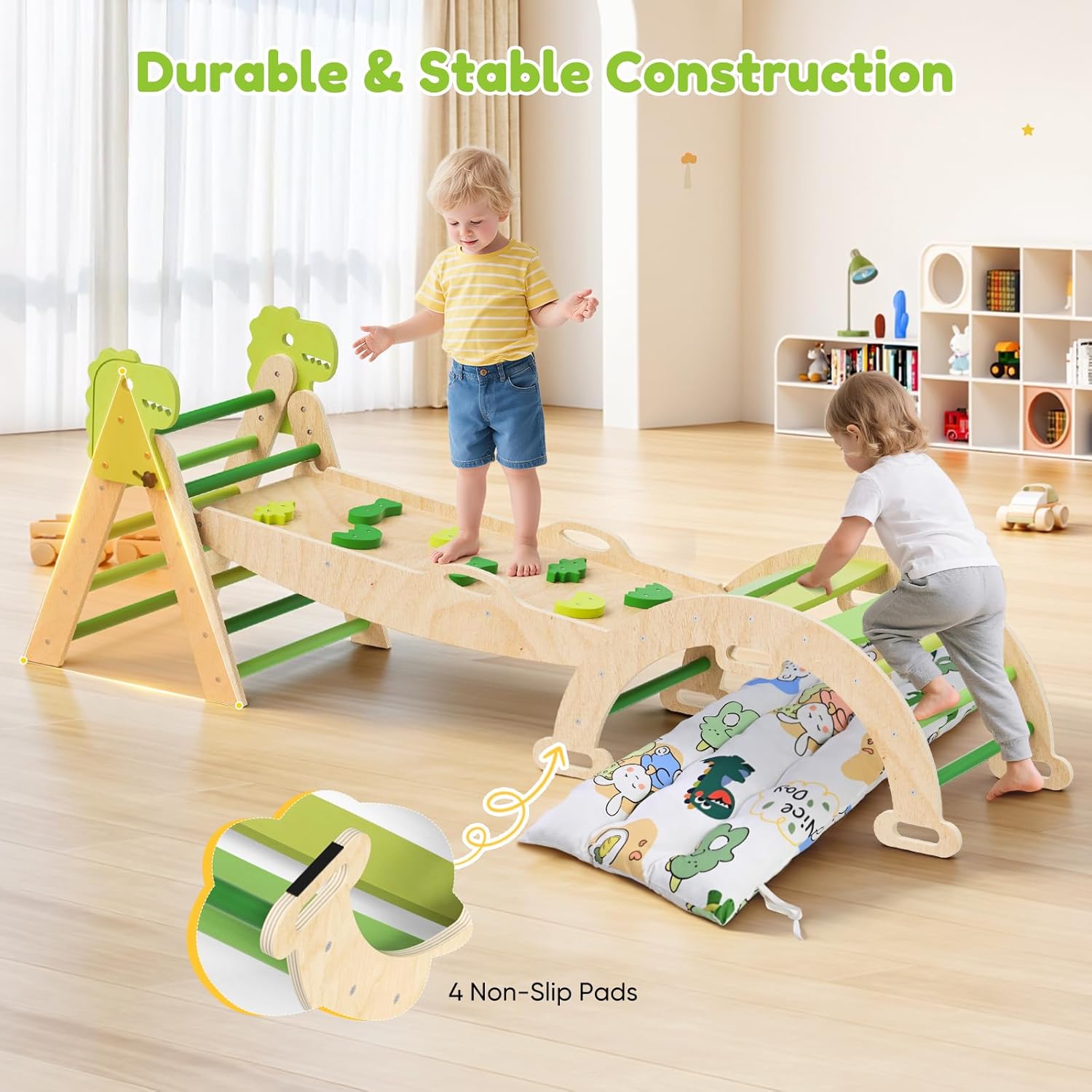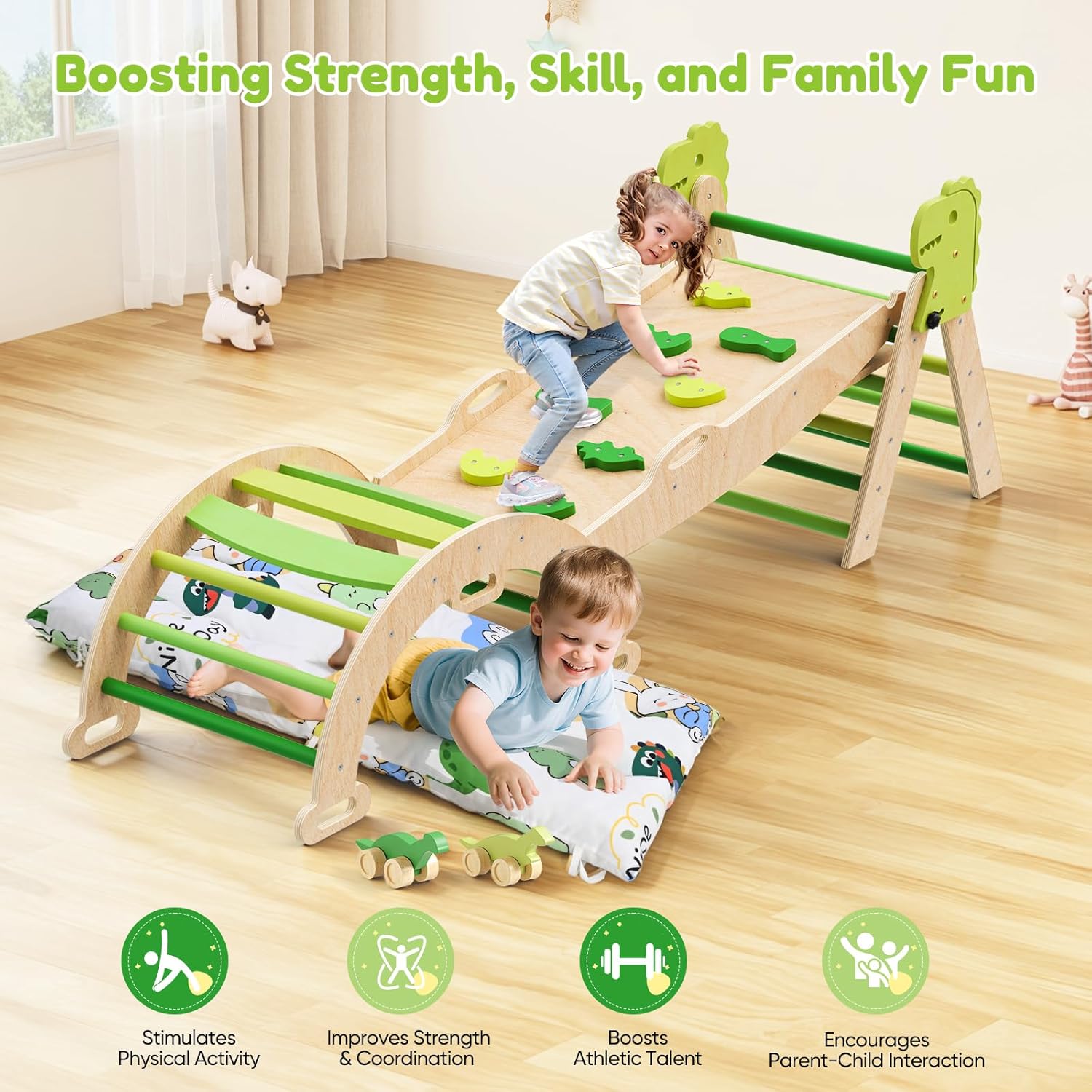 📦[Include e Design] Il set triangolare include: 1 cuscino per seduta, 1 arco, 1 rampa, 1 scala e 2 macchinine in legno. Oltre 9 diverse combinazioni offrono infinite possibilità di gioco. Il tuo bambino può arrampicarsi sull'arco, divertirsi con l'arco oscillante, salire sulla rampa, scivolare, salire sulla scala triangolare, gattonare attraverso l'arco e persino partecipare a gare di macchinine. 🏋[Attrezzo per l'esercizio] La palestra giungla da interno è uno strumento di esercizio indispensabile per i bambini. Dal montaggio del treppiede per l'arrampicata alle diverse modalità di gioco, aiuta il tuo bambino a sviluppare la destrezza fisica e la coordinazione occhio-mano, offrendogli momenti di gioco divertenti. 🔧[Struttura di sicurezza] Il nostro set di mobili da arrampicata triangolare è realizzato in legno di betulla di alta qualità. Una volta assemblato, la struttura robusta offre stabilità e la superficie liscia e senza sbavature crea l'ambiente di gioco interno perfetto per il tuo bambino. 🔰[Certificazione di sicurezza] I nostri giochi da arrampicata in legno per bambini sono realizzati in legno certificato FSC, garantendo sicurezza e tutela dell'ambiente. I nostri giochi da arrampicata per bambini piccoli soddisfano gli standard di certificazione ASTM F963-17 e UE. Il gioco sicuro dei bambini è la nostra massima priorità. 🎁【Regalo speciale】Questo set da arrampicata Montessori è progettato per lo sviluppo della prima infanzia. Progettato per migliorare lo sviluppo fisico, l'equilibrio e la coordinazione, permette al tuo bambino di crescere attraverso il gioco, raddoppiando il divertimento. È il regalo speciale perfetto per il tuo bambino.