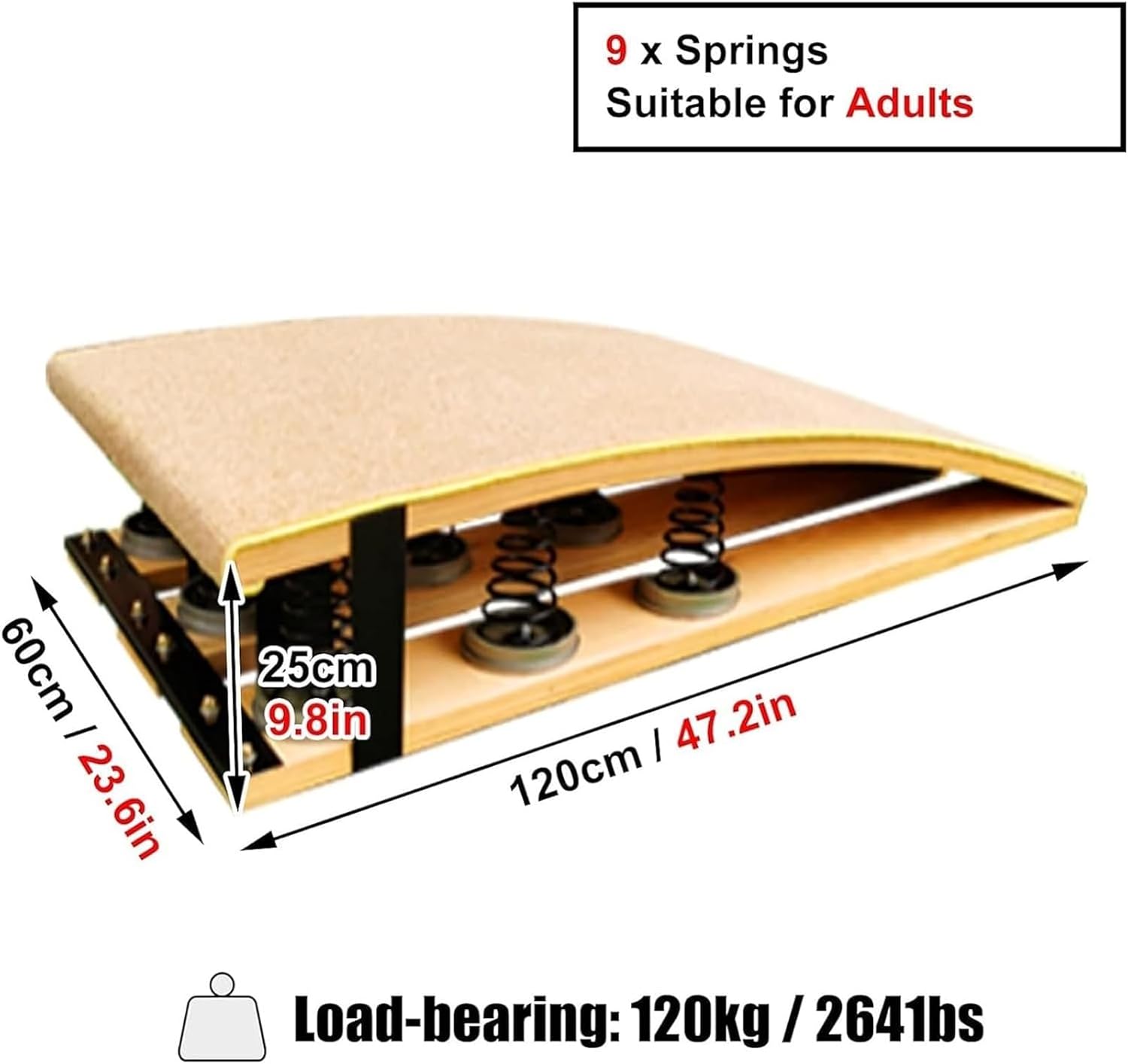 --【Comodo e con elevato rimbalzo È realizzato in legno duro liscio e senza sbavature; rivestito con un tappetino antiscivolo imbottito e una molla in acciaio al manganese ispessita all'interno. --【Supporta l'uso di scarpe e non il comodo tappetino antiscivolo che consente ai piedi di aggrapparsi durante il salto e fornisce anche una superficie confortevole. Non provoca formicolio ai piedi, anche se si è a piedi nudi. --【9 molle in acciaio ad alta resistenza】Il trampolino junior è dotato di 9 molle. Elevata tenacità, elasticità e resilienza delle molle ispessite, sicure e durevoli, reattive e riducono notevolmente l'affaticamento dell'atleta. --【Progettato per adulti】Questo trampolino standard da 120 x 60 x 26 cm (L x P x A) è per adulti. Può sostenere un peso di 90 kg. --【Sports Stepping Stone & Body Rehabilitation Non è solo un attrezzo ginnico utilizzato per migliorare la tecnica di salto a cavallo, la discesa e l'atterraggio, l'arte sportiva e lo stretching. È anche uno strumento medico, per lo stretching prima e dopo l'allenamento, utile per il recupero del corpo da infortuni e dolori a piedi e caviglie.