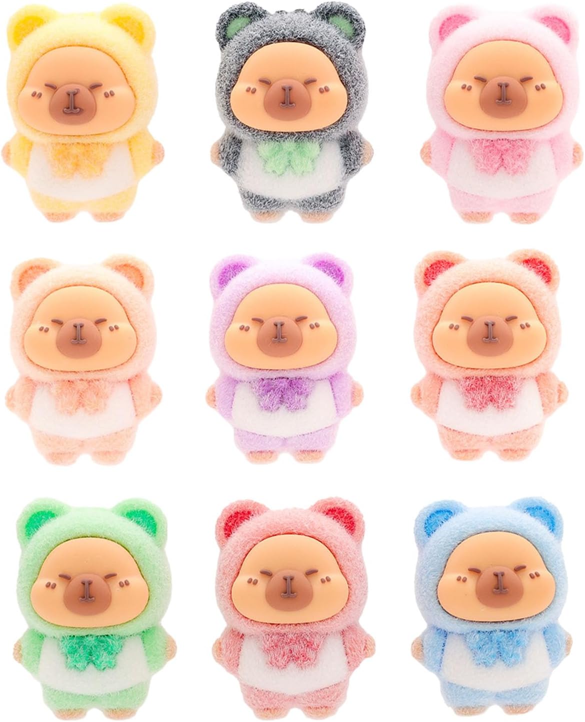 Mostra queste statuette floccate su monitor di computer, librerie o durante feste di compleanno e serate di gioco Ogni decorazione da scrivania da collezione combina il peluche floccato su resina epossidica, offrendo una consistenza vellutata che eclissa il giocattolo rigido Adorabili statuette in miniatura di capibara floccate, con 9 disegni unici, da materiali in resina epossidica morbidi al tatto per regali sicuri o feste Perfetto per famiglie che cercano intrattenimento sicuro per i bambini, collezionisti di decorazioni a tema animali stravaganti e impiegati che desiderano accessori da scrivania stravaganti Questo da funzionale compagno di scrivania antistress a prezioso pezzo decorativo che scintilla gioia in qualsiasi spazio amante degli animali