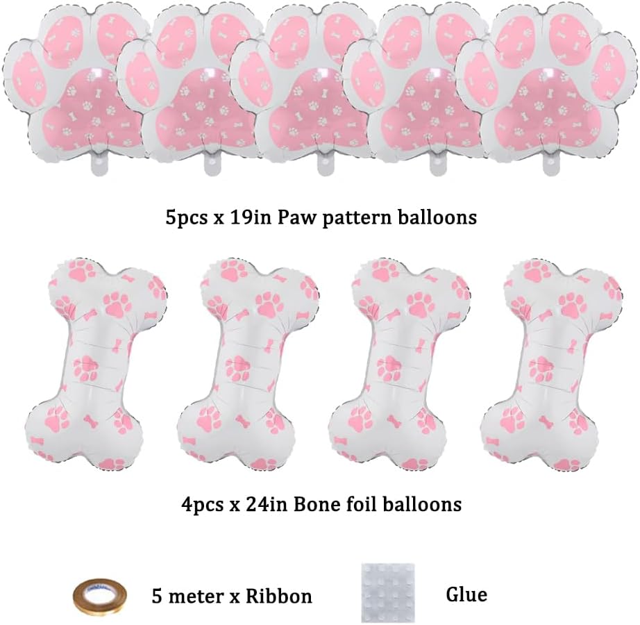 Set completo: la confezione include 5 palloncini a forma di zampa (48 cm), 4 palloncini a forma di osso (61 cm), nastro da 5 metri e punti di colla per un facile montaggio Tema del design: palloncini in lamina rosa e argento con adorabili impronte di zampe e motivi ossei, perfetti per feste a tema animali domestici Dimensioni palloncino: grandi palloncini a forma di osso da 61 cm abbinati a disegni di zampe da 48 cm creano un display accattivante Facile da montare: include tutti i materiali necessari per l'installazione: palloncini, nastro decorativo e punti di colla adesivi Decorazione per feste: ideale per feste di compleanno per cani, feste di adozione di animali domestici o eventi clinici veterinari con motivi coordinati di zampe e ossa