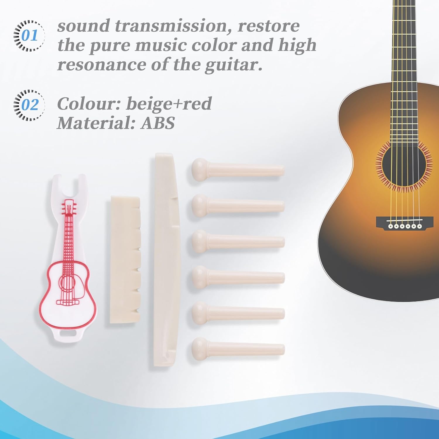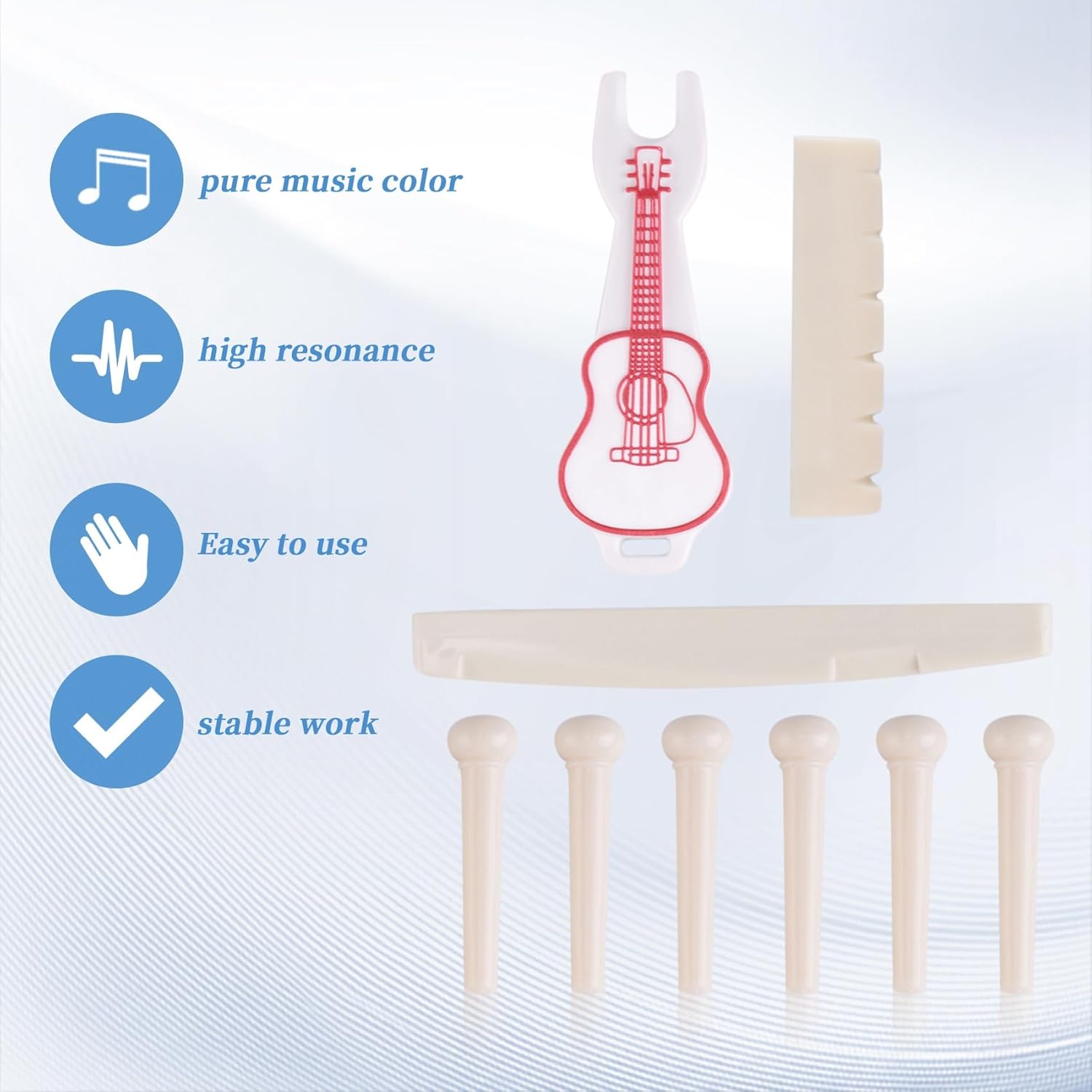 [DIMENSIONI STANDARD] per chitarra acustica: 1,73 x 0,39 x 0,28 pollici, ponte per chitarra: 2,87 x 0,51 x 0,35 pollici sono pre-scanalate e si adattano alla maggior parte delle chitarre. [I MIGLIORI AUGURI] Spero che i nostri prodotti possano servire meglio le persone che la musica e offrire loro prodotti più favorevoli e durevoli, augurandogli sempre meglio. [QUALITÀ DEL SUONO ECCELLENTE] Utilizzando materiale ABS estremamente duro e di alta qualità, stampaggio in un unico pezzo, con una trasmissione del suono , ripristina il colore della musica e l'alta risonanza della chitarra. [AMPIAMENTE UTILIZZATO] Può essere applicato a chitarra classica elettrica acustica, chitarra folk, basso, mandolino, banjo e ukulele.