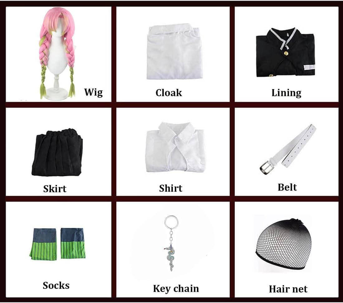 Descrizione prodotto Specifiche tecniche: Nome del prodotto: costume cosplay Anime Demon Slayer Kanroji Mitsuri Personaggi del gioco: Kanroji Mitsuri Materiale: tessuto di poliestere. Stile: gioco di ruolo. Taglia: S, M, L, XL, XXL. Adatto per: donne e ragazze. Genere: da donna. Contenuto della confezione: Parrucca, mantello, fodera, gonna, camicia, cintura, calzini, portachiavi, retina per capelli. Se avete domande sul prodotto o sulle dimensioni, non esitate a contattarci. Siamo felici di aiutarti. Avviso di sicurezza NO