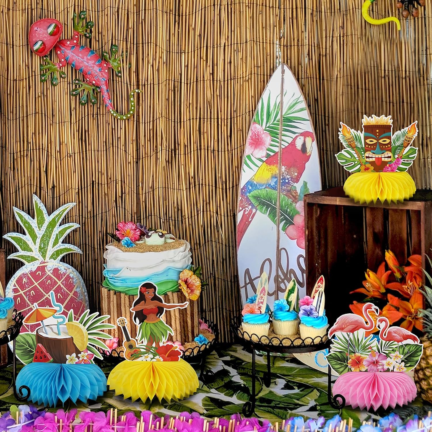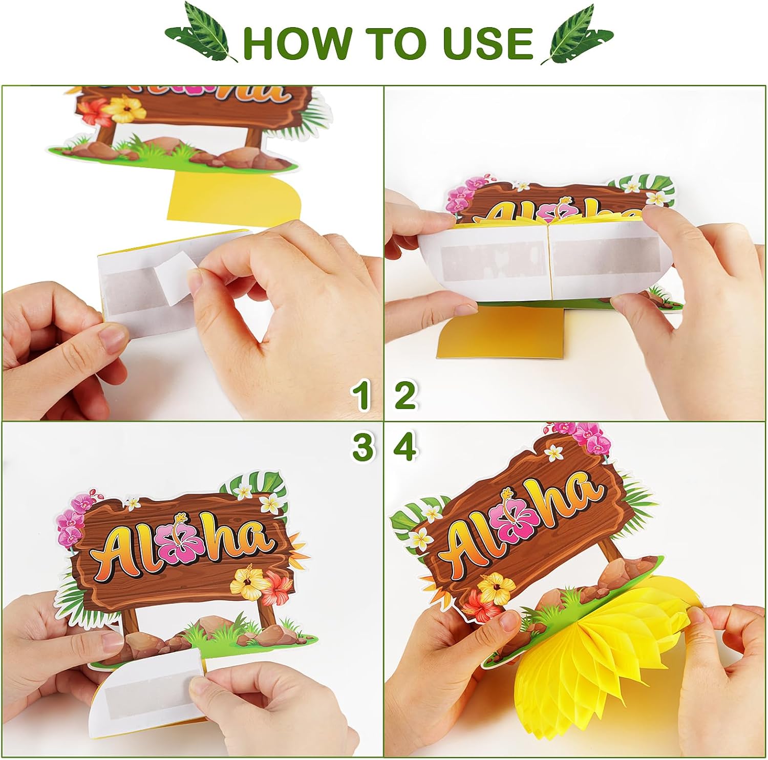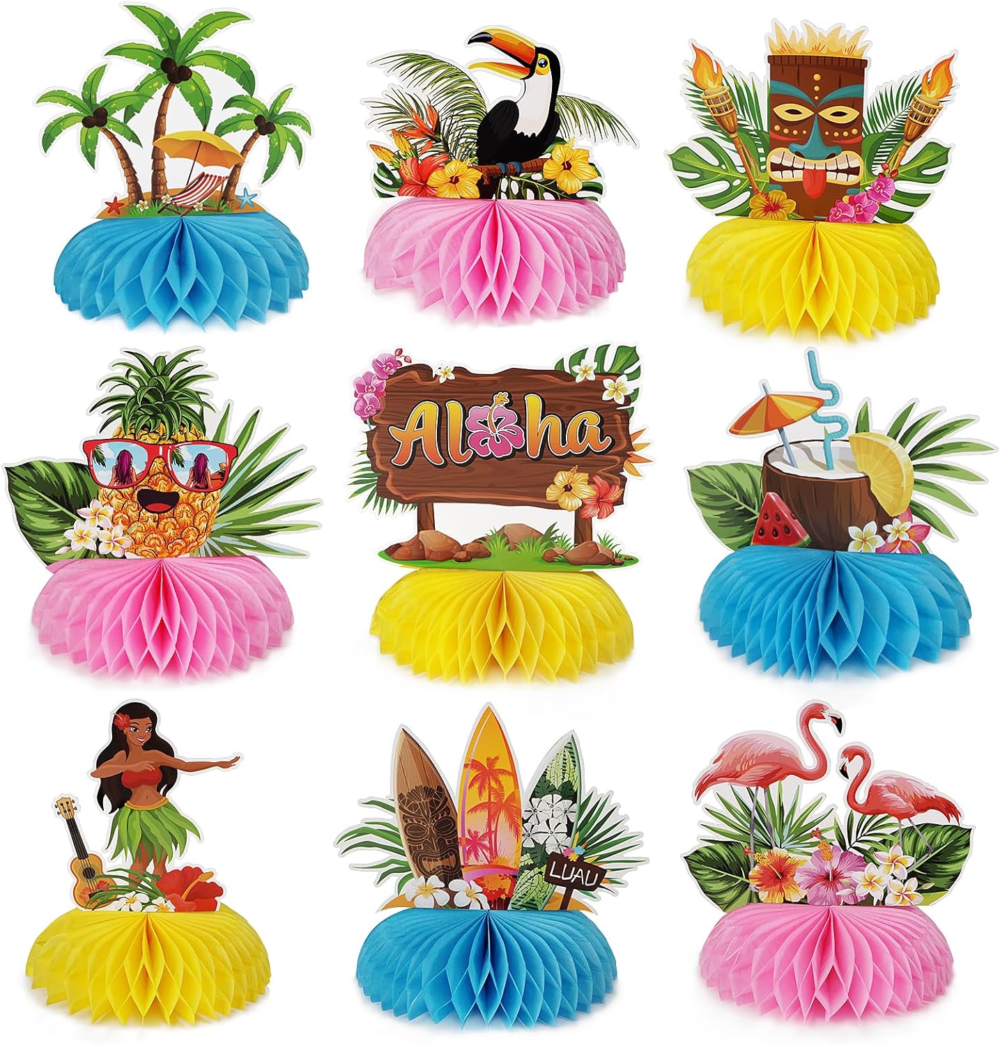 Questo pacchetto include 9 pezzi di decorazioni per la tavola a nido d'ape. Queste decorazioni sono realizzate con carta di alta qualità, fare riferimento alla foto per le dimensioni concrete. Tutte queste decorazioni sono multicolori, sul tema delle Hawaii, elementi classici come Aloha, albero di cocco, fenicottero creano un'atmosfera calda. Facile da usare: riceverai il prodotto piegato, devi solo aprirlo e incollarlo, questa piccola decorazione potrà stare saldamente sul tuo tavolo. Adatto per decorazioni da tavola, feste tropicali, feste in spiaggia, feste alle Hawaii, ecc.