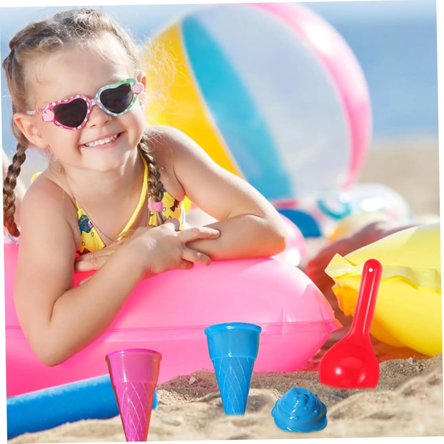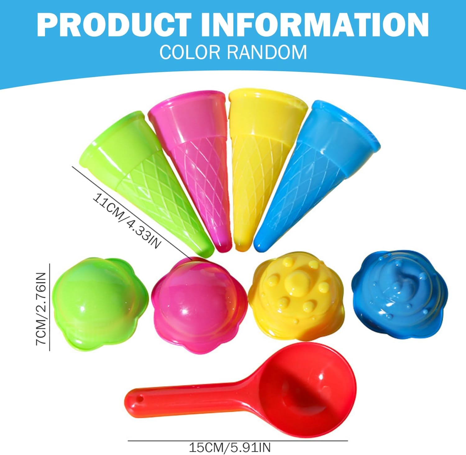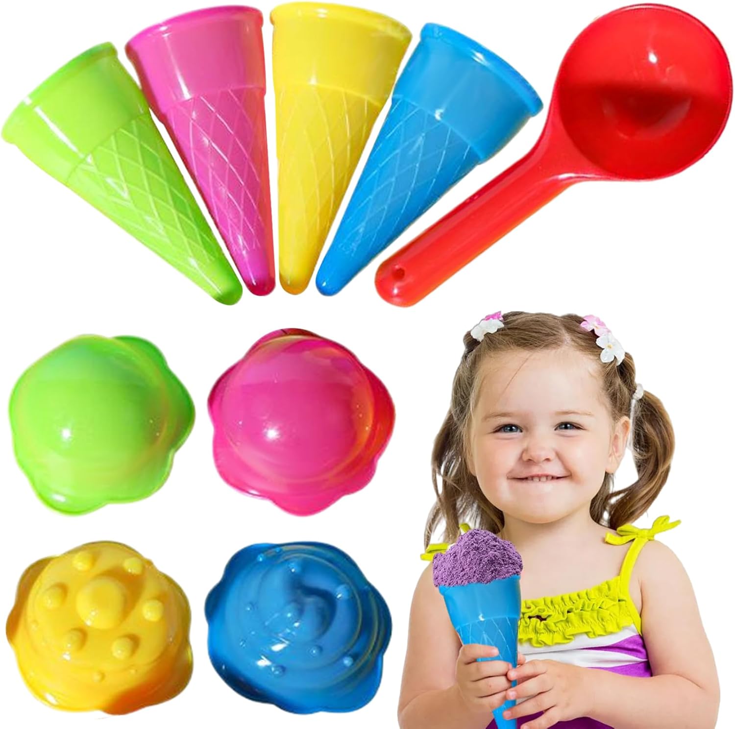 Set gelato completo: il set da 9 pezzi comprende coni gelato, un cucchiaio e un coperchio, offrendo a tuo figlio tutto ciò di cui ha bisogno per creare le proprie creazioni di ghiaccio con la sabbia. Colorato e divertente: l'assortimento casuale di colori vivaci attirerà l'attenzione dei bambini e incoraggerà il gioco creativo, rendendo questo set un fantastico giocattolo da spiaggia. ROBUSTO E SICURO: Realizzato in plastica atossica di qualità, questo set è sicuro per i bambini e può resistere ai rigori del gioco all'aperto. Portatile e facile da pulire: le parti in plastica leggera sono facili da trasportare in spiaggia o al parco e possono essere risciacquate rapidamente per la prossima divertente giornata di gioco. Incoraggia l'immaginazione: il tuo bambino può impegnarsi in giochi di ruolo e fantasiosi mentre sviluppa le capacità motorie, rendendo questo set perfetto per l'apprendimento creativo.