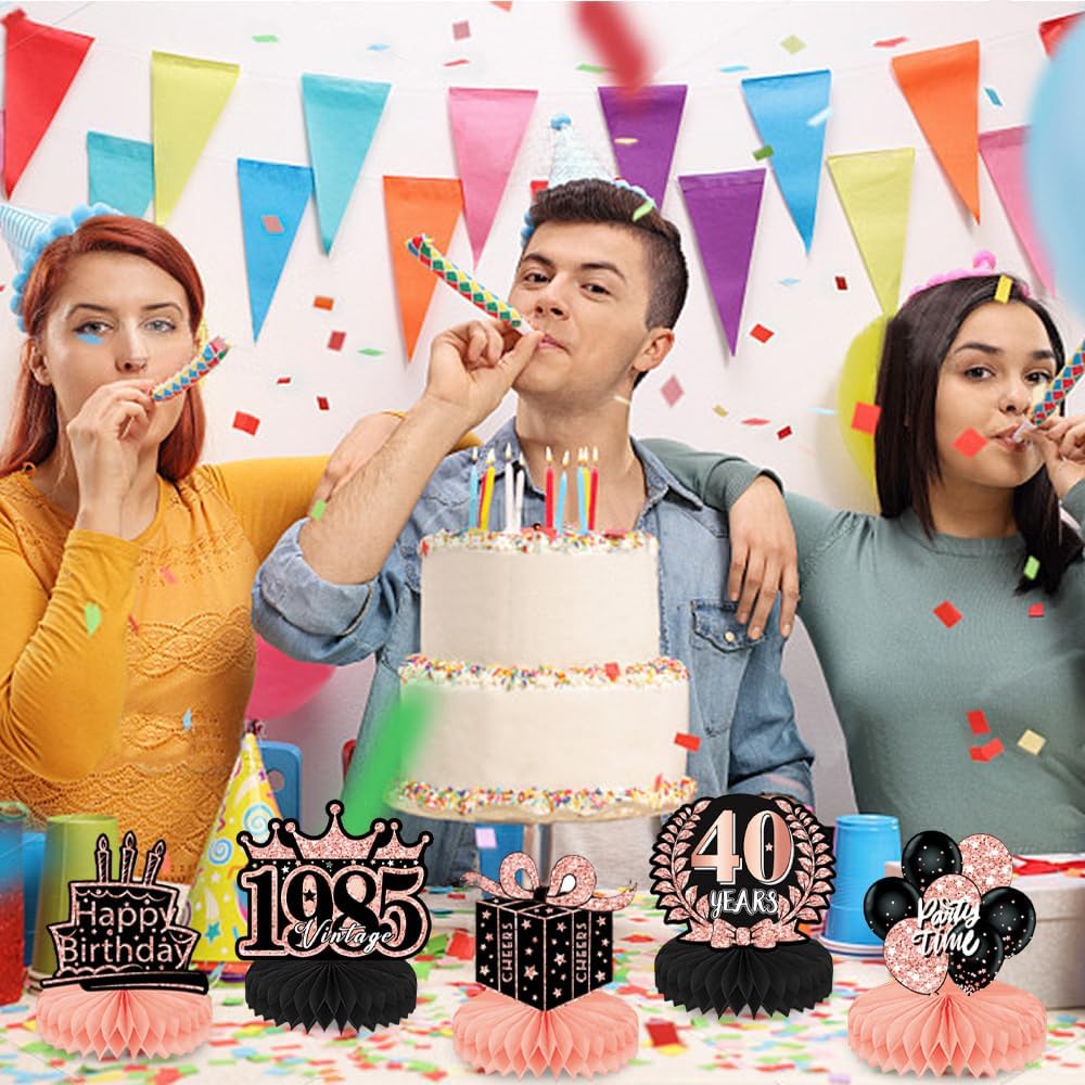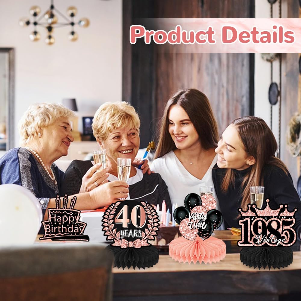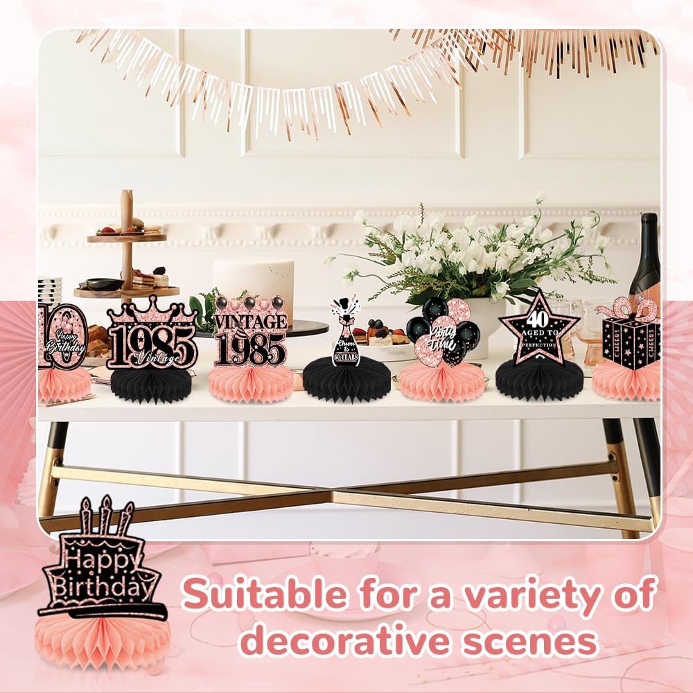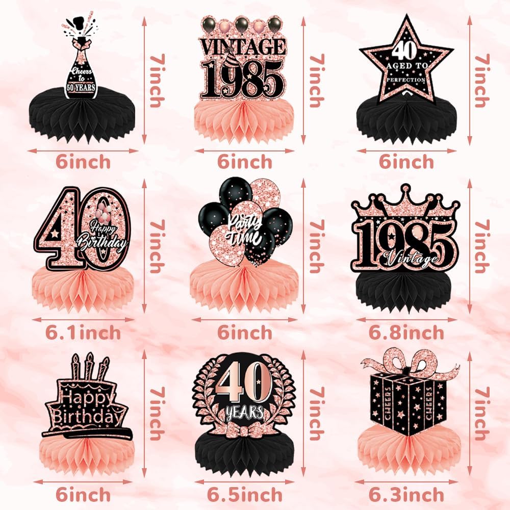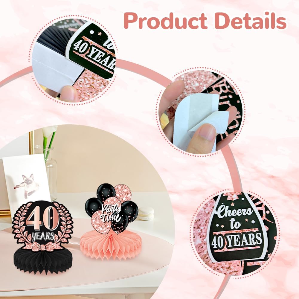 【Materiale】:Il decorazioni compleanno 40 anni è realizzato in cartone di alta qualità,con stampa chiara e non sbiadisce facilmente.Robusto,inodore,leggero e resistente 【40 Anni Decorazioni 】:Vari modelli di compleanno come scatole regalo,palloncino,torte,cappelli,ecc.Aggiungono all'atmosfera festosa.Ottimo per decorare la tua festa di compleanno 【Design Tridimensionale 3D】:La compleanno 40 anni donnautilizza un design di stampa fronte-retro e una romantica combinazione retrò nero e rosa per offrire un forte impatto visivo 【Ampia Applicazione】:Il kit 40 anni compleanno non è adatto solo per la decorazione della festa,ma può anche essere combinato con palloncini per decorare tavoli da torta,pareti,soffitti,tovaglie,case 【Facile da Montare】:Ogni decorazioni tavolo 40 anni donna ha un'area per assemblare il nido d'ape.Inizia staccando l'accessorio a nido d'ape,quindi incolla la decorazione a nido d'ape sull'area fissa del cartoncino