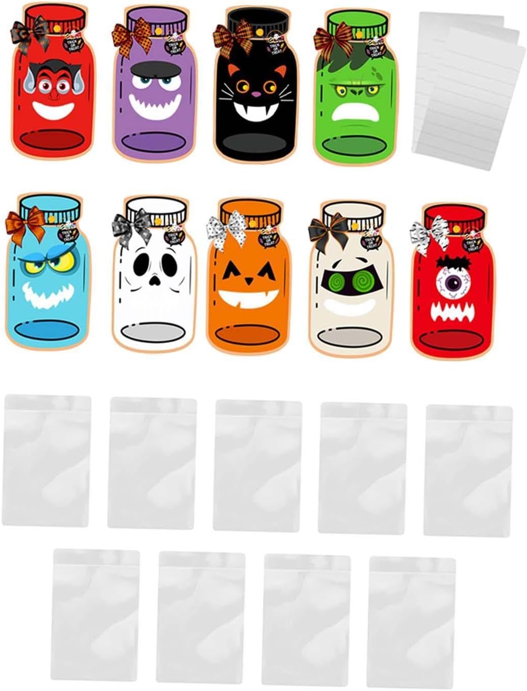 【Qualità Premium】: Realizzati in carta di qualità. Questi sacchetti regalo di Halloween per bambini sono resistenti agli strappi e adatti a contenere caramelle, piccoli giocattoli o altri dolcetti speciali. 【Per 】: Questi sacchetti regalo con carte regalo presentano una deliziosa varietà di personaggi come zucche e fantasmi, un'aggiunta fantastica alle vostre feste di Halloween. Adatti per feste di o come bomboniere. 【Bomboniere di Halloween che si distinguono】: Se cercate dolcetti di Halloween creativi e divertenti che si distinguano dagli altri, questi biglietti e sacchetti di carta sono un must. Ottimi come bomboniere per le feste di Halloween dei bambini, per lo scambio di regali in classe, per eventi scolastici di Halloween, per per insegnanti e per altri eventi festivi. 【Sacchetti per caramelle e biglietti di Halloween】: Il nostro set di sacchetti per dolcetti di Halloween include: 9 biglietti di carta di Halloween, 9 sacchetti per caramelle (caramelle non incluse), 1 foglio (9 pezzi) di nastri adesivi. Ideale per sacchetti regalo di Halloween o bomboniere. 【Regali creativi di Halloween deliziosamente divertenti】: Questi adorabili biglietti di auguri in barattolo di vetro misurano circa 15x11 cm / 5,9x4,33 pollici, abbinati a sacchetti portaoggetti (12x8 cm / 4,72x3,15 pollici) per contenere caramelle, cioccolatini, biscotti, , o altri piccoli regali. Basta attaccarli sul retro dei biglietti con del nastro adesivo! Carini e facili da assemblare.
