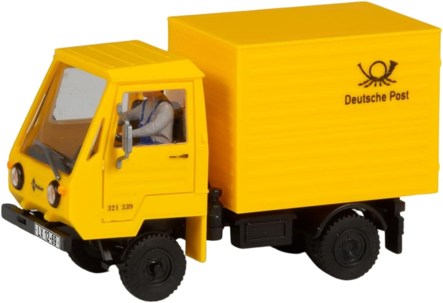 - Scala: H0 (1:87) - Ideale per tutti i modelli H0 - Tipo di modello: IFA W50 LA/3SK ribaltabile a tre lati con cabina di trasporto - Colore: verde chiaro con verniciatura fedele all'originale - Materiale: plastica di alta qualità - Riproduzione funzionale del cassone ribaltabile a tre lati - Progettazione dettagliata di carrozzeria, cabina e ruote