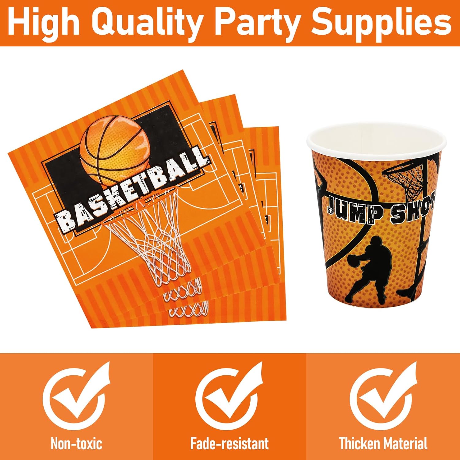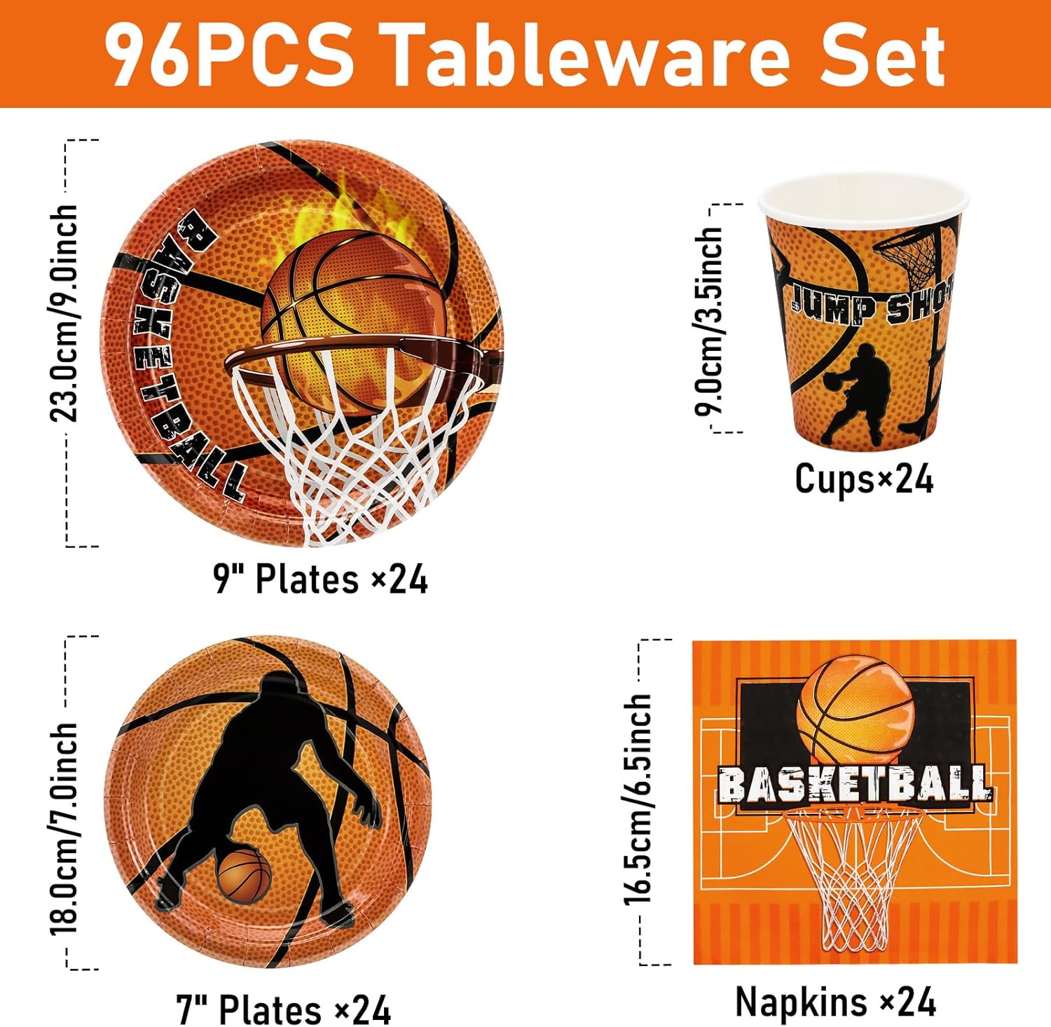 Set di stoviglie per 24 ospiti: riceverete un set di stoviglie per feste di basket che possono servire 24 ospiti. Include 24 piatti di carta da 9", 24 piatti di carta da 7", 24 bicchieri di carta, 24 tovaglioli di carta da 6,5", perfetti per feste sportive e feste di compleanno. Materiale premium: il set di stoviglie è realizzato al 100% con materiali di qualità alimentare. Tutti i tovaglioli di carta sono realizzati in carta di alta qualità, atossica, inodore, resistente al calore, spessi e abbastanza resistenti da contenere cibi e dessert. I colori sono ben stampati e non sbiadiscono per offrirti una festa perfetta. Adatto per la maggior parte delle occasioni: questi pacchetti per feste a tema sono un'aggiunta perfetta alla maggior parte delle occasioni, come feste di compleanno, laurea, anniversario, baby shower, vacanze, celebrazioni e così via. Cattureranno facilmente gli occhi delle persone e li renderanno felici. Goditi la tua festa: i piatti, le tazze e i tovaglioli possono risparmiare tempo di pulizia grazie al design usa e getta, basta gettarli nella spazzatura dopo l'evento. Puoi passare più tempo a goderti la festa e accompagnare la tua famiglia e gli amici. Design perfetto: con un design classico e nuovo, possono essere utilizzati non solo come stoviglie per la festa di compleanno e baby shower, ma anche come sfondo fotografico. Aggiungi un'atmosfera amorevole e vivace a qualsiasi festa. Piatti di carta, bicchieri e tovaglioli sono completamente stampati con elementi di dinosauro. Lasciaci avere una festa felice!