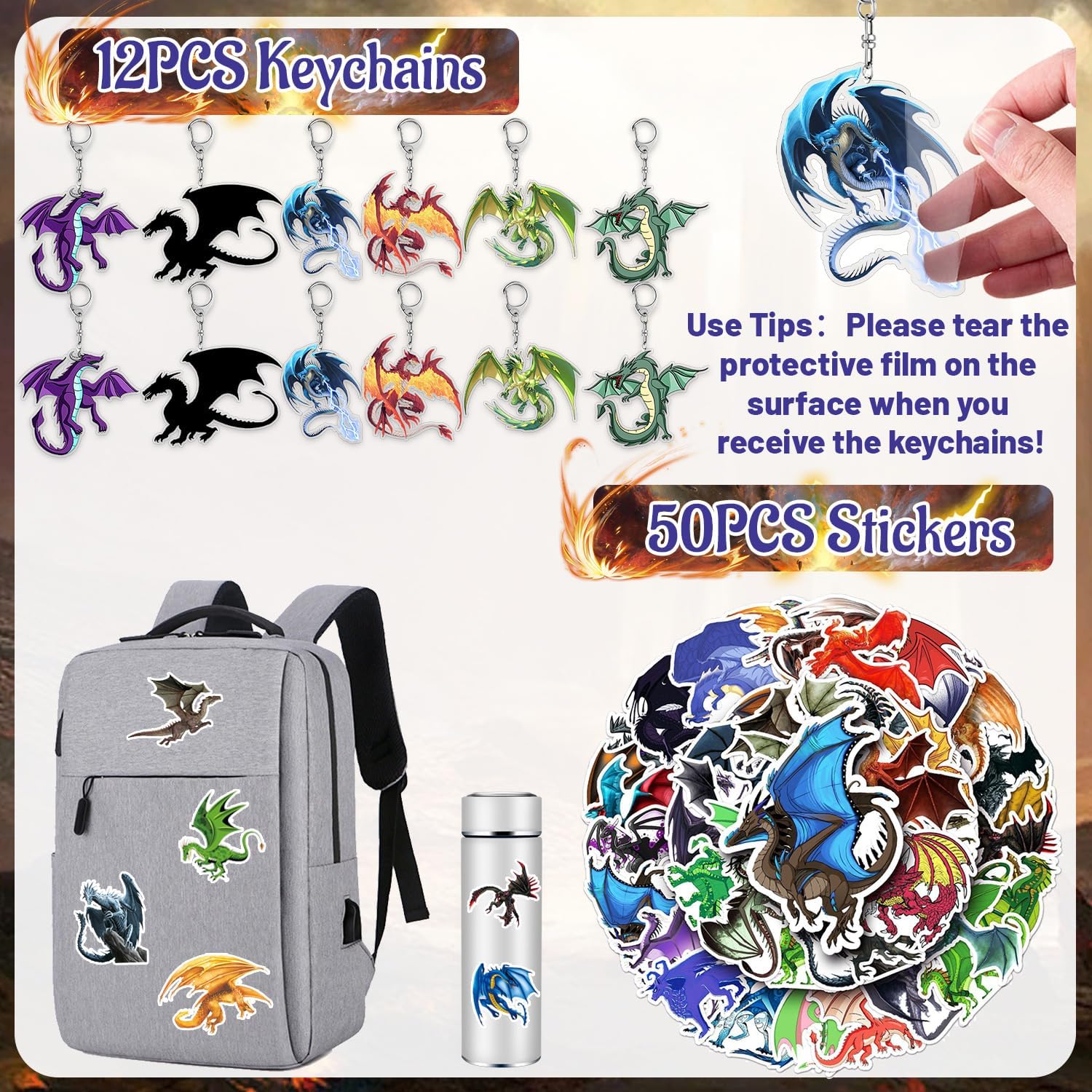 【Utilizzo】I portachiavi Dragon sono realizzati principalmente in materiale acrilico di alta qualità, copriamo la parte anteriore e posteriore dei portachiavi in acrilico con uno strato di pellicola di plastica per proteggere l'acrilico dai graffi di altri oggetti e dal comprometterne l'aspetto. Si prega di utilizzare uno strumento per rimuovere la pellicola protettiva sulla superficie quando si riceve il prodotto! Bomboniere a tema drago: le bomboniere per compleanno drago includono 12 braccialetti schiaffo, 12 spille per bottoni, 12 portachiavi, 50 adesivi e 12 fogli di tatuaggi temporanei. Ha un design unico con bomboniere drago in diversi stili, draghi sputafuoco, draghi sparafulmini, draghi impennati, draghi ruggenti rendono la tua festa indimenticabile Forniture per compleanno drago: le forniture per feste drago sono realizzate con materiali amichevoli e di alta qualità, spille e braccialetti schiaffo sono stampati in HD con motivi chiari e colori vivaci. I portachiavi Drago sono realizzati principalmente in materiale acrilico di alta qualità, non facile da deformare o rompere, colori vividi e vibranti, eleganti e divertenti. 【Organizza una festa con il drago di fuoco】: i regali per le feste dei dinosauri draghi sono adatti per una varietà di feste, come feste di compleanno a tema drago, festa di compleanno del drago di fuoco, riunioni di amici, festa di compleanno per ragazzi, baby shower, come regali per i fan dei draghi, le fantastiche immagini del drago possono attirare l'attenzione dei bambini e stimolare l'immaginazione! 【Occasione adatta】 I braccialetti con dinosauro drago sono perfetti per feste a tema drago, feste, ornamento colorato per braccialetti a schiaffo per giocattoli drago, riempitivo per scatole regalo, come regalo da condividere con i tuoi amici, anche premi di carnevale, regali in classe.