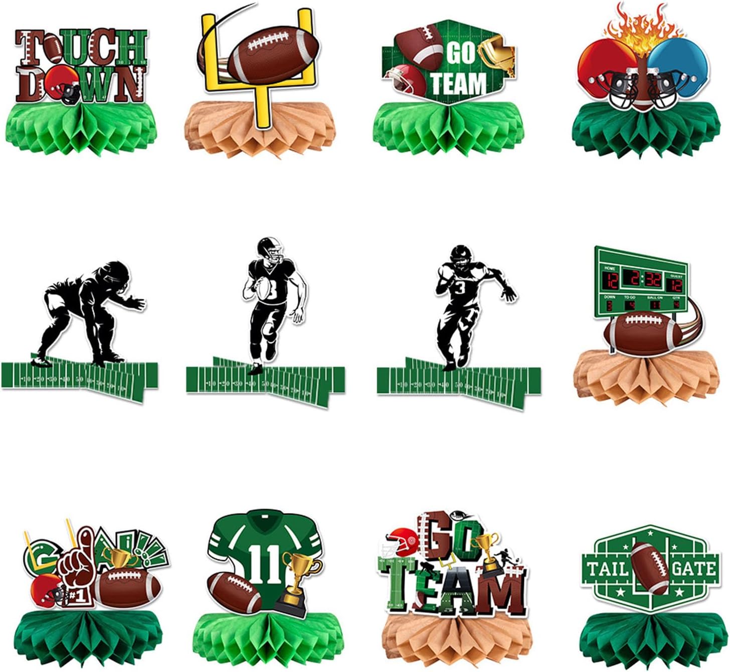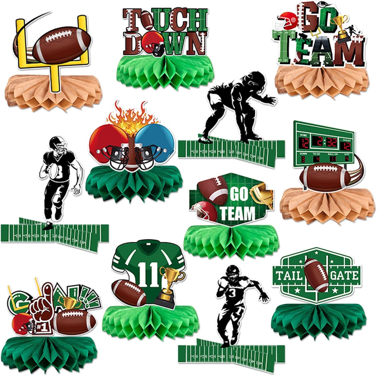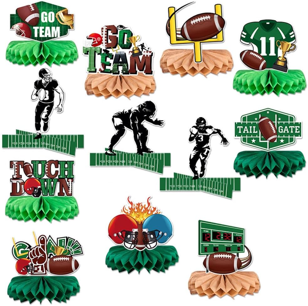 Per feste di compleanno, celebrazioni di nozze, riunioni di vacanza ed eventi sia interni che esterni, queste decorazioni servono come decorazioni funzionali o contenitori per alimenti Migliora l'ambiente della tua festa con il nostro set di 9 decorazioni di carta a tema partite di calcio, presentano un design unico ed elegante che si distingue in qualsiasi evento Adatto per organizzatori di feste, casalinghe e organizzatori di eventi che desiderano aggiungere un tocco creativo ai loro raduni Realizzate in carta robusta, queste decorazioni sono disponibili in una varietà di colori vivaci, rendendole adatte a più temi e portatili per occasioni future Facili da montare e portatili, queste decorazioni sono un must per chiunque cerchi di elevare le proprie decorazioni per feste