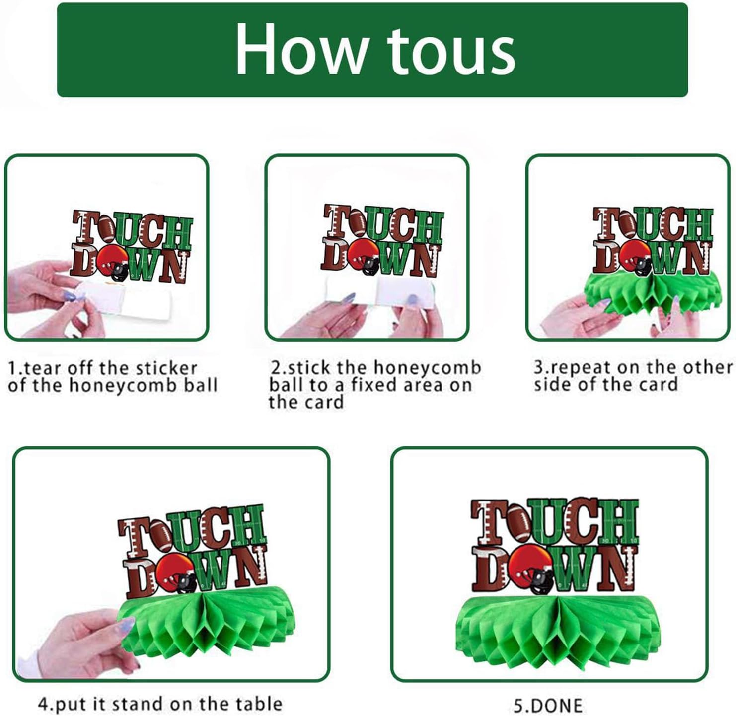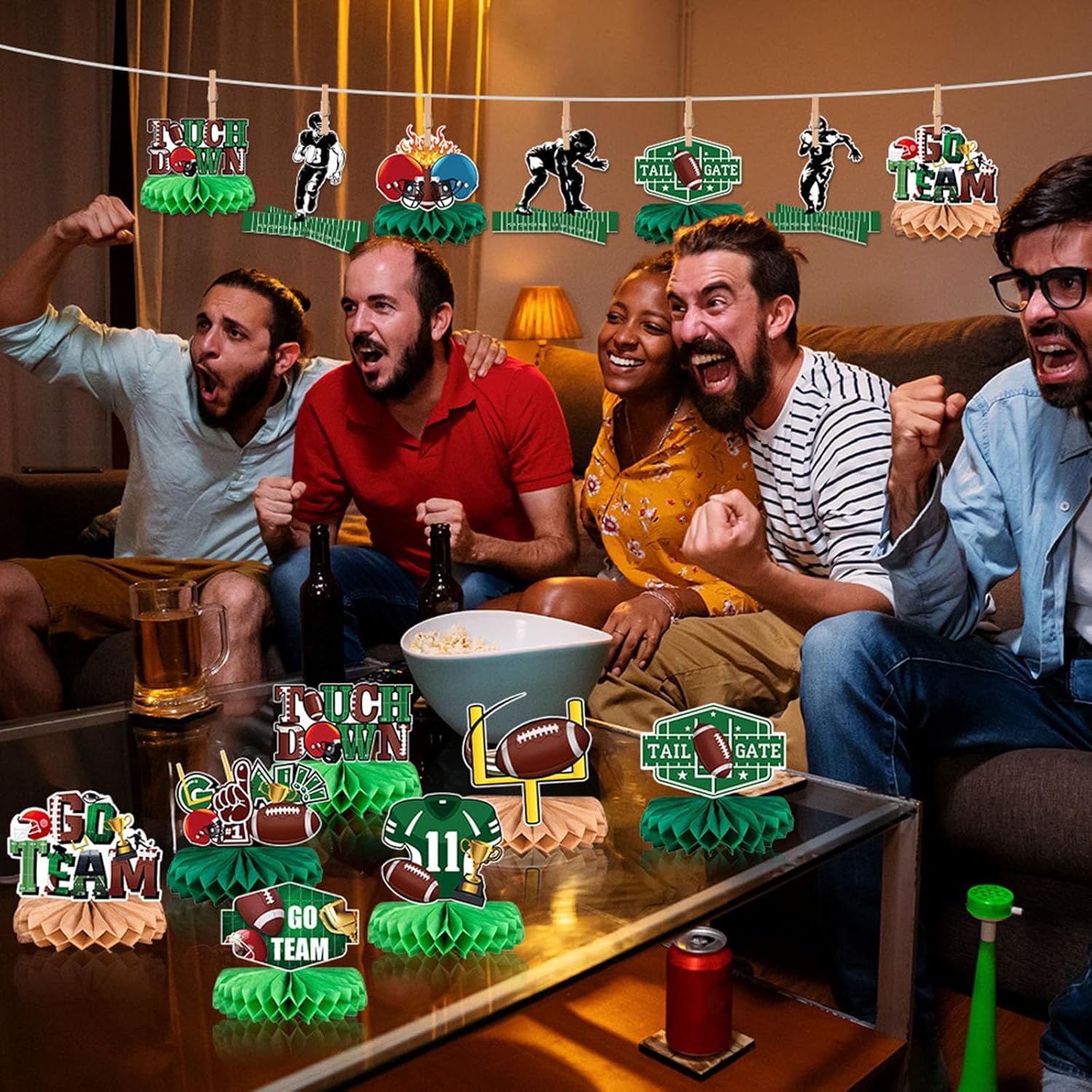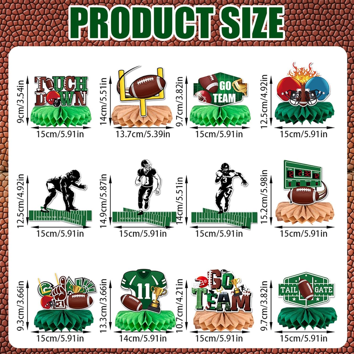 Per feste di compleanno, celebrazioni di nozze, riunioni di vacanza ed eventi sia interni che esterni, queste decorazioni servono come decorazioni funzionali o contenitori per alimenti Migliora l'ambiente della tua festa con il nostro set di 9 decorazioni di carta a tema partite di calcio, presentano un design unico ed elegante che si distingue in qualsiasi evento Adatto per organizzatori di feste, casalinghe e organizzatori di eventi che desiderano aggiungere un tocco creativo ai loro raduni Realizzate in carta robusta, queste decorazioni sono disponibili in una varietà di colori vivaci, rendendole adatte a più temi e portatili per occasioni future Facili da montare e portatili, queste decorazioni sono un must per chiunque cerchi di elevare le proprie decorazioni per feste