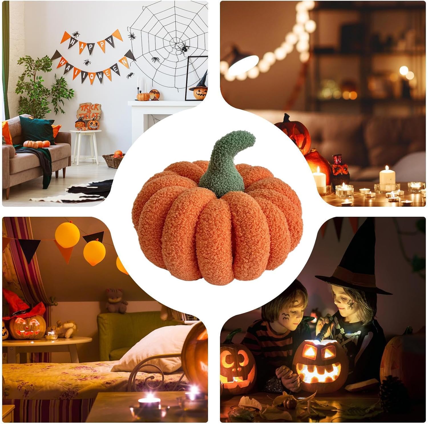 Aggiunge un'atmosfera festiva: con la sua forma di zucca, accenti di vite e vivaci toni arancioni, questo peluche porta uno spirito festivo, migliorando la tua atmosfera autunnale e di Halloween senza sforzo Materiali resistenti: progettato con tessuto felpato e imbottitura interna densa, questo peluche a zucca offre una consistenza morbida e accogliente che si sente liscia sulla pelle e mantiene bene la sua forma Ampia applicazione: si fonde perfettamente con varie configurazioni, ideale per camera da letto o soggiorno come cuscino o schienale, migliorando gli spazi quotidiani in modo naturale ed elegante con il suo design multiuso Aspetto estetico artigianale: mostra dettagli di zucca riccamente ricamati abbinati a un autentico design a stelo e foglie, ottenuto attraverso metodi di costruzione 3D avanzati, mentre le superfici opache forniscono un effetto visivo delicato e invitante per qualsiasi ambiente Decorazione compatta: questo peluche decorativo a forma di zucca si adatta idealmente su scaffali, davanzali o divani, offrendo fascino senza occupare spazio eccessivo nel tuo ambiente domestico