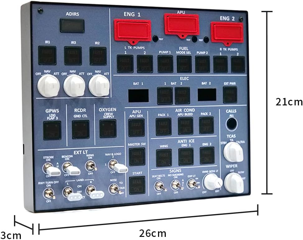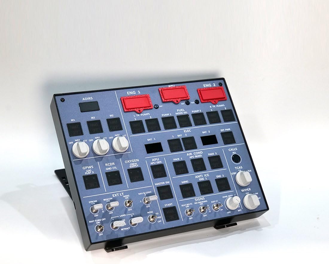 Prestazioni stabili, artigianato professionale: costruito con tecniche di produzione di schede PCB di prim'ordine, questo prodotto garantisce prestazioni affidabili e costanti. È dotato di un pannello retroilluminato personalizzato, fori di montaggio VESA 100 × 100 mm sul retro e viene fornito con un cavo USB per un'installazione semplice. I pulsanti da viaggio realistici offrono una sensazione tattile realistica, arricchendo la tua avventura di simulazione di volo. Ampia compatibilità Mobiflight con supporto completo: Sfruttando la tecnologia Mobiflight, questo dispositivo raggiunge un'ampia compatibilità e un'usabilità senza interruzioni, integrate da un'attenta assistenza tutorial. Ospita modelli di aeromobili popolari come le serie A35xx e A32xx e può essere adattato ad altri modelli come A35X e A38X, con i prossimi miglioramenti Mobiflight pronti ad ampliare ulteriormente la sua compatibilità. Pulsanti realistici, design salvaspazio: i pulsanti rispecchiano le dimensioni e la sensazione di quelli che si trovano sui pannelli degli aerei reali. Alimentata da un unico cavo USB, questa unità compatta integra più controlli, semplificando le partenze a freddo e buio e conservando preziosi spazi sul desktop. Retroilluminazione regolabile per un maggiore comfort visivo: la luminosità della retroilluminazione regolabile garantisce una visibilità ottimale in diverse condizioni di illuminazione, migliorando l'usabilità e riducendo al minimo l'affaticamento degli occhi durante sessioni di simulazione prolungate. Telaio in lega di alluminio di alta qualità: racchiuso in un elegante e robusto telaio in lega di alluminio, questo prodotto irradia un aspetto premium e garantisce una resistenza strutturale duratura.