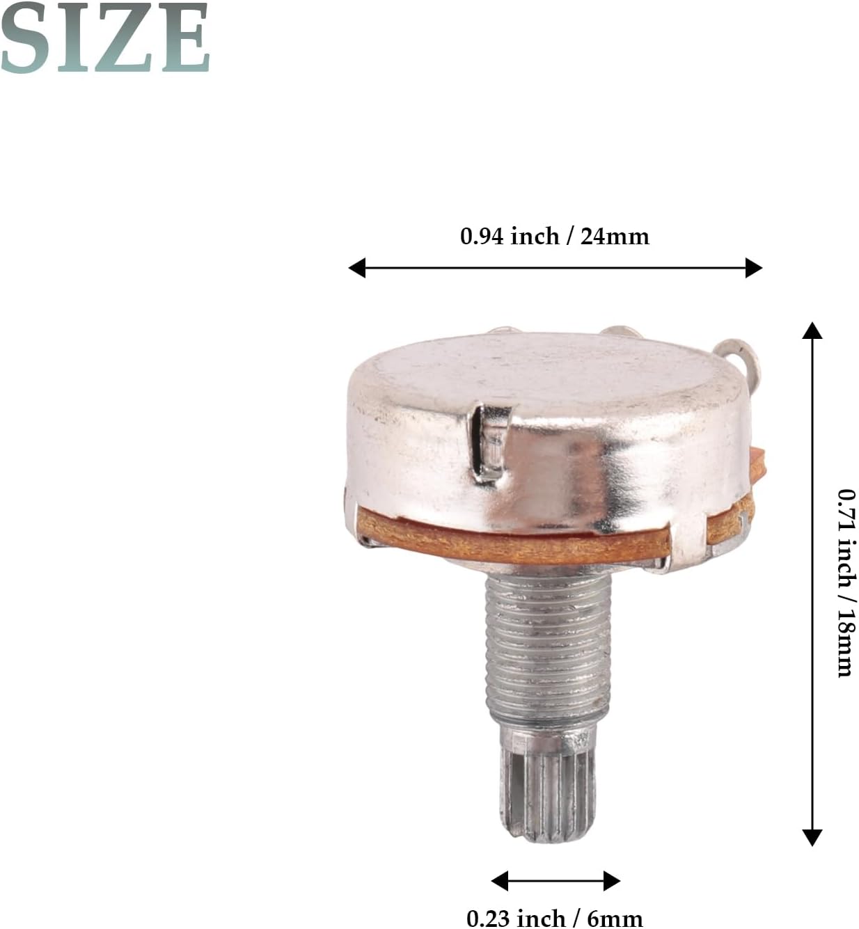 L'albero diviso con godronatura grossolana si adatta alla maggior parte delle manopole. Questo potenziometro ha un potenziometro di controllo A500K Ohm, grande potenziometro per una chitarra! Questo è un potenziometro del cono audio, perfetto per sostituire o modernizzare il controllo del volume e del suono. Potenziometro del volume della chitarra