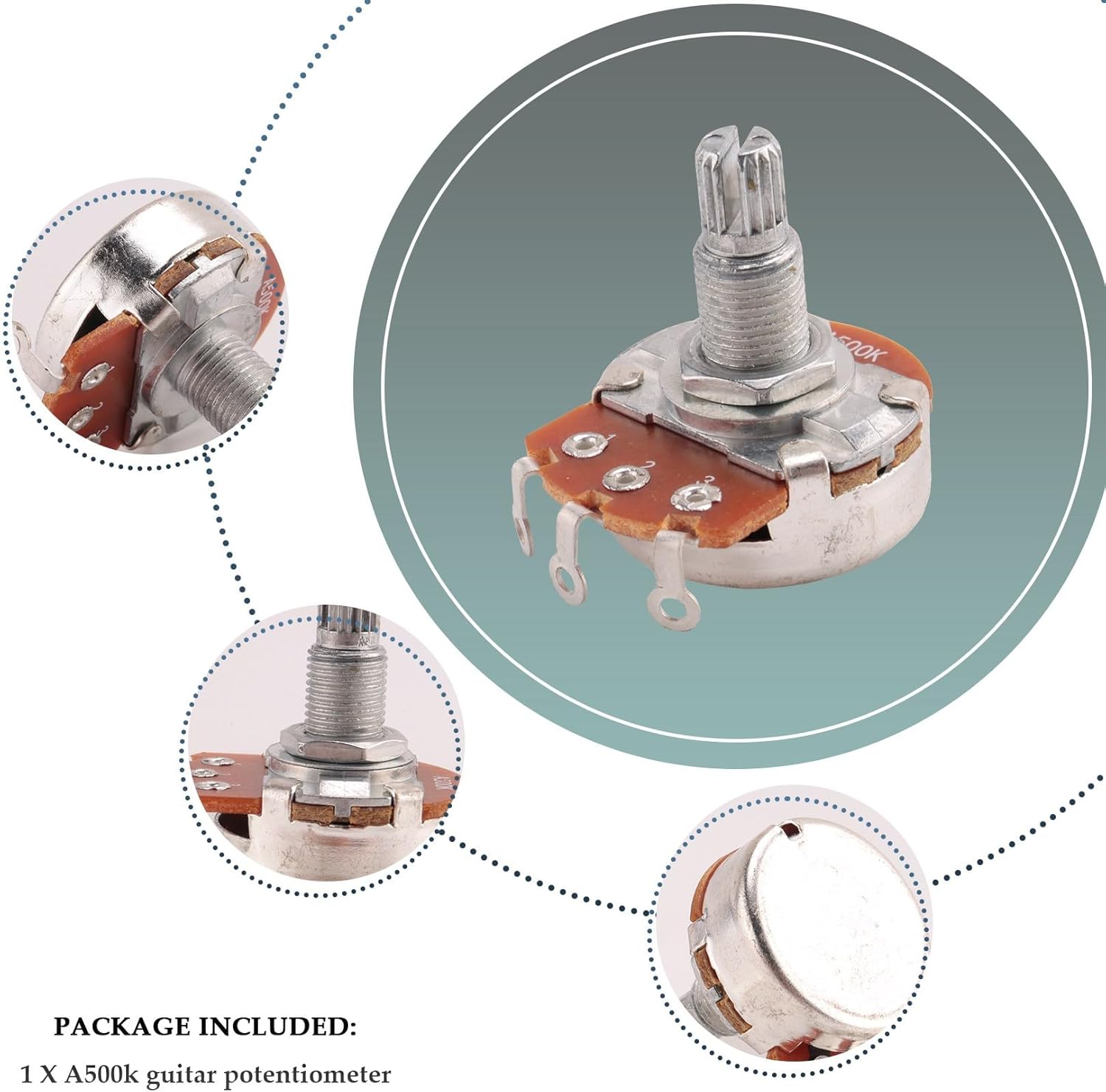 L'albero diviso con godronatura grossolana si adatta alla maggior parte delle manopole. Questo potenziometro ha un potenziometro di controllo A500K Ohm, grande potenziometro per una chitarra! Questo è un potenziometro del cono audio, perfetto per sostituire o modernizzare il controllo del volume e del suono. Potenziometro del volume della chitarra