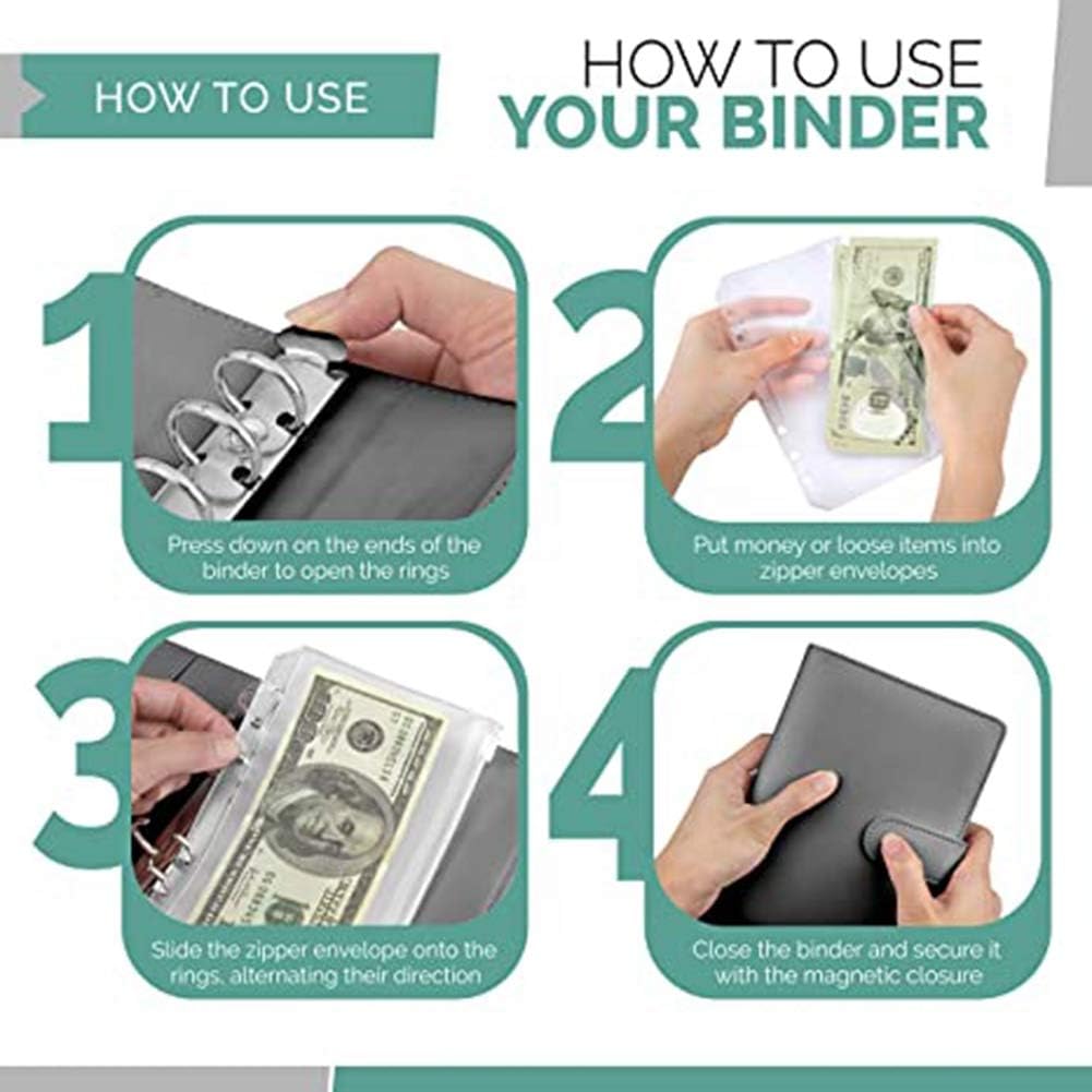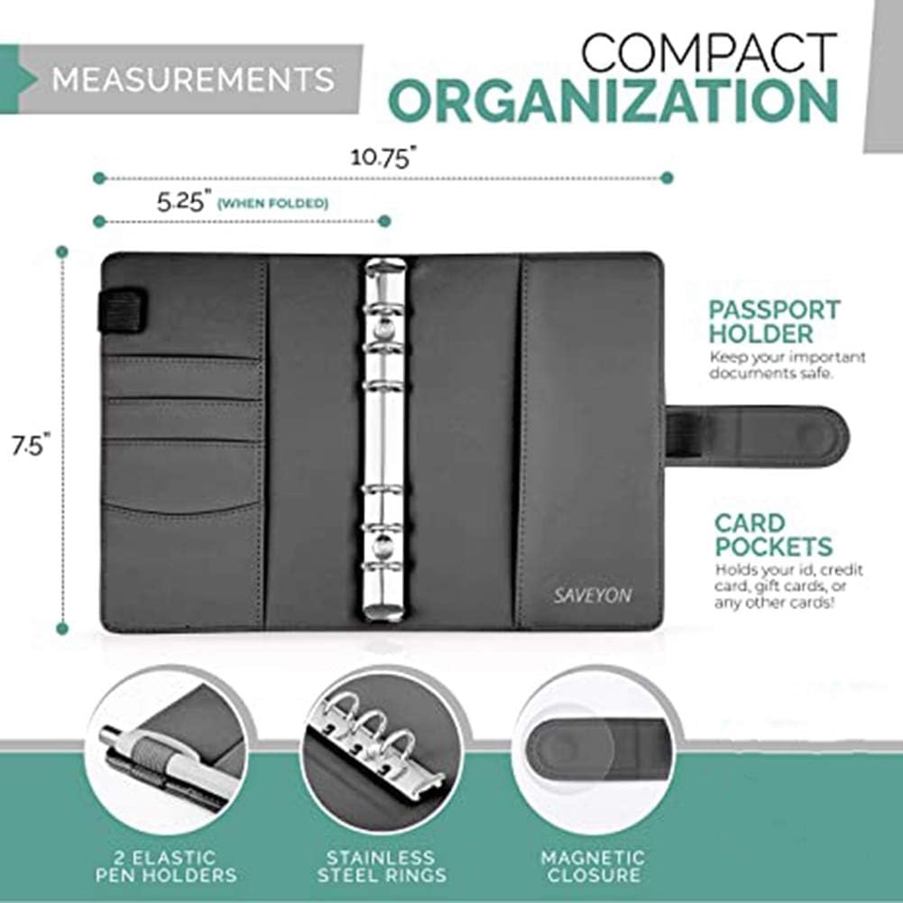 Moderni – ameranno i 4 scomparti per carte di credito, 2 e 2 portapenne e la busta trasparente liscia e sicura, impermeabile, con chiusura e chiusura magnetica. Garantiamo anche che il nostro legante a 6 anelli di alta qualità abbia la giusta tensione della molla. Legante in pelle PU di alta qualità con cuscinetti ordinati. Sebbene il di buste budget spesso utilizzato come una borsa compatta per contanti o risparmi, questo raccoglitore con buste con cerniera è perfetto per tutte le età e tipi di organizzazioni! Multiuso: il nostro opuscolo compilabile viene fornito con una busta trasparente, per il budget di contanti. vedere i soldi. Molti clienti soddisfatti lo utilizzano come portafoglio economico, raccoglitore per quaderni, organizer per ricevute, organizer per buoni portafoglio, organizer per o blocco note per la pianificazione personale!
