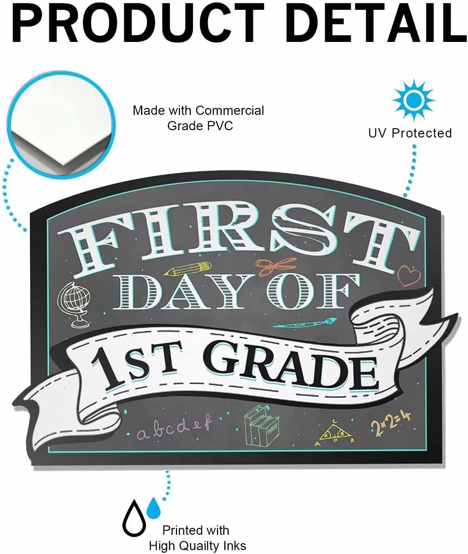 Dimensioni appropriate: 10 "x 15" Il cartello del consiglio scolastico è per tutti i servizi fotografici, resistente e leggero. Versatile per foto di famiglia, scuola, amicizia, festa. MATERIALE PREMIUM: Realizzato in materiale durevole e resistente, così puoi essere certo che il tuo cartello durerà come promemoria con questa plastica ondulata. Resistente alle intemperie il primo/ultimo giorno di scuola e non si danneggerà in caso di caduta. Insegna unica sulla lavagna scolastica: stampe luminose e a colori aggiungono gioia e si abbinano all'entusiasmo di tuo figlio per il primo giorno di scuola materna, scuola materna o prima elementare. Colori vivaci e design carino migliorano l'affetto dei bambini. 【Ampia applicazione】 Ricorda i momenti speciali e preserva i momenti che non puoi recuperare. Diversi temi sono progettati per una gamma più ampia di applicazioni, tra cui scuola materna, scuola materna, 1a elementare, con pennarelli per lavagna per personalizzare i messaggi.