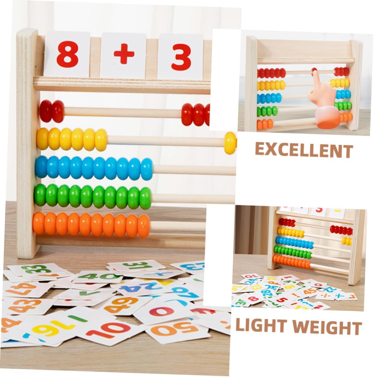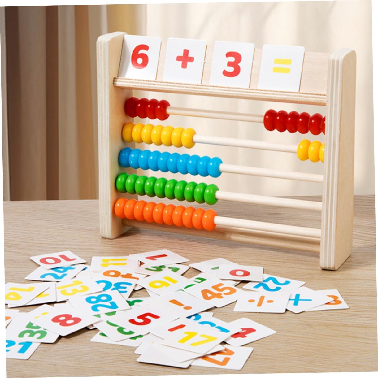 Giocattoli per bambini - il cognitivo per imparare la matematica e i colori è molto adatto per migliorare le tue abilità matematiche, abaco per imparare a contare, giocattoli - sono incoraggiati a partecipare attivamente ed esplorare i concetti della matematica attraverso questo strumento, giocattoli in età prescolare, giocattoli per attività di sviluppo precoce - con questo strumento puoi migliorare la velocità e la precisione dei calcoli, essenziali per il successo in matematica. Abaco per bambini in età prescolare Per imparare i numeri per i bambini piccoli: questo set di giochi per esercizi di matematica offre un metodo pratico per imparare addizioni e sottrazioni nonché per calcolare con l'abaco. Abaco aritmetico in legno - allena la capacità di presa del bambino, la coordinazione delle mani e del cervello, le capacità motorie, giocattolo per bambini con carta