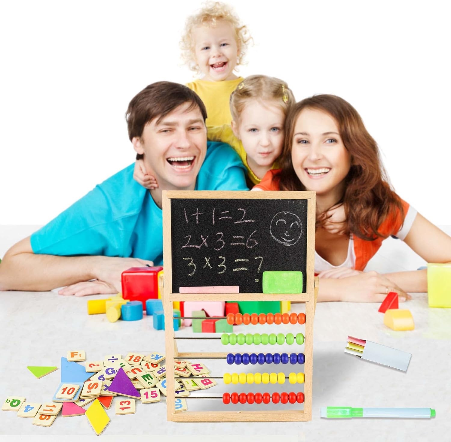 【Materiale in legno di alta qualità】 Pannello per abaco in legno VingaHouse con tavolo da disegno in legno di alta qualità, resistente all'usura, alle cadute, robusto e durevole. La struttura in legno è liscia e le perline colorate lucide forniscono una protezione completa per i bambini, adatta ai bambini per muoversi e toccarsi.,Facile da trasportare e riporre: il set di abaco in legno ha una dimensione ragionevole ed è comodo da trasportare. Puoi portare questo abaco di legno con te quando vai in viaggio e interagisci con i tuoi figli sempre e ovunque, in modo che i tuoi figli si divertano a imparare. Stimolare la loro creatività e incoraggiare il loro pensiero matematico; Può anche essere piegato per risparmiare spazio.,Giocattoli Montessori per bambini dai 3 ai 6 anni: imparare l'abaco è un ottimo modo per coinvolgere pienamente la mente dei bambini nell'apprendimento delle abilità matematiche. Il giocattolo in legno dell'abaco può aiutare i bambini a imparare i numeri più facilmente e a divertirsi risolvendo problemi di matematica. Con il gioco didattico i bambini imparano i colori, le forme e la corretta disposizione dei numeri nel sistema decimale. Adatto a bambini dai 36 mesi in su 【Cosa ottieni】: Un abaco con cornice in legno con una tavola a doppia faccia contiene 5 x 10 palline colorate per risolvere problemi aritmetici; Lavagna magnetica con numeri 0-20, 7 simboli, 26 lettere maiuscole e minuscole, 1 set di tangram; 1 pennarello, una scatola di gessetti e una gomma per gesso; I bambini possono imparare addizioni, sottrazioni, moltiplicazioni e divisioni, ma anche confronti di dimensioni numeriche nell'intervallo da 0 a 100 possono essere appresi o consolidati in modo semplice e chiaro.,Grandi regali per i bambini: questo set di abaco educativo è un eccellente gioco interattivo genitore-figlio e un gioco di viaggio; Se i bambini potessero attenersi alle piccole cose che amano, l’apprendimento sarebbe più divertente ed efficiente; I genitori o i nonni possono scegliere questo righello in legno come regalo di compleanno o di festa per i bambini piccoli. Migliora il rapporto tra te e tuo figlio attraverso giochi divertenti, tuo figlio adorerà questo giocattolo
