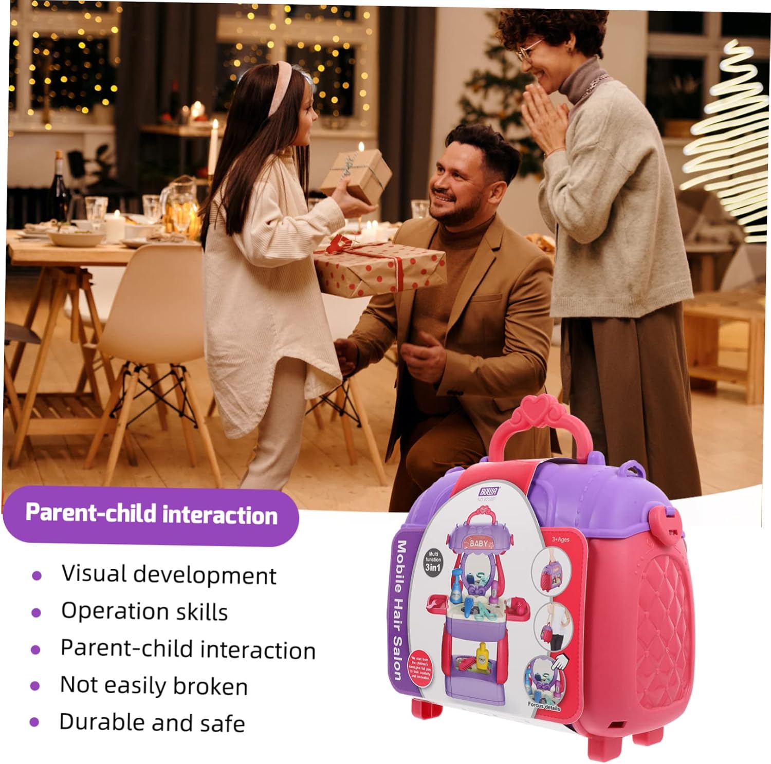 Salone di bellezza per parrucchieri: con gli strumenti e gli accessori necessari, la tua principessa potrà creare in modo interattivo le sue acconciature preferite con accessori per lo styling e strumenti di simulazione Simulazione dell'acconciatura: con design aerodinamico e custodia premurosa per insegnare ai più piccoli come mettere in ordine le proprie cose. Bellezza di ruolo: questo articolo è fatto di plastica per un uso sicuro e giochi di ruolo nel salone Educazione precoce: design a valigia portatile, tutti gli accessori per parrucchieri possono essere facilmente riposti in questa custodia cosmetica pieghevole e trasportati sempre e ovunque, finto trucco da teatro per: inoltre, può sviluppare notevolmente capacità cognitive, intelligenza e creatività, simulazione di acconciature
