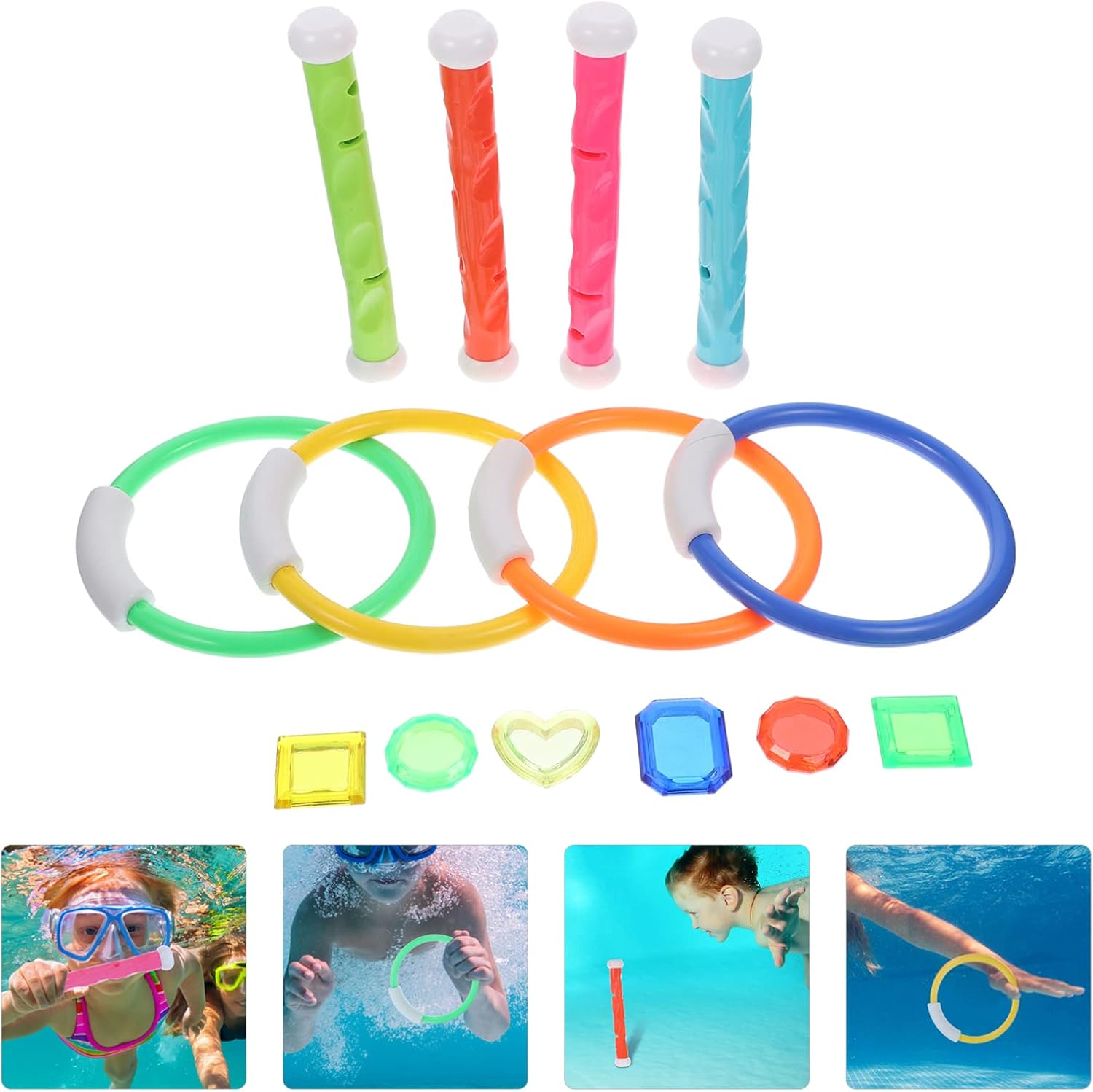 Giocattoli subacquei colorati: i bordi sono lisci e rotondi, senza sbavature e non danneggiano la pelle, giocattoli subacquei Giocattoli per nuotare in acqua: leggeri e portatili, facili da trasportare in spiaggia, piscina, ecc., attività acquatiche per Anelli da immersione: aiutano i a imparare a immergersi e a promuovere le abilità subacquee, imparando giocando, per i tuoi , giocattoli da piscina per dagli 8 ai 12 anni Giocattoli per immersioni in piscina: questo giocattolo per immersioni è un eccellente strumento di allenamento per l'allenamento al nuoto subacqueo, giocattolo acquatico per per il cortile Giocattoli da immersione per piscina per : con pregevole fattura, non facili da indossare e deformare, molto pratici nell'uso, giocattoli per esercizi di immersione