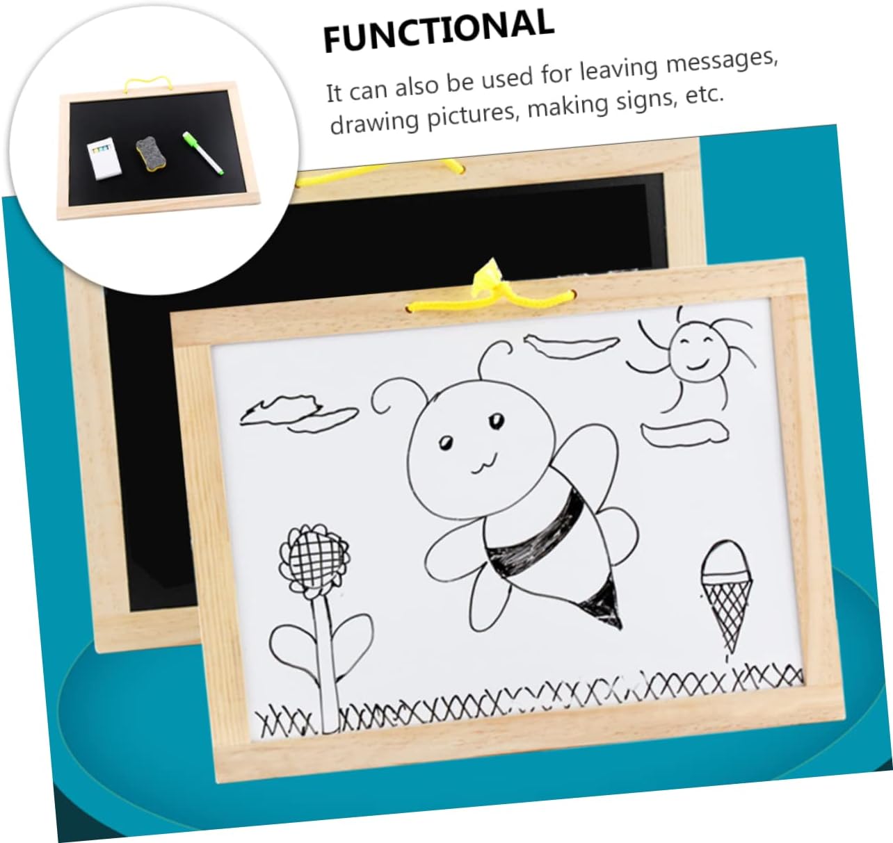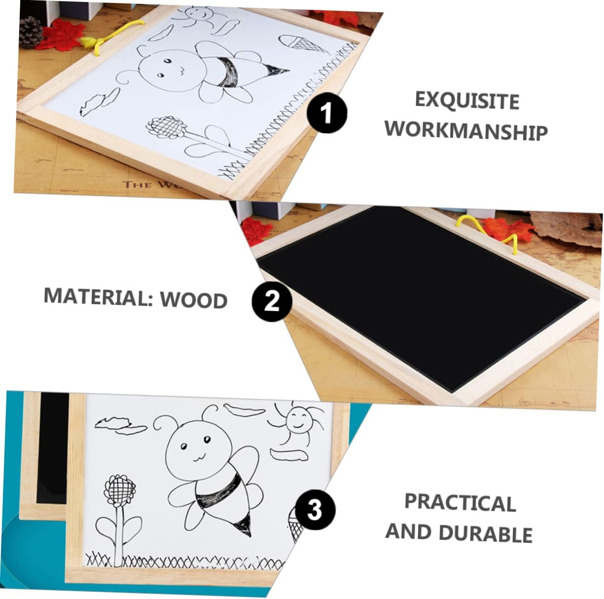 Giocattoli educativi: vari usi, possono essere utilizzati come lavagne per messaggi, lavagne per scrivere, lavagne da tavolo, lavagne per appunti, decorazioni per la scrivania, bacheche dimostrative, lavagne in legno Lavagna bifacciale: il design bifacciale consente ai di avere più spazio a disposizione, pratica e multifunzionale, lavagna magnetica Lavagna sospesa: con corda sospesa, può essere facilmente appesa al muro senza occupare spazio, lavagna per scrivere Giocattolo illuminante: può essere utilizzato come lavagna giocattolo per per fargli esercitare la scrittura e il disegno, lavagna per che scrive e disegna Lavagna magnetica: può essere utilizzata ripetutamente, è facile da pulire e può essere utilizzata a lungo, piccola lavagna per