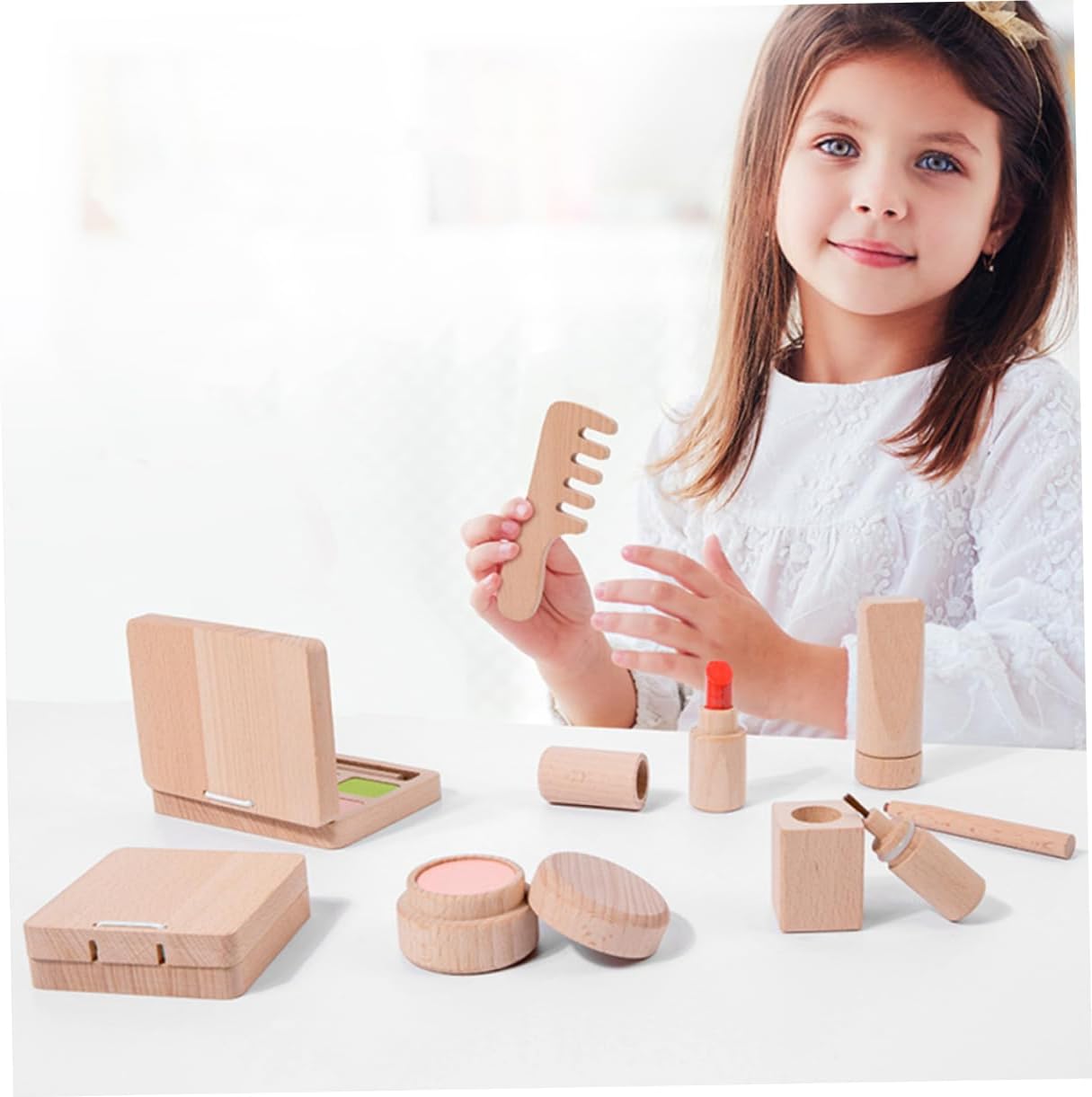 Trucco da gioco per : realizzato con materiale in legno sicuro, il materiale resistente durerà per molti anni di divertimento e gioco, giocattolo da gioco per il trucco Set da gioco per salone di bellezza per : realizzato in legno, con buona fattura, il set da gioco per il trucco del salone di bellezza è sicuro e un kit per il trucco per ragazze Giocattoli da salone di bellezza finti: questo set di giocattoli per il trucco per ha vari strumenti per il trucco che stimoleranno l'immaginazione del tuo !, set da gioco per il trucco finto per Set da gioco per il trucco: questo set di giocattoli per il trucco può promuovere la coordinazione occhio-mano e stimolare la creatività e l'immaginazione, giocattolo per bambina Gioca con i giocattoli del trucco: il nostro kit di giocattoli per il trucco del salone di bellezza può contenere perfettamente tutti i giocattoli, facile da usare, compatto e portatile, kit di trucco finto per