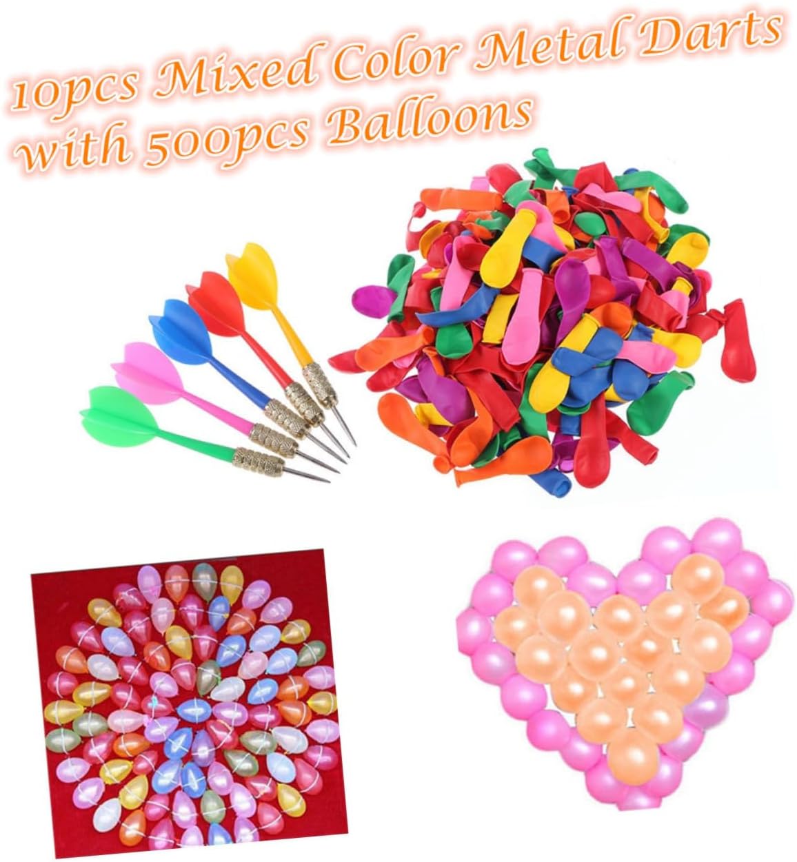 Lanciare freccette per carnevale: ottimo esercizio sia per giochi indoor che outdoor, freccette e palloncini Freccette e palloncini: i set di giochi di palloncini includono 10 freccette e 1000 palloncini, gioco di freccette Gioco di freccette: sono veri e propri giocattoli da gioco per carnevale, matrimoni, feste, negozi, ecc, freccette e palloncini Gioco di freccette: aiuta a promuovere la coordinazione occhio-mano sfidando la mira a freccette e palloncini Dimensioni adeguate per una facile memorizzazione