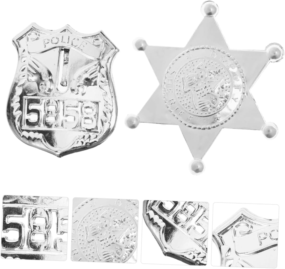 dei pacchetti 5 distintivi della polizia 5 distintivi dell'esagramma Caratteristiche -Colore: spilla da poliziotto cosplay argento - Dimensioni: 7,80X7,80X0,80cm/3,07X3,07X0,31in distintivo cosplay -Materiale: accessori cosplay in ABS - Dimensioni: 6,00X5,00X0,20 cm/2,36X1,97X0,08 pollici piccolo distintivo per feste -Fornisce un divertente accessorio per cosplay da poliziotto per aumentare le possibilità del distintivo da poliziotto nei giochi di ruolo. -Stimola la creatività e l'immaginazione consentendo ai di creare storie e personaggi unici con la vivace spilla a forma di distintivo della polizia. -Ideale per i che amano cimentarsi in giochi di ed esplorare diversi ruoli e oggetti di scena per feste cosplay. -Promuove lo sviluppo delle abilità sociali e, attraverso il gioco collaborativo e la negoziazione dei ruoli, l'ornamento del distintivo della polizia. -Realizzato con materiali di qualità per garantire sicurezza e durata durante il gioco del distintivo della polizia cosplay. Informazioni sulle merci decorazione per feste Il set include distintivi della polizia e distintivi a stella esagonale, offrendo una varietà di opzioni tra cui i possono scegliere. distintivo della polizia realistico Questo set di accessori per giochi di ruolo è perfetto per i che amano giocare a fare le case e travestirsi. delicata spilla con distintivo della polizia Realizzati con materiali ABS, questi accessori sono sicuri e perfetti per lunghe ore di gioco